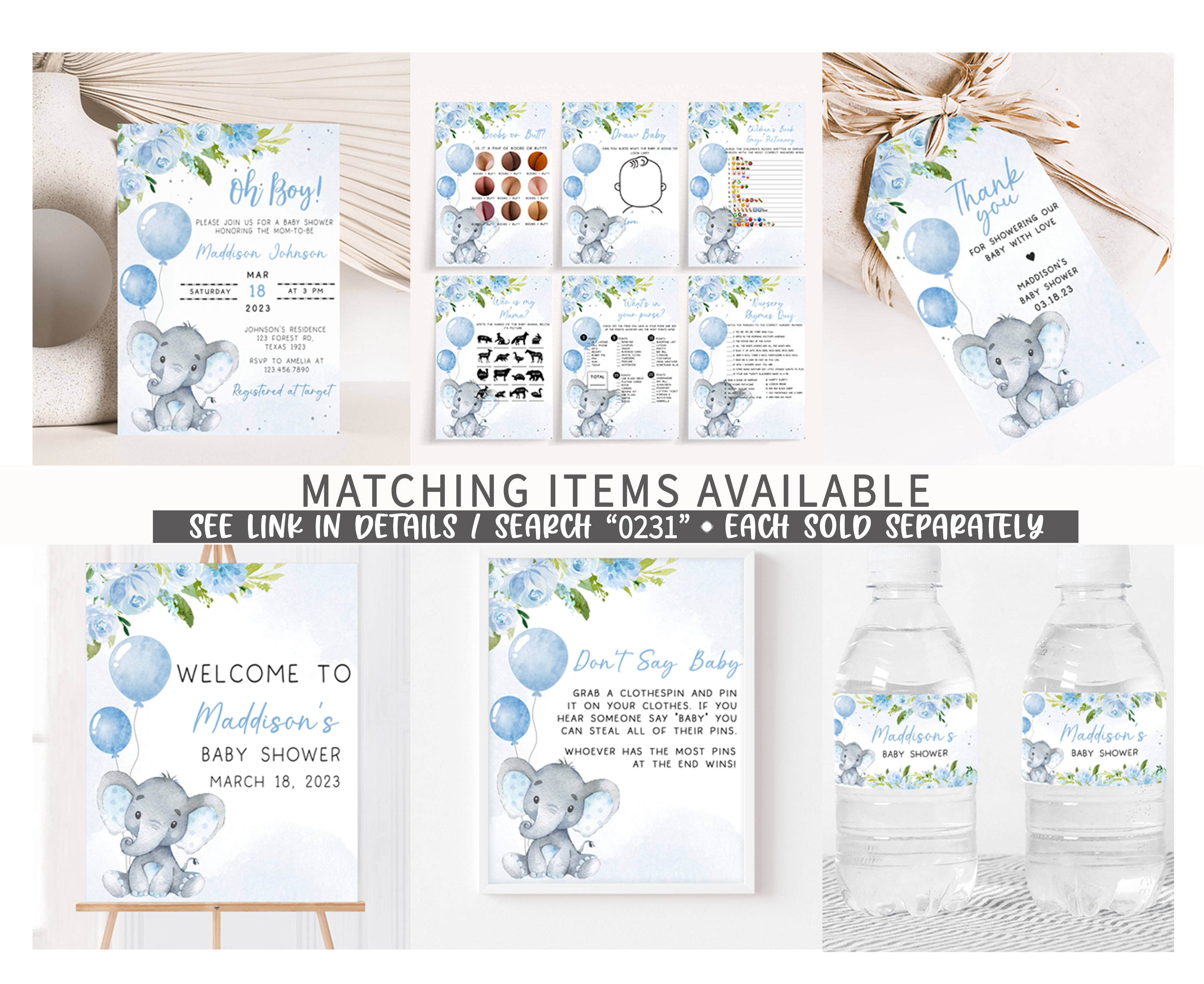 ➡ Visit this link for all the matching items for Boy Elephant Baby Shower theme:
