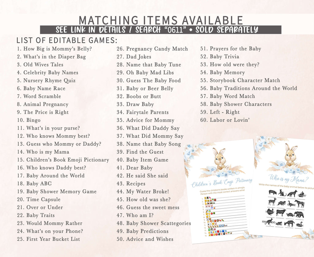 ➡ Visit this link for all the matching items for Boy Bunny Baby Shower theme: