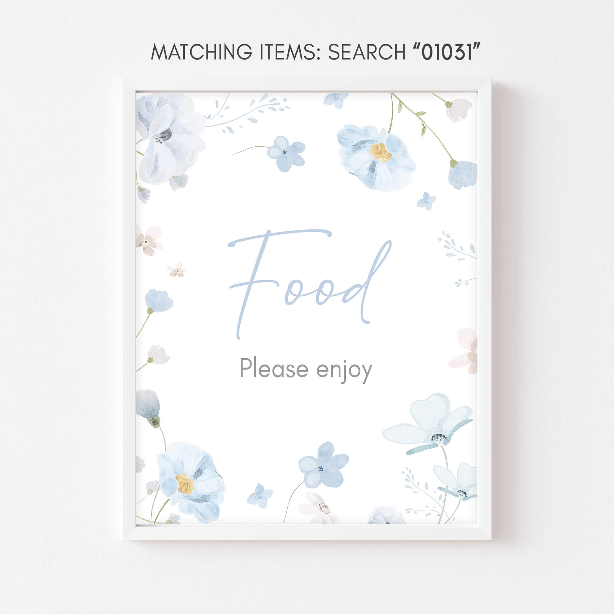 Craft an ideal atmosphere for your Spring Pastel Blossoms Baby Shower Party using our enchanting Blue Baby in Bloom Baby Shower Food Table Sign Printable. These prints not only add a touch of charm but also serve as helpful guides, directing guests to various Watercolor Flower party sections with their delightful designs.