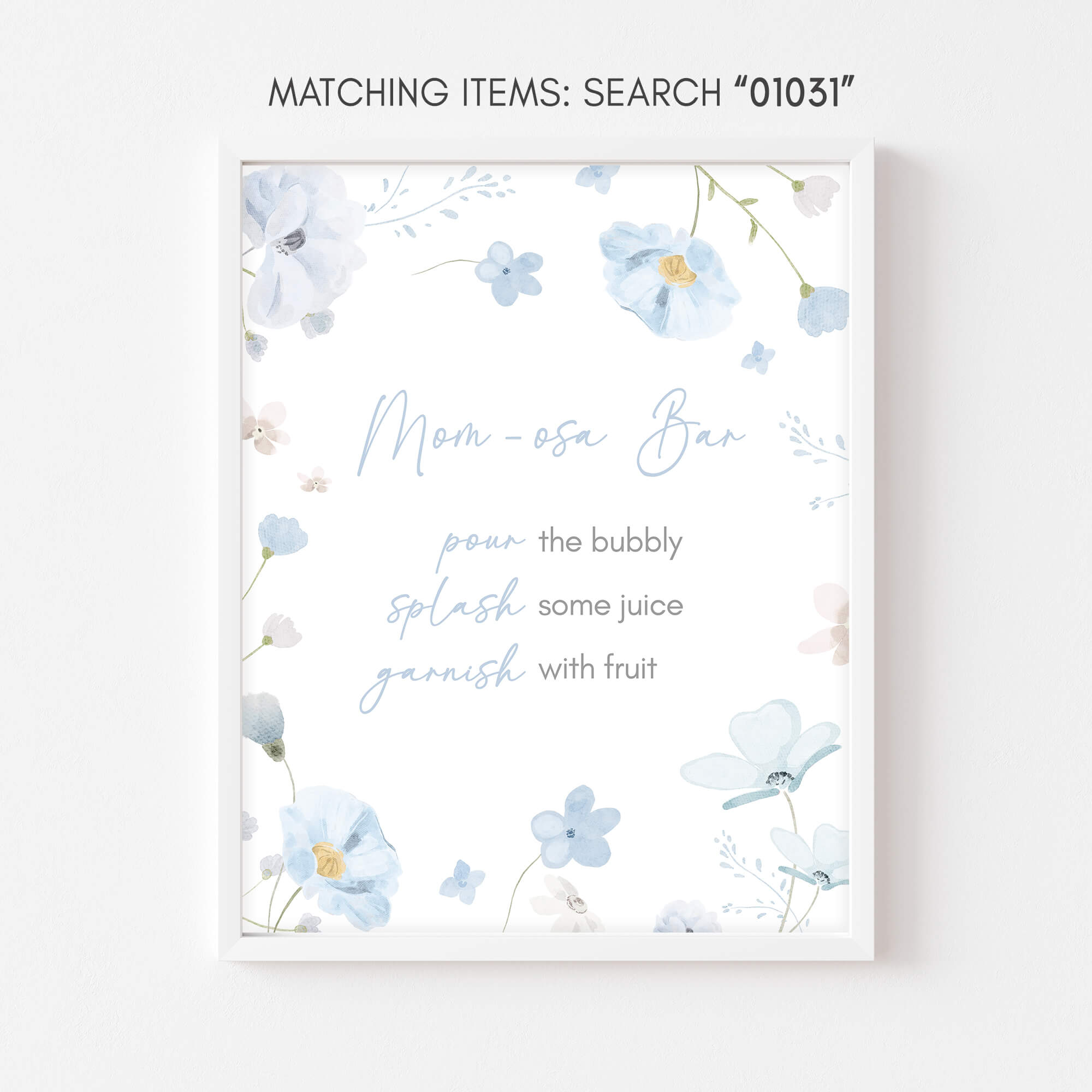 Craft an ideal atmosphere for your Spring Pastel Blossoms Baby Shower Party using our enchanting Blue Baby in Bloom Baby Shower Mimosa Sign Printable. These prints not only add a touch of charm but also serve as helpful guides, directing guests to various Watercolor Flower party sections with their delightful designs.