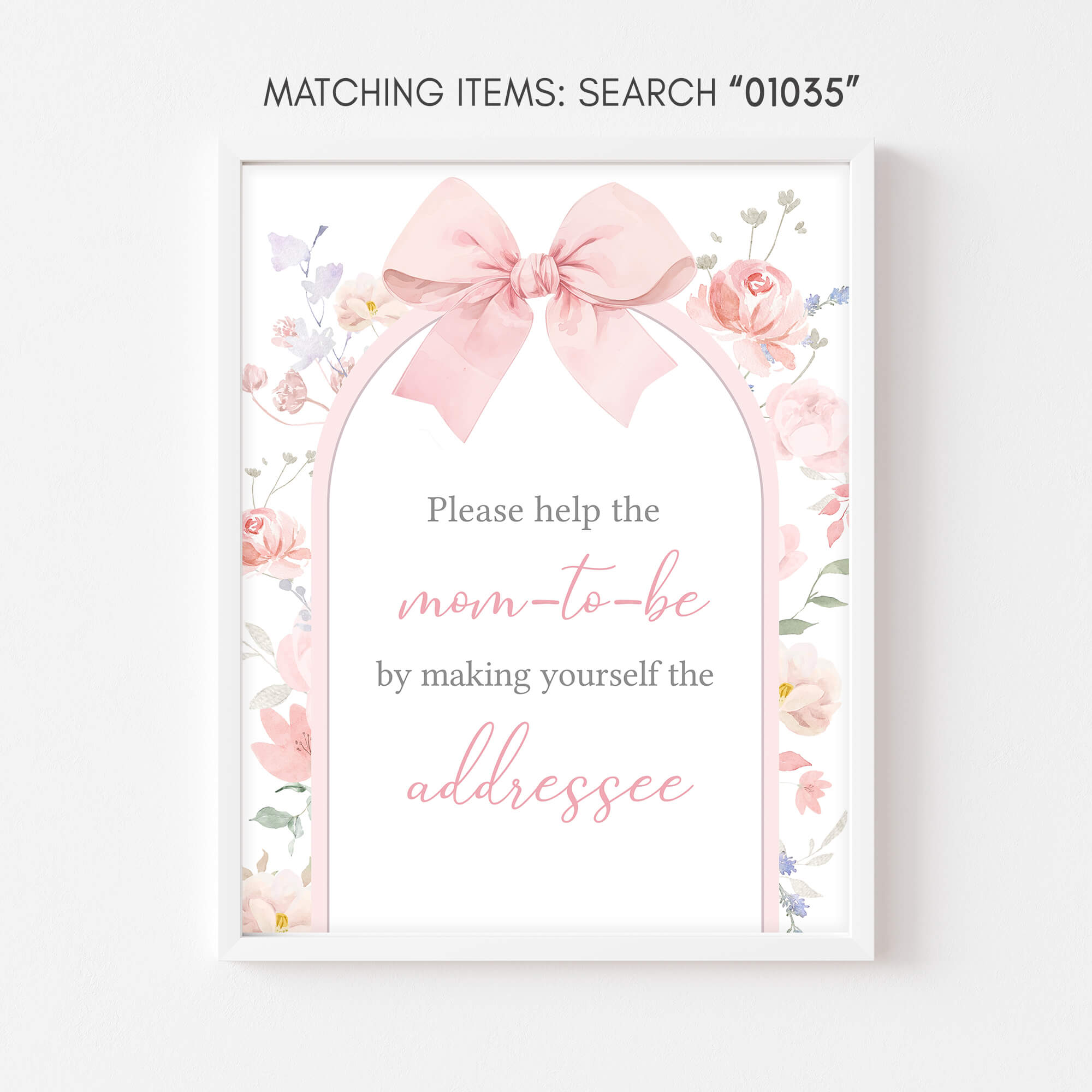 Craft an ideal atmosphere for your Spring Bow Baby Shower Party using our enchanting Pastel Flower Arch Baby Shower Addressee Sign Printable. These prints not only add a touch of charm but also serve as helpful guides, directing guests to various Pink Floral Ribbon party sections with their delightful designs.