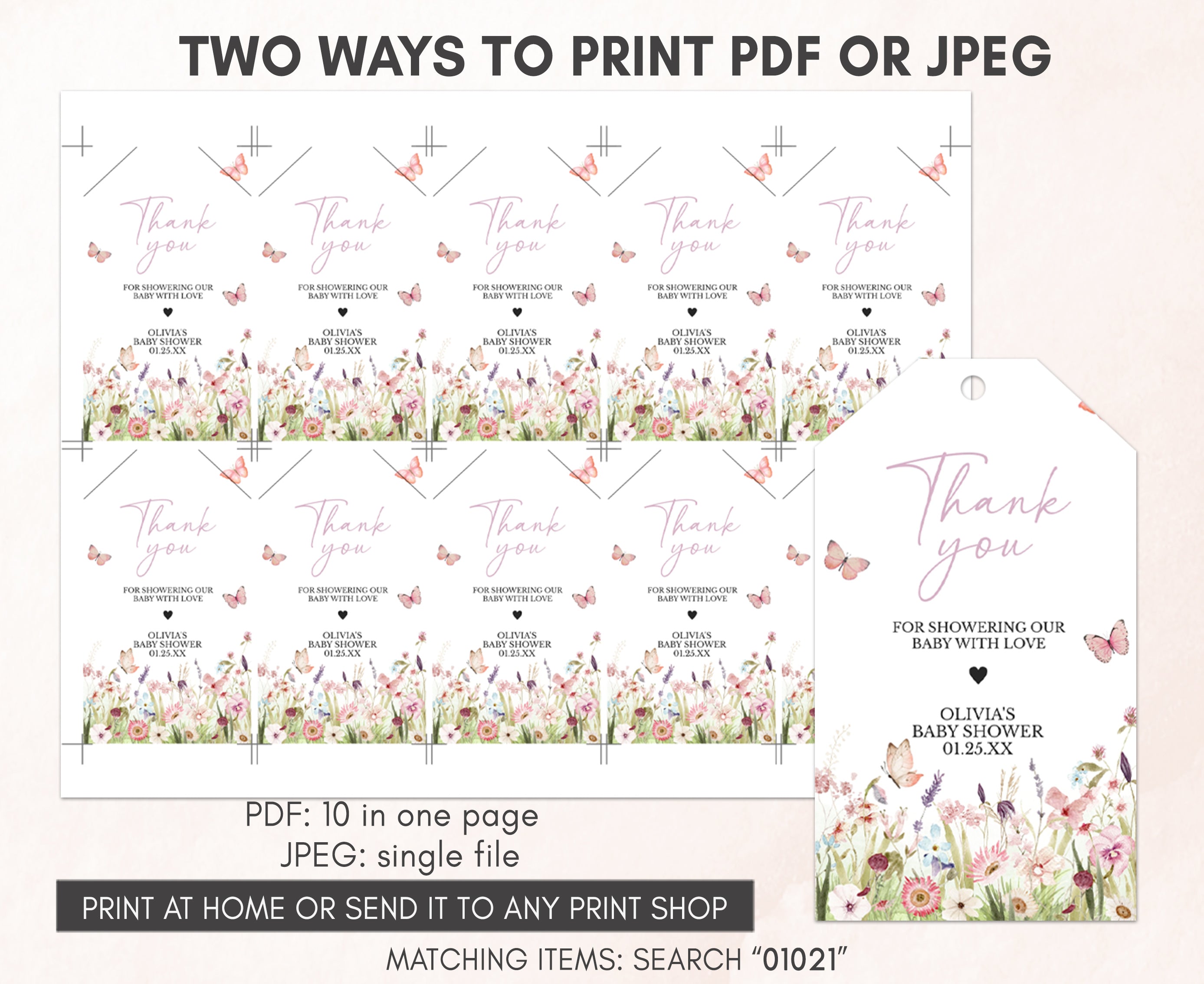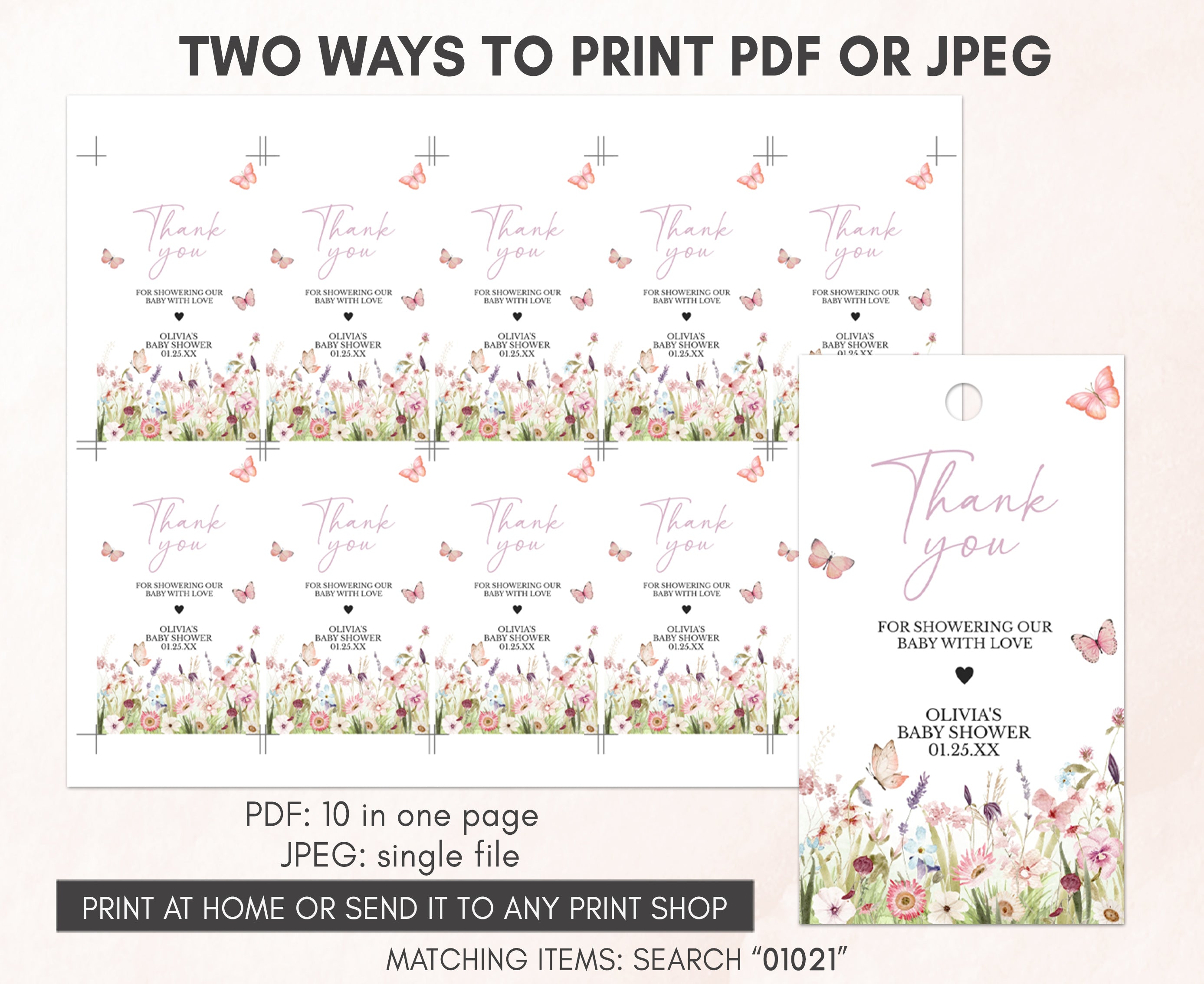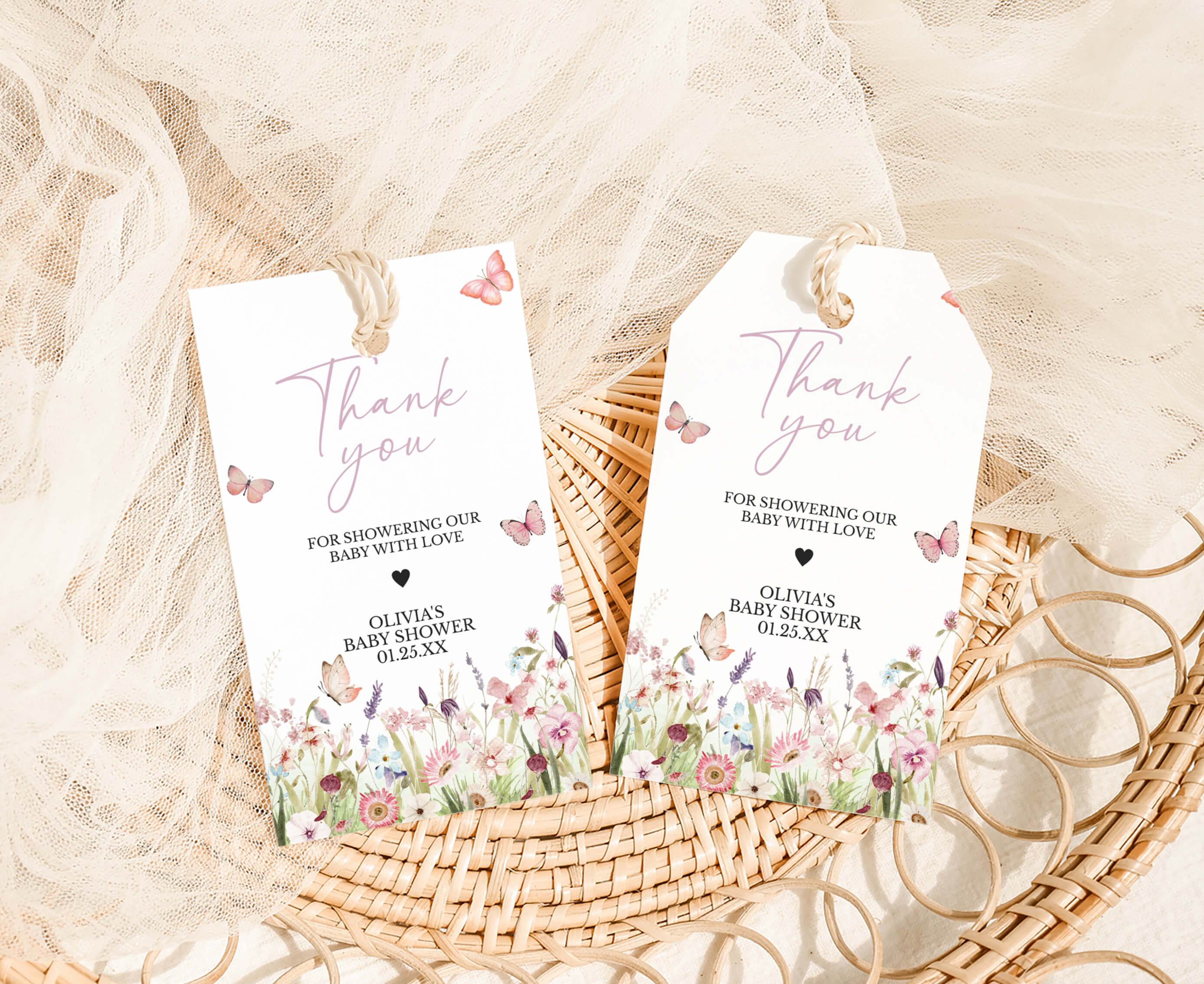 Amplify the charm of your Spring Bloom Baby Shower party favors by adding a personal touch with our delightful Floral Butterfly Baby Shower Gift Tags. These Spring Baby Girl Thank you Tags are the perfect way to express your gratitude to your guests in a special and heartfelt manner.