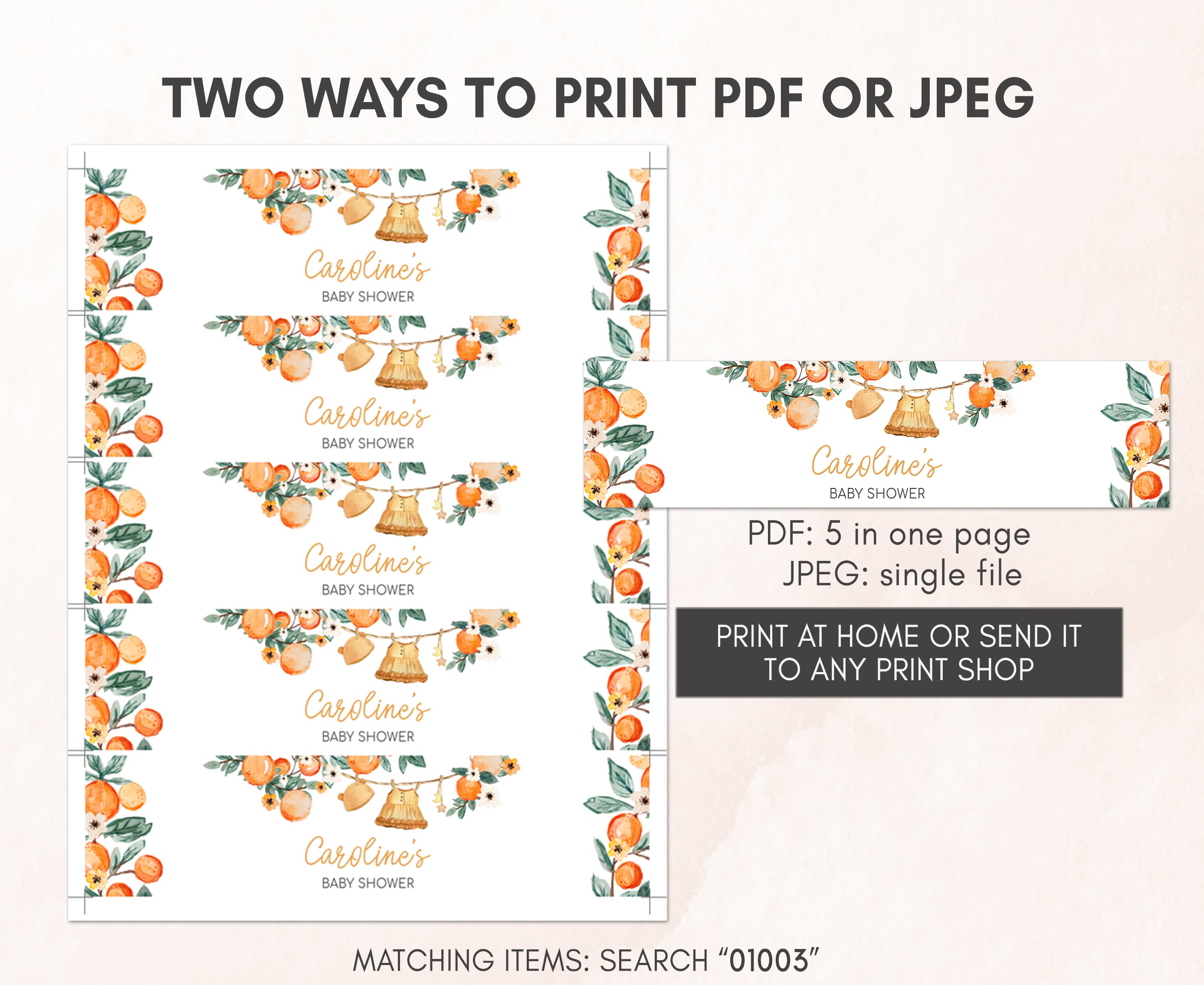 Sprinkle a touch of sweetness onto your Spring Summer Baby Shower Party by using our adorable Orange Little Cutie Water Bottle Labels. These delightful Cute Baby Clothesline will not only make staying hydrated a pleasure but also keep your guests feeling refreshed as they join in the celebration of this joyous occasion.