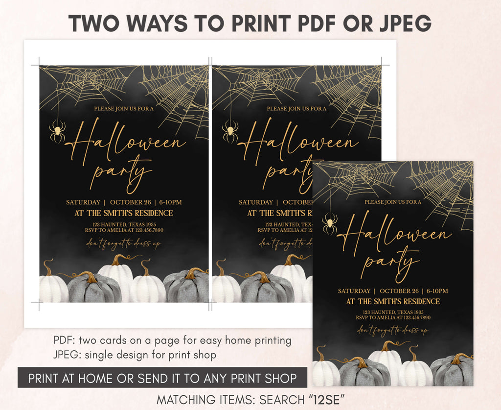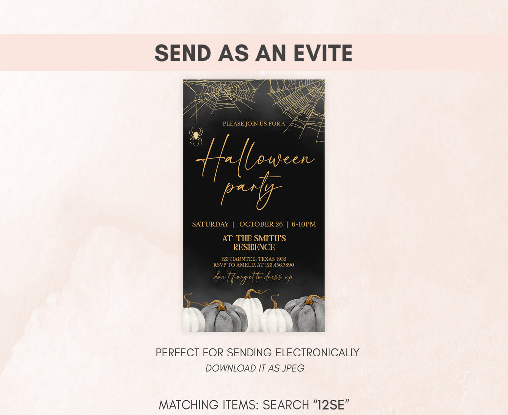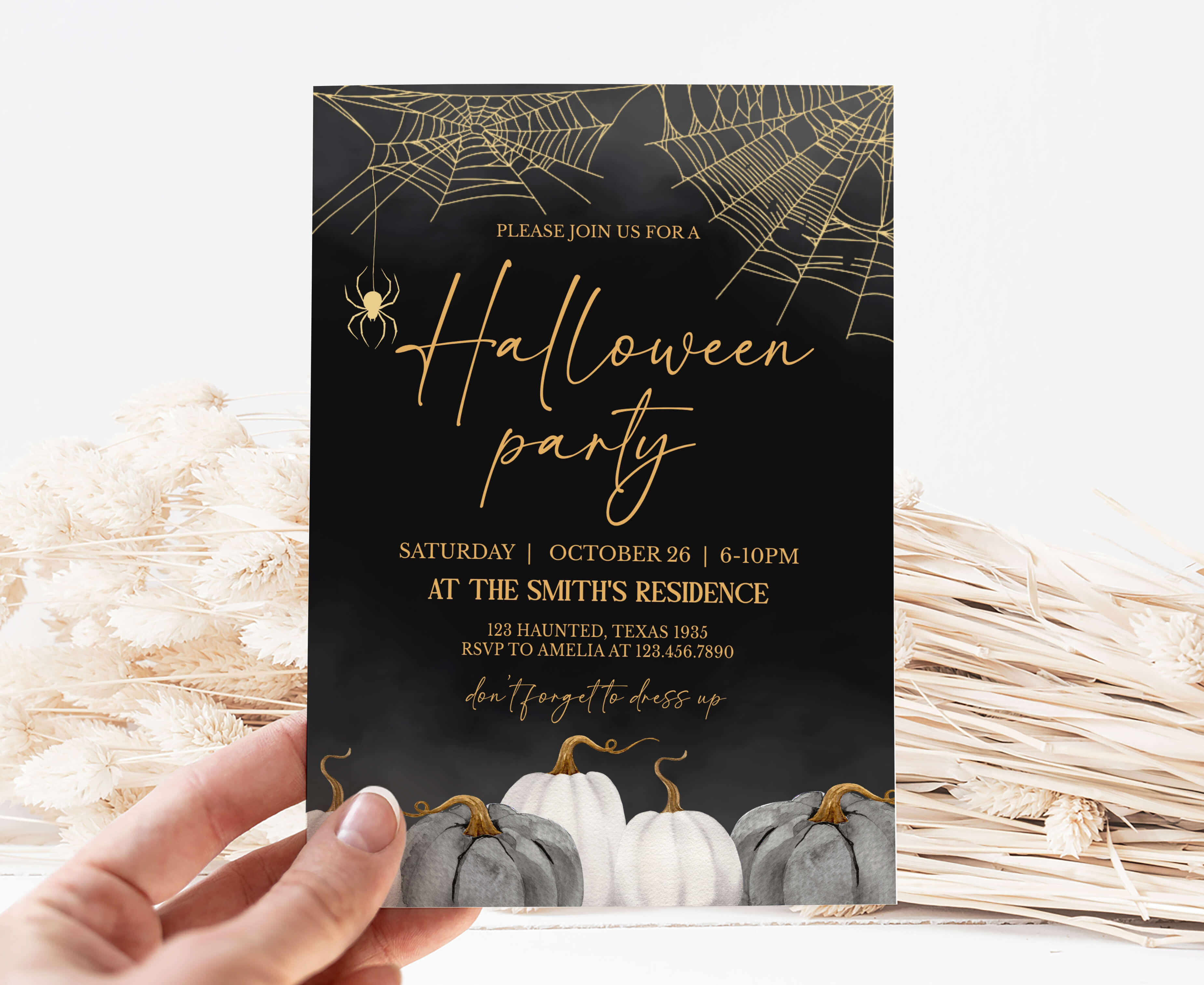 Celebrate with your guests at your Elegant Halloween Party using our delightful Black Pumpkin Party Invitation. This Halloween Costume Party Invite is the ideal choice to tone for a spooky-themed celebration.