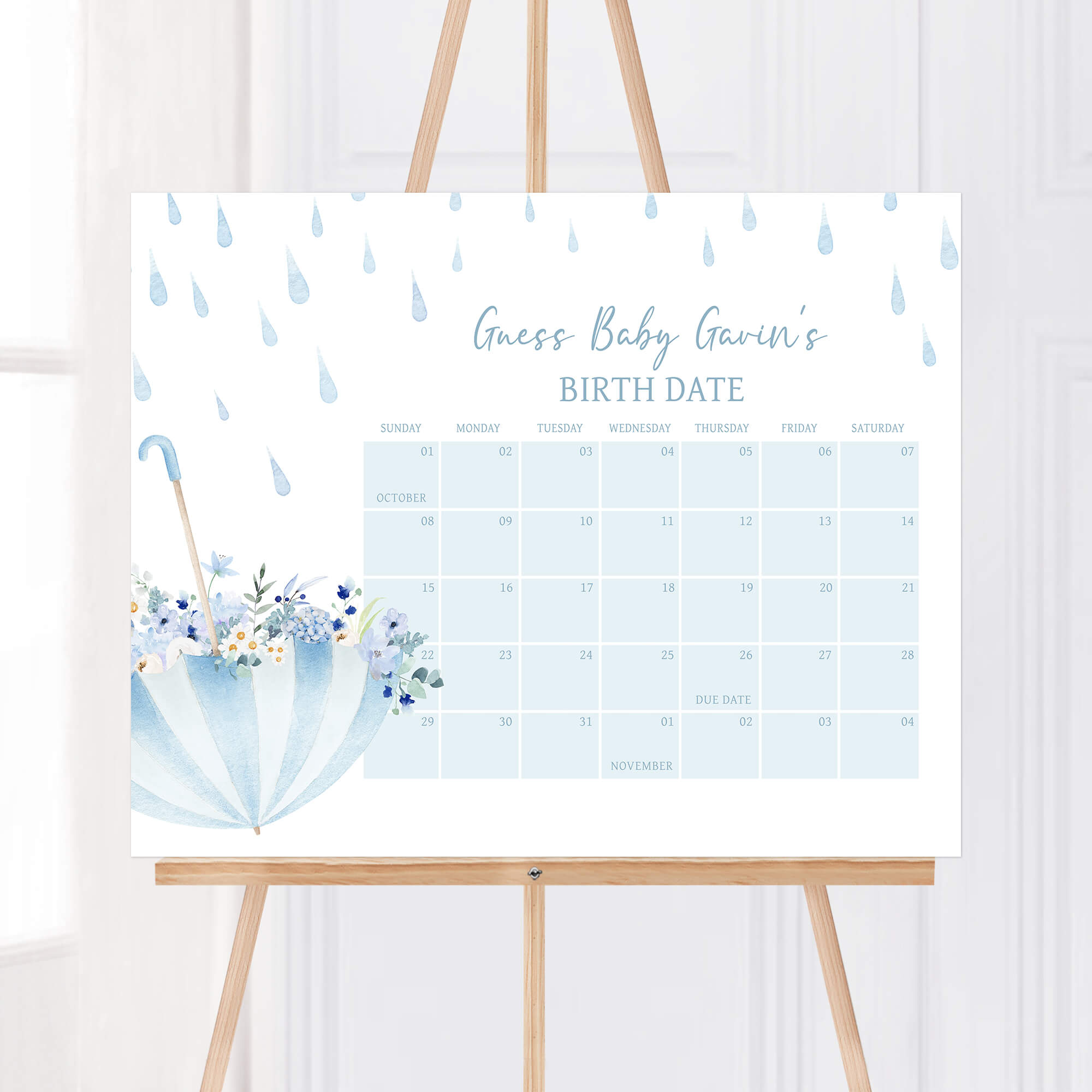 Partake in the excitement of your Blue Spring Baby Shower Party with our Rain Showers Due Date Game! Embrace the adorable spirit of the Floral Umbrella Baby Shower party as guests make their predictions for the due date, coming together to share in the anticipation of the upcoming arrival. Complete the joy and fun with this Spring Baby Shower Birthday Predictions.