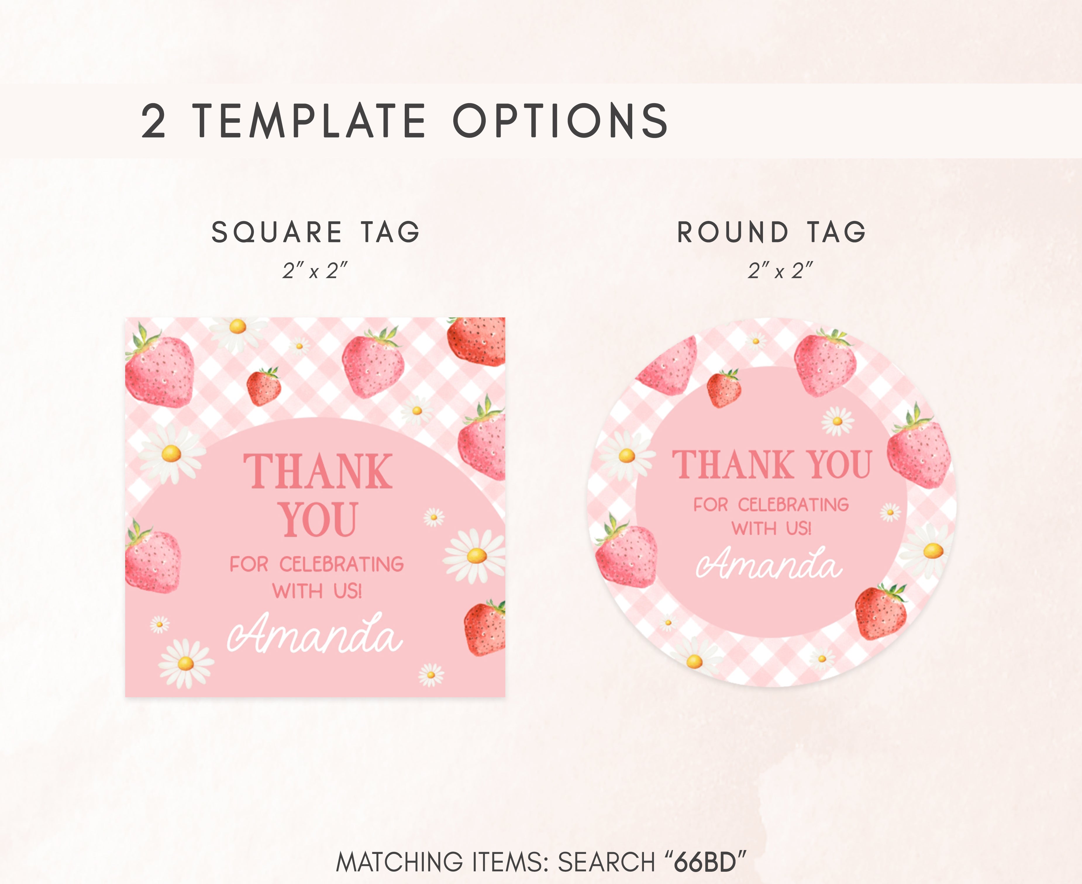 Amplify the charm of your Spring Summer Birthday Party favors by adding a personal touch with our delightful Strawberry Gingham Birthday Gift Tags. These Pink Berry Bash Thank you Tags are the perfect way to express your gratitude to your guests in a special and heartfelt manner.