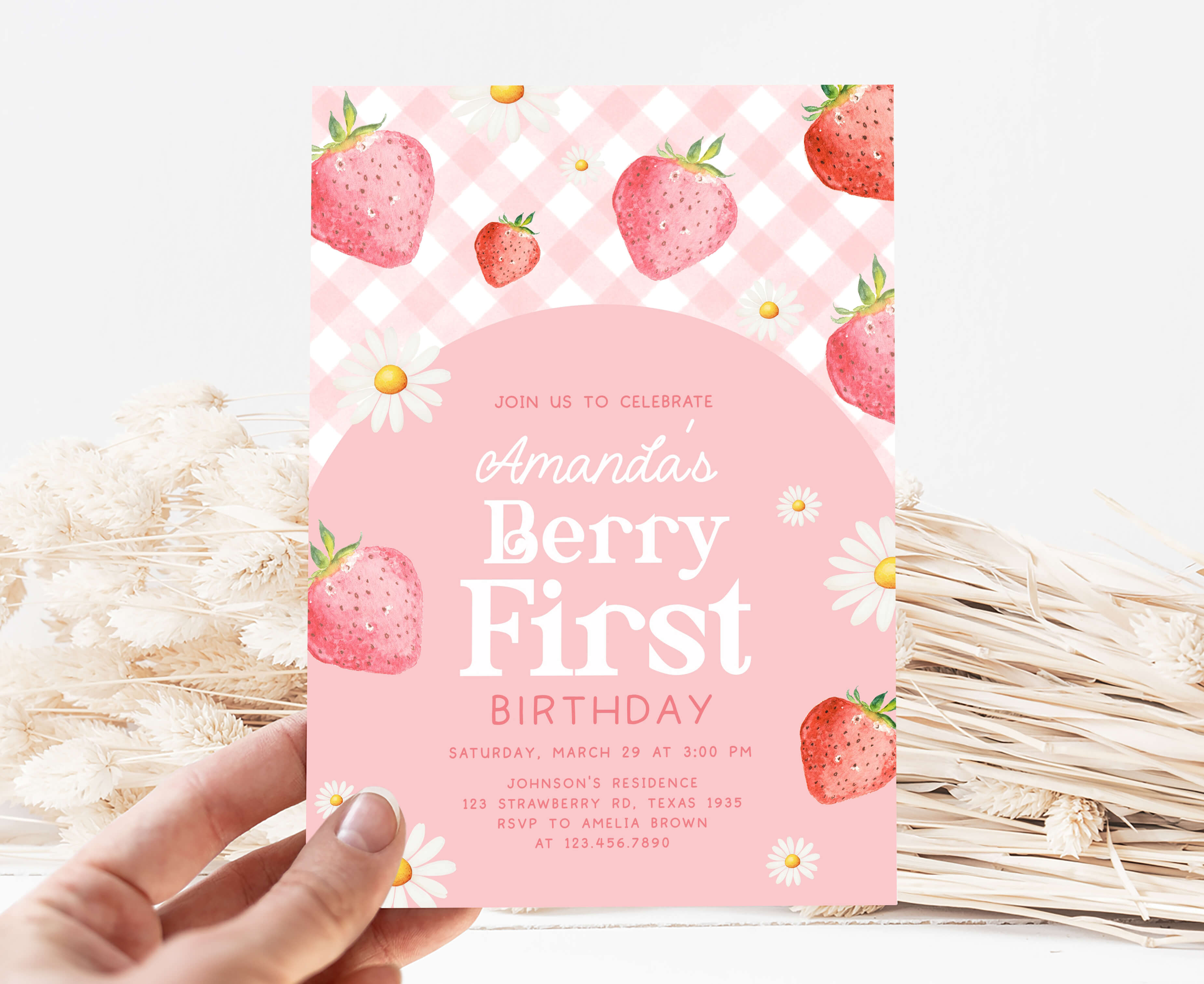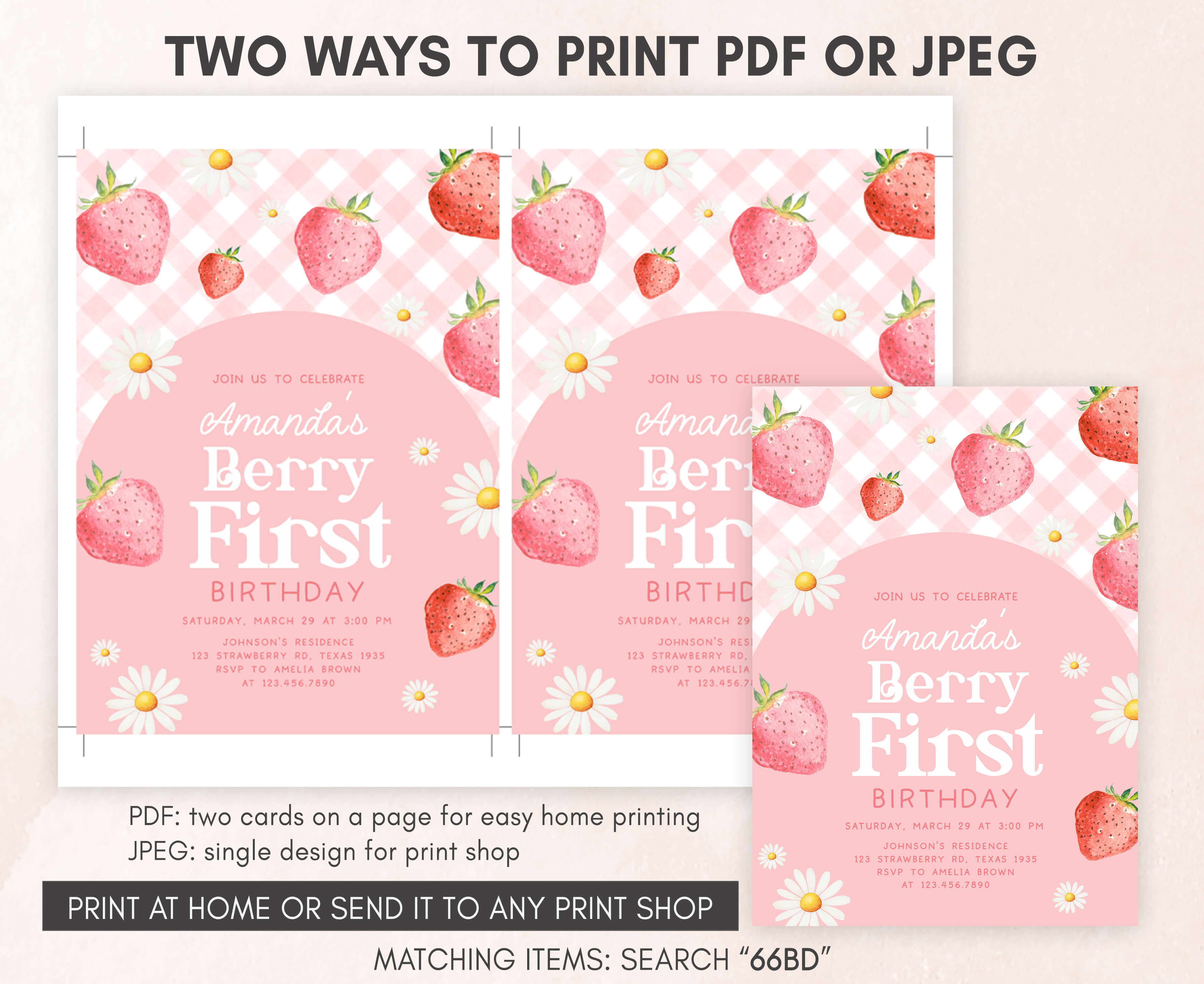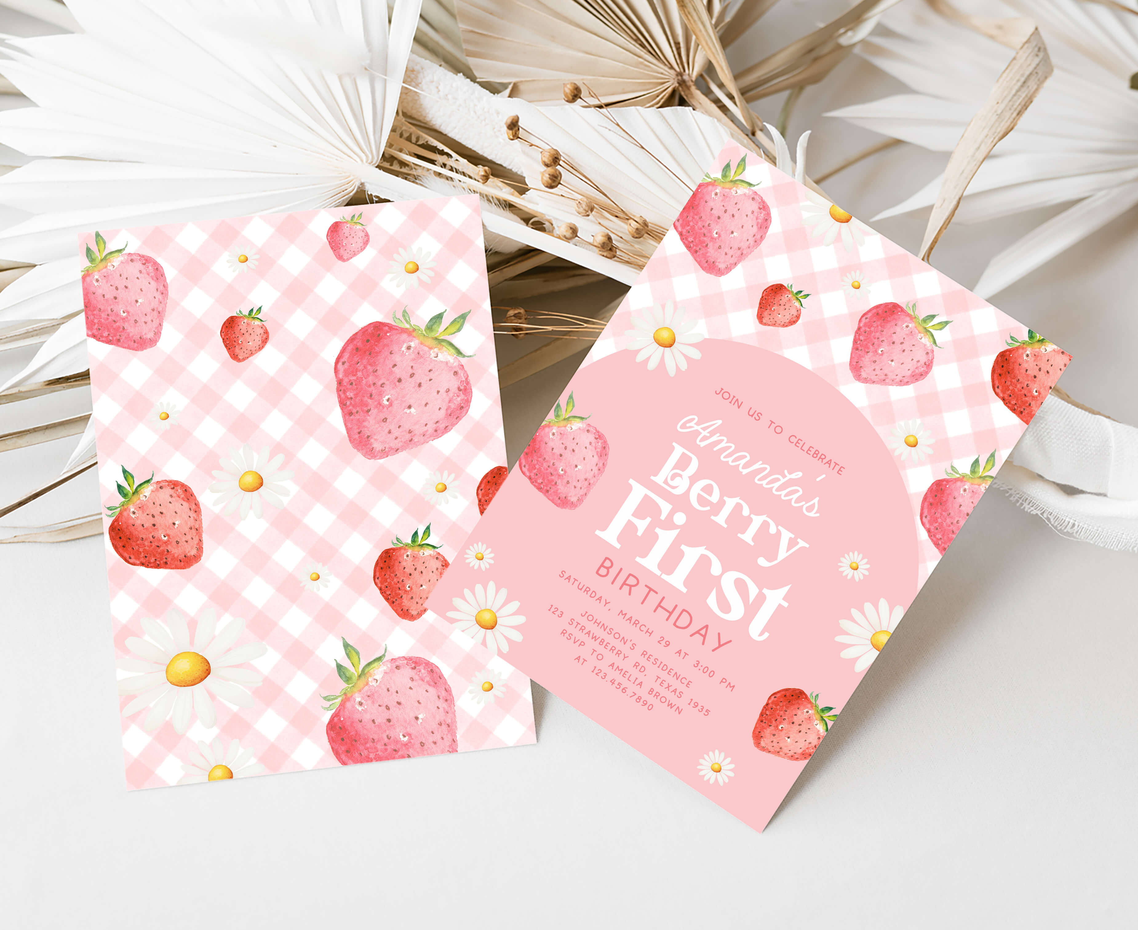 Celebrate with your guests at your Spring Summer Birthday Party using our delightful Strawberry Gingham Birthday Invitation. This Pink Berry Bash Birthday Invite is the ideal choice to tone for a Spring-themed celebration.