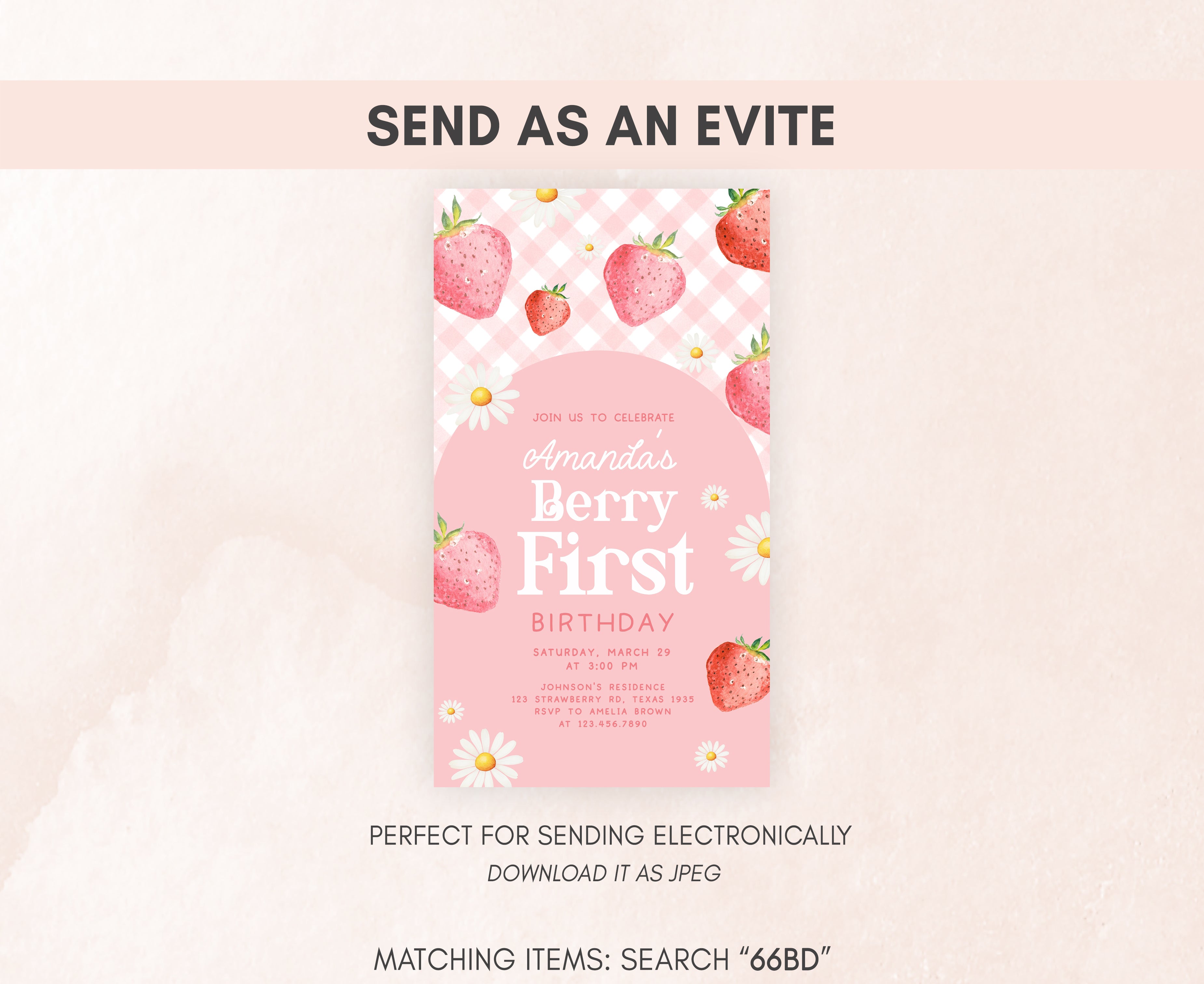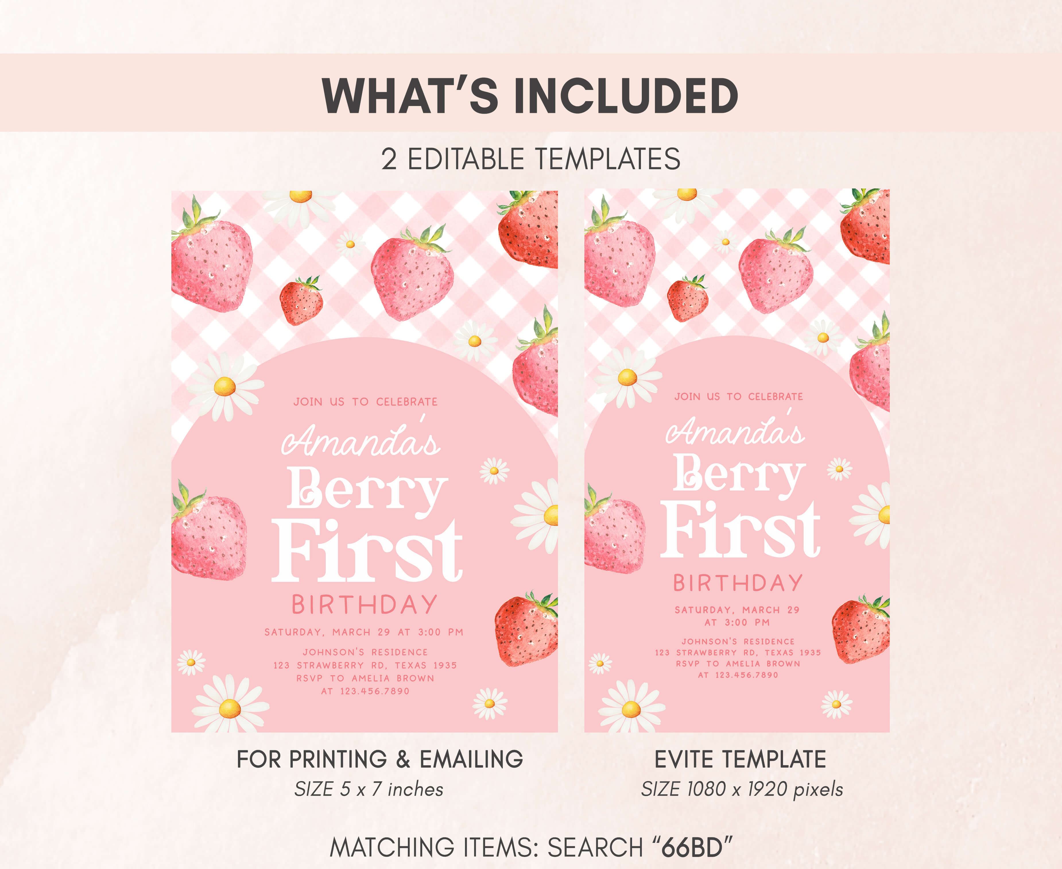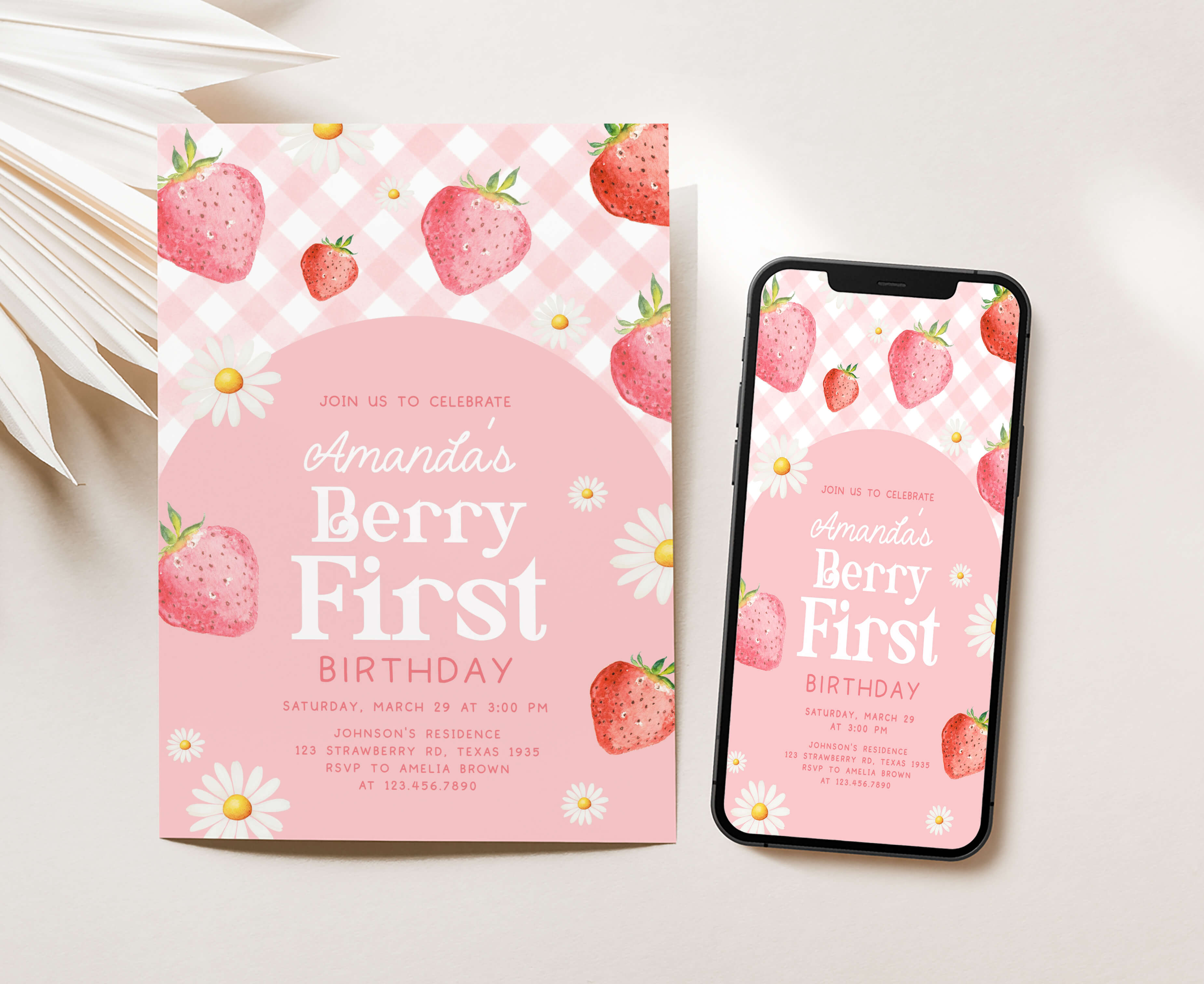 Celebrate with your guests at your Spring Summer Birthday Party using our delightful Strawberry Gingham Birthday Invitation. This Pink Berry Bash Birthday Invite is the ideal choice to tone for a Spring-themed celebration.