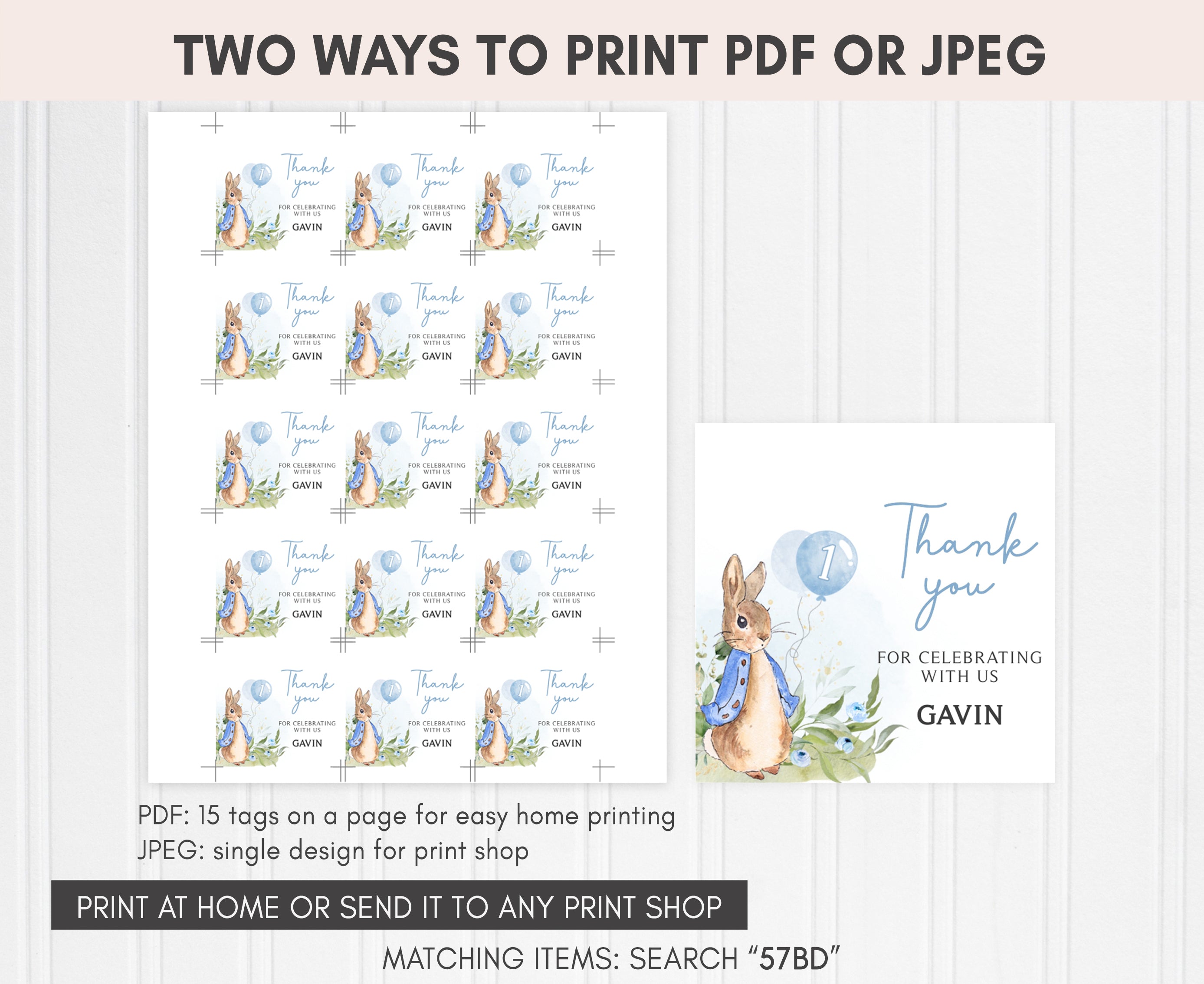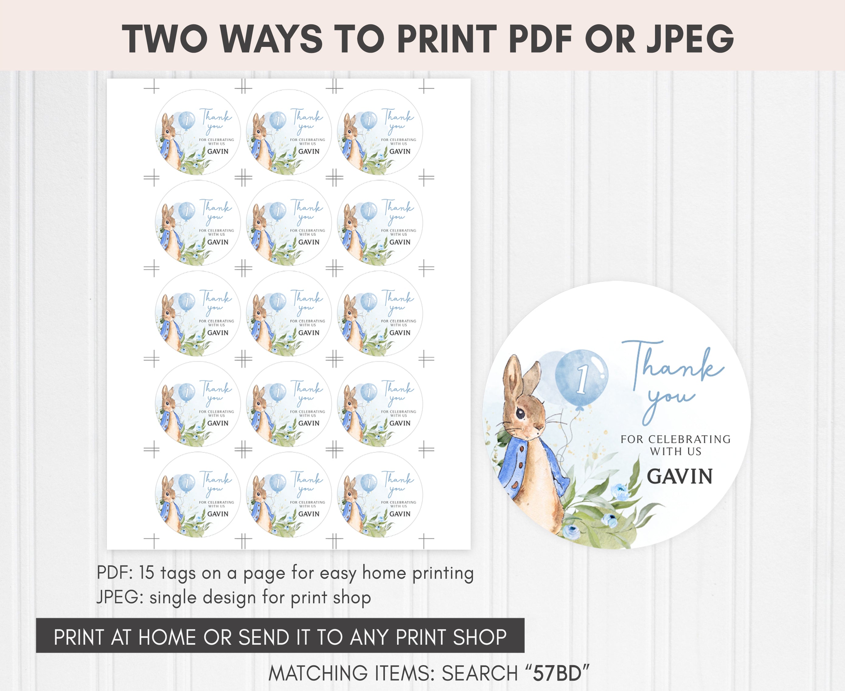 Amplify the charm of your Spring Bunny Birthday Party favors by adding a personal touch with our delightful Blue Peter Rabbit Birthday Gift Tags. These Watercolor Balloon Bunny Thank you Tags are the perfect way to express your gratitude to your guests in a special and heartfelt manner.