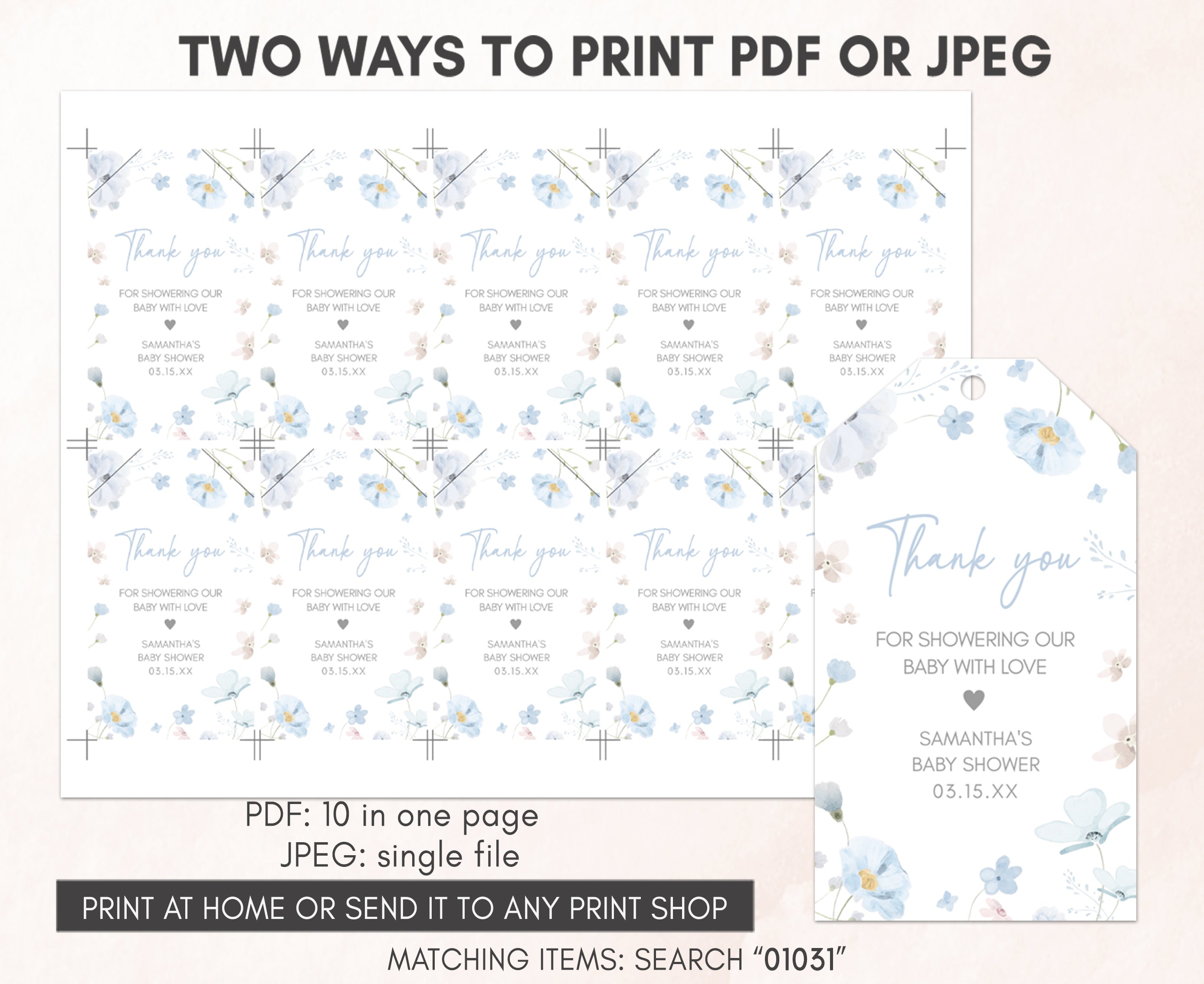 Amplify the charm of your Spring Pastel Blossoms Baby Shower party favors by adding a personal touch with our delightful Blue Baby in Bloom Baby Shower Gift Tags. These Watercolor Flower Thank you Tags are the perfect way to express your gratitude to your guests in a special and heartfelt manner.