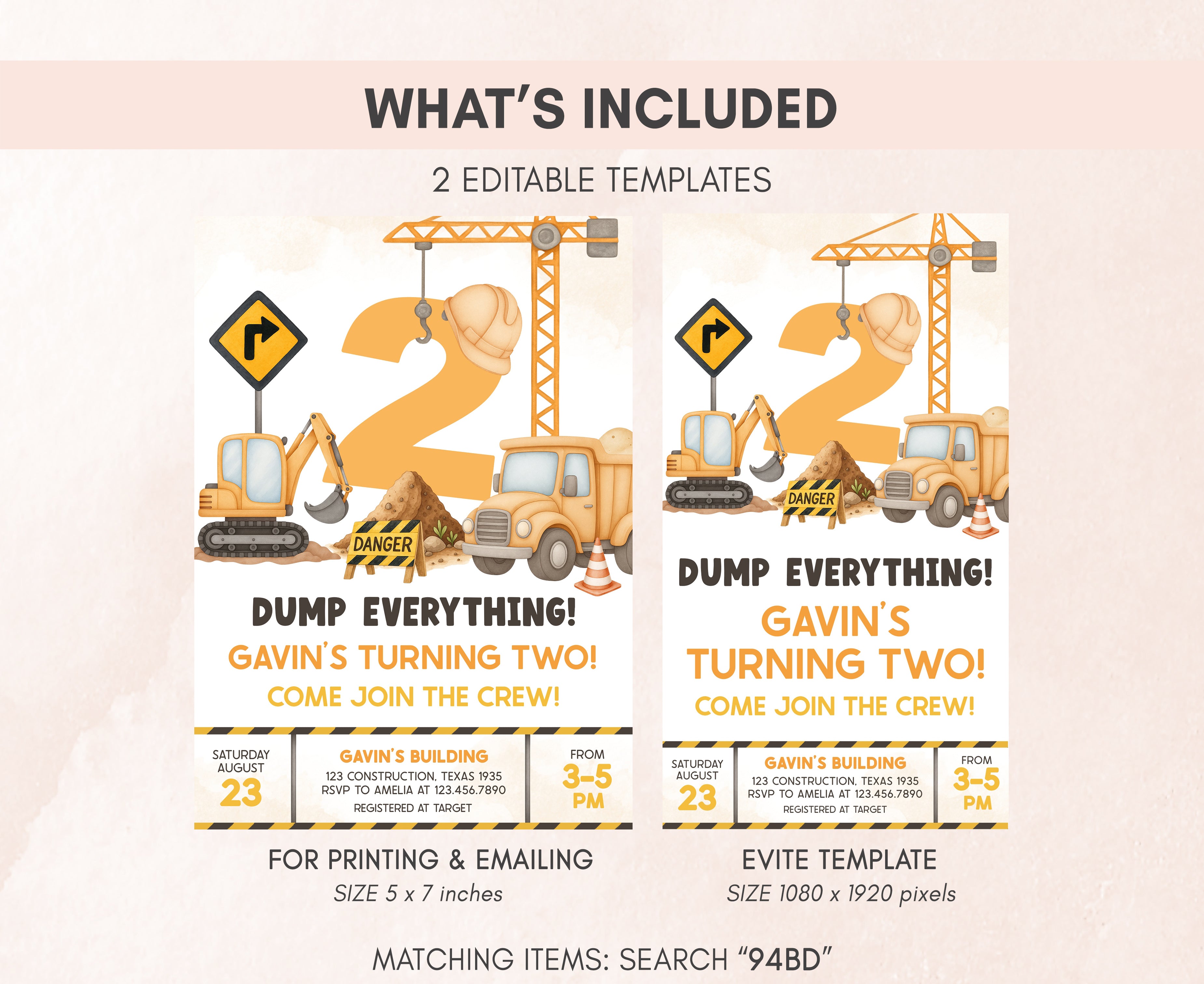 ➡ Visit this link for all the matching items for Construction Site Birthday Party theme: