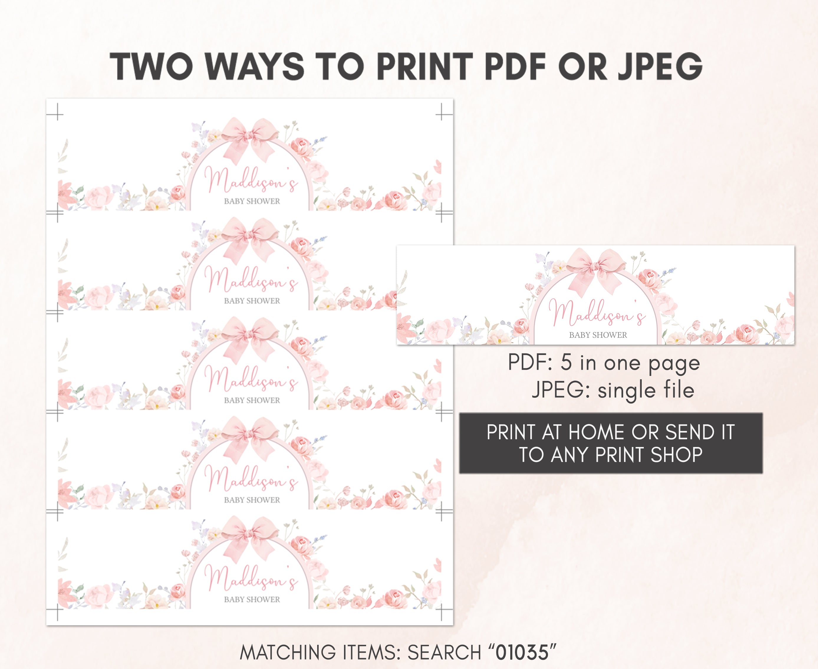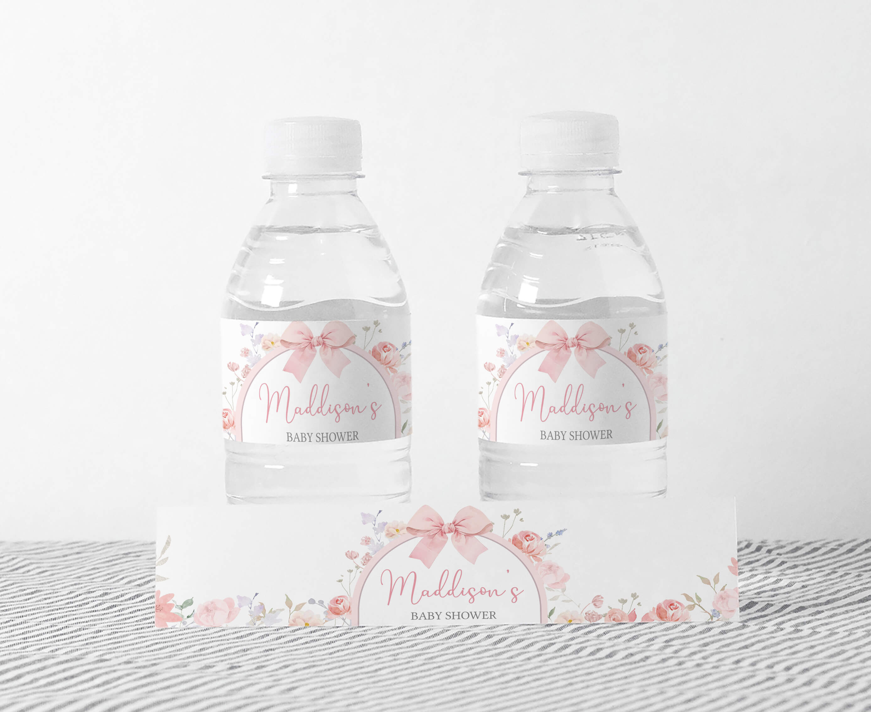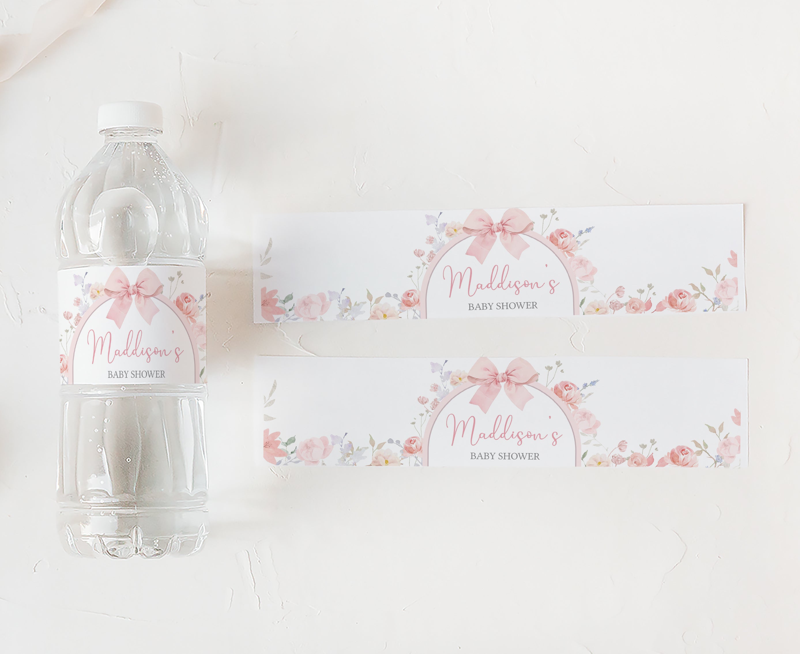 Sprinkle a touch of sweetness onto your Spring Bow Baby Shower Party by using our adorable Pastel Flower Arch Water Bottle Labels. These delightful Pink Floral Ribbon Water Wraps will not only make staying hydrated a pleasure but also keep your guests feeling refreshed as they join in the celebration of this joyous occasion.