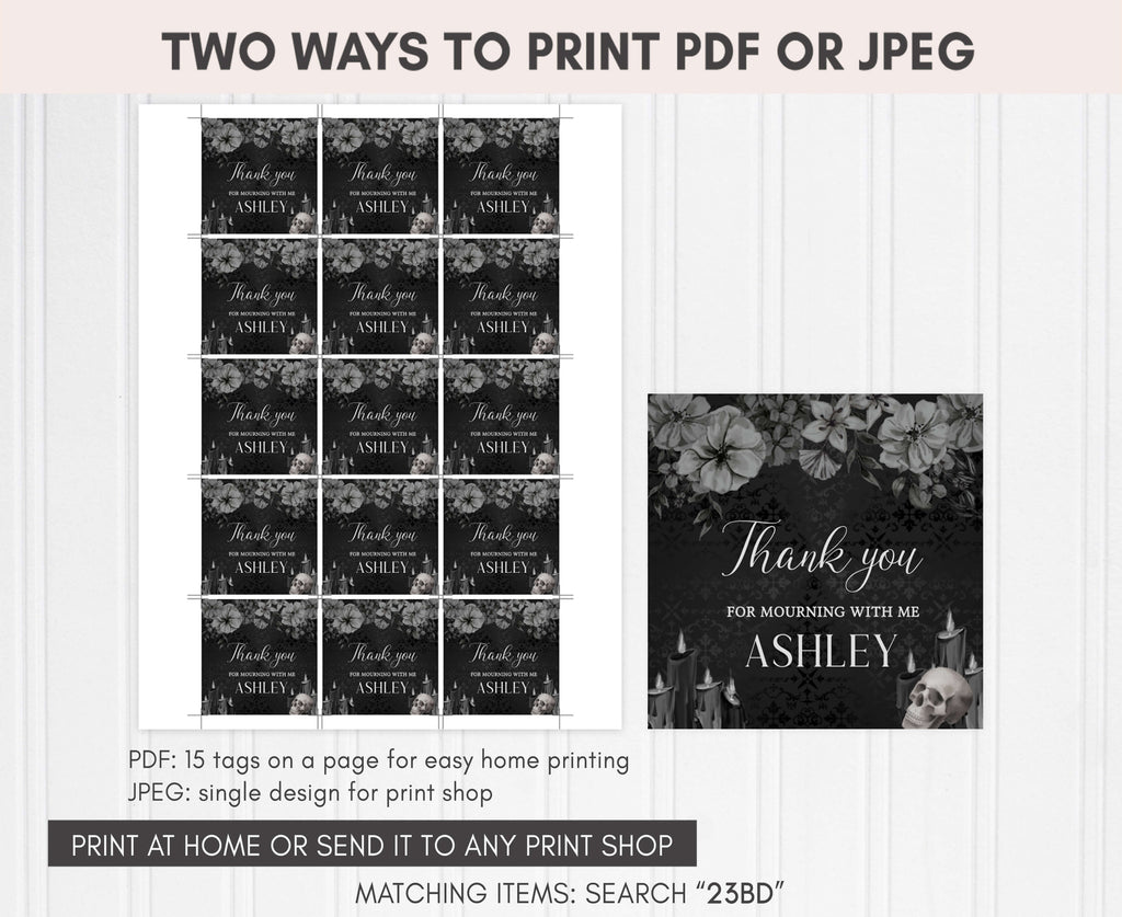 Amplify the charm of your Floral Halloween Birthday Party favors by adding a personal touch with our delightful Elegant Spooky Birthday Gift Tags. These Vintage Skull Thank you Tags are the perfect way to express your gratitude to your guests in a special and heartfelt manner.