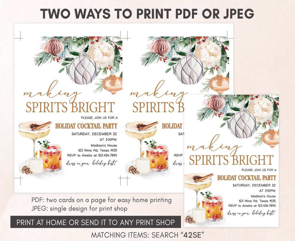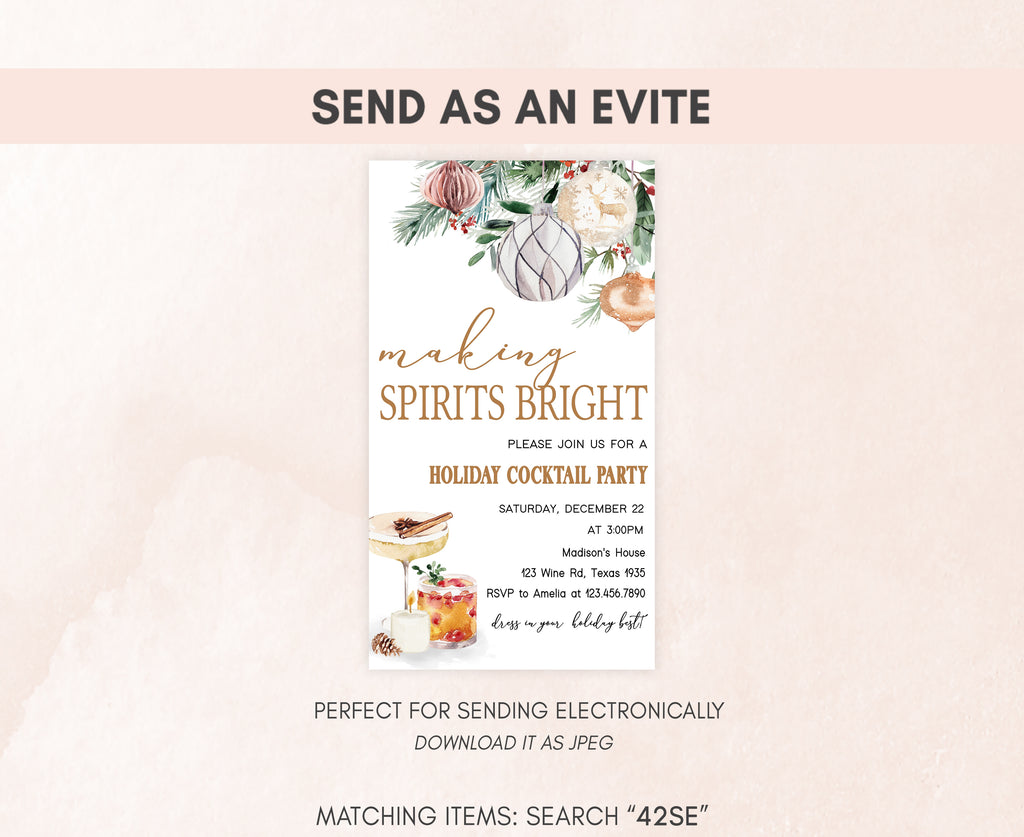 Celebrate with your guests at your Christmas Cheer Party using our delightful Making Spirits Bright Invitation. This Christmas Ornament Invite is the ideal choice to tone for a Holiday-themed celebration.