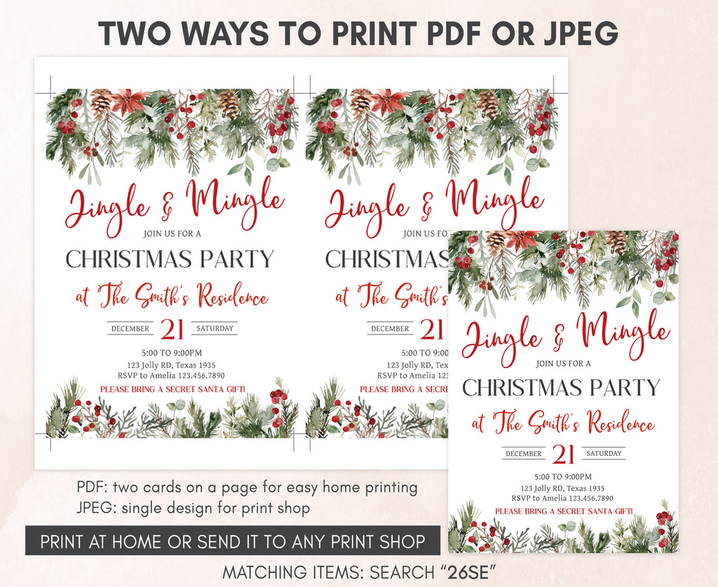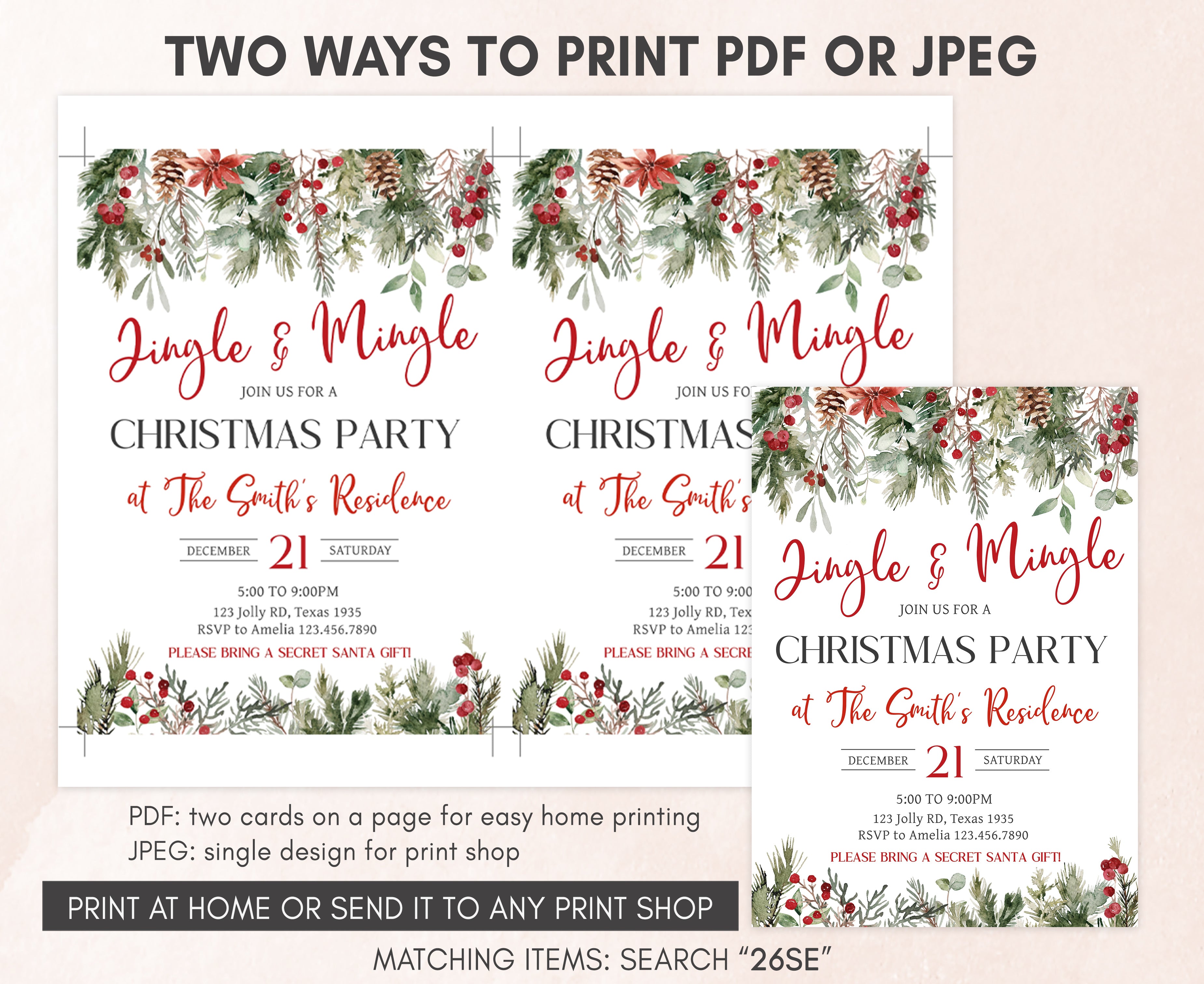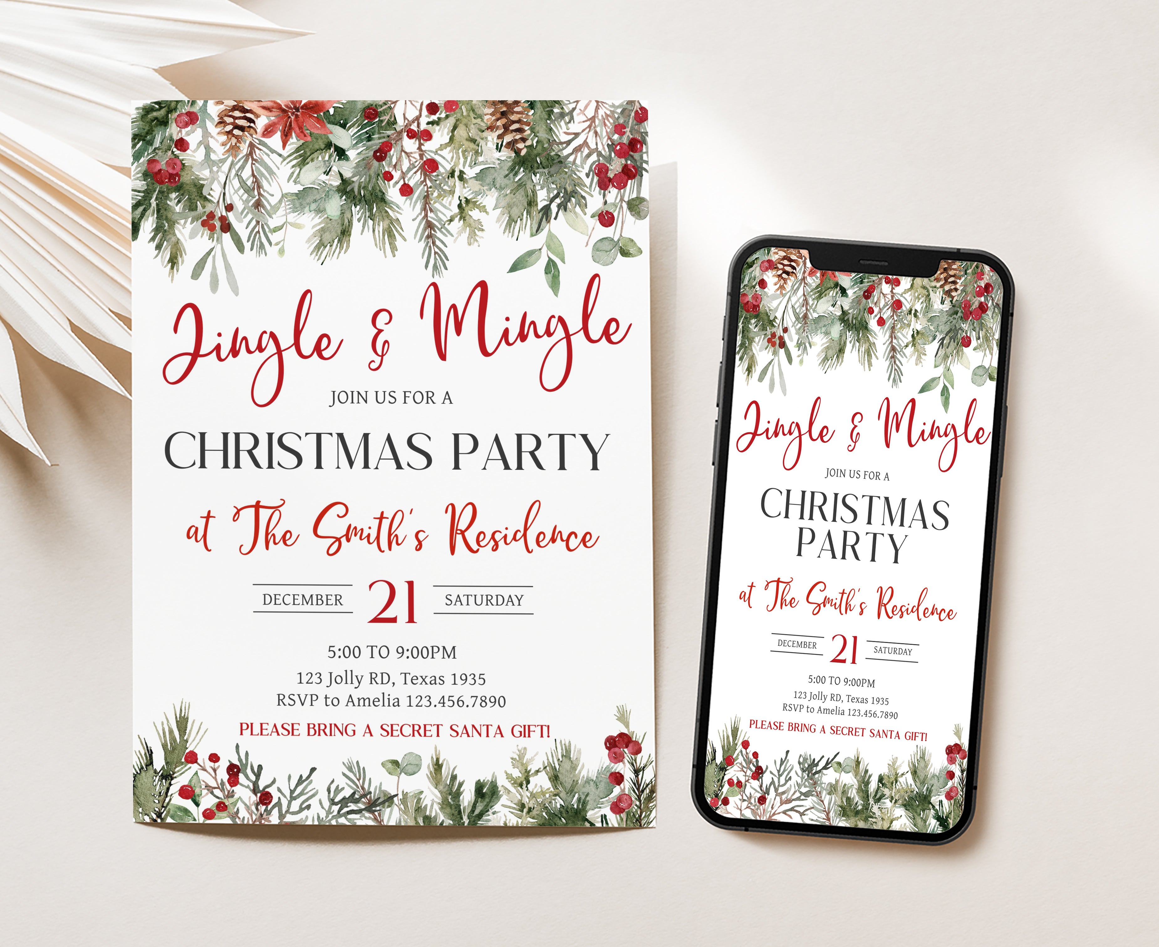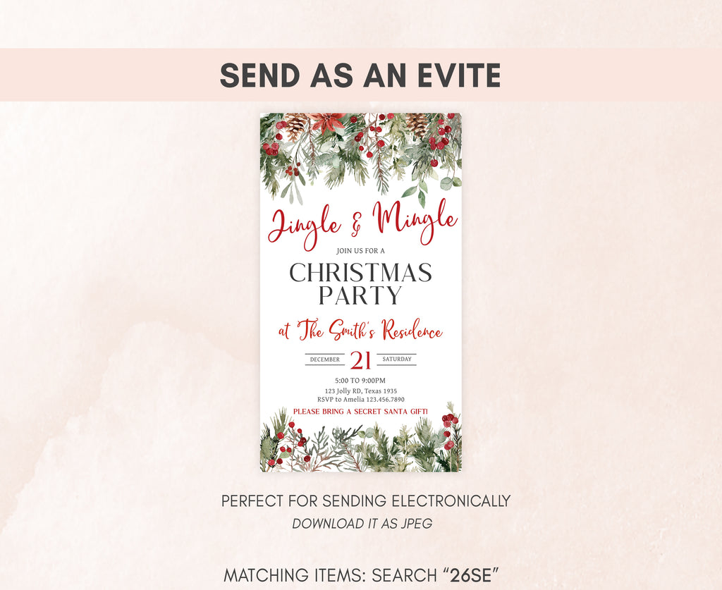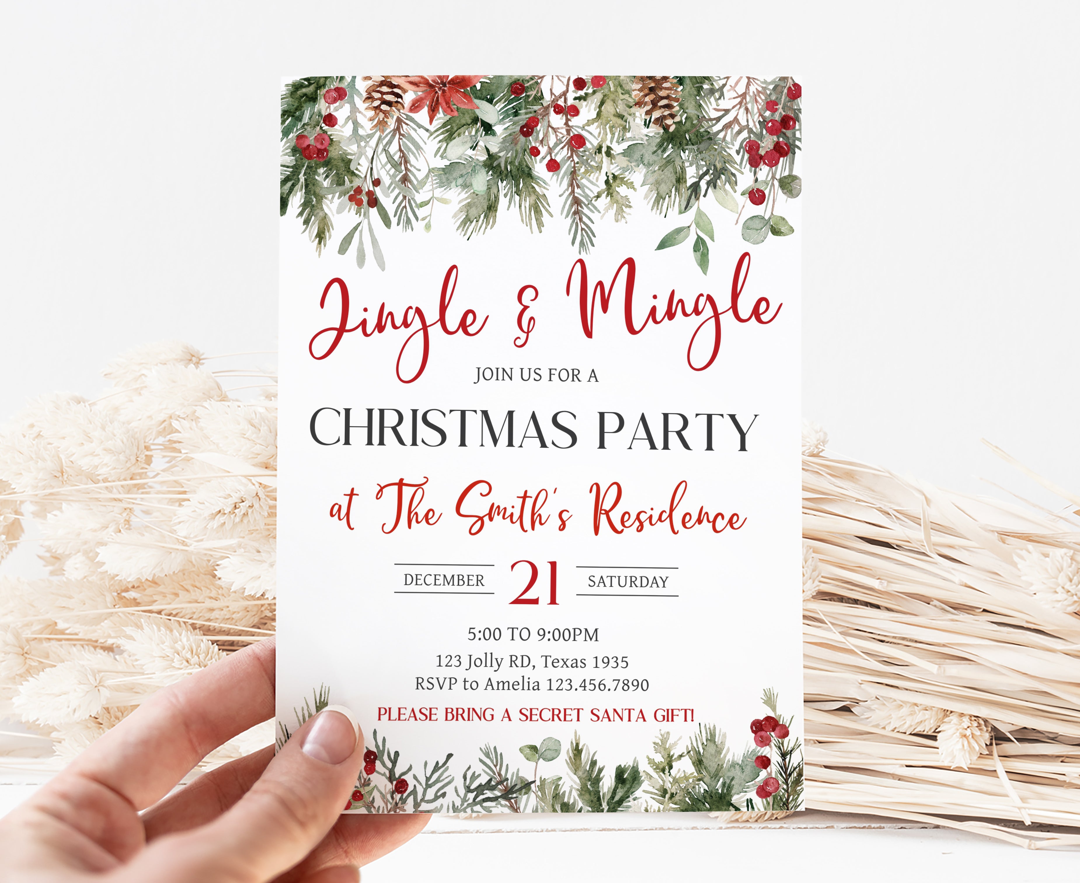 Celebrate with your guests at your Festive Greenery Holiday Party using our delightful Watercolor Christmas Invitation. This Elegant Winter Foliage Invite is the ideal choice to tone for a Christmas-themed celebration.