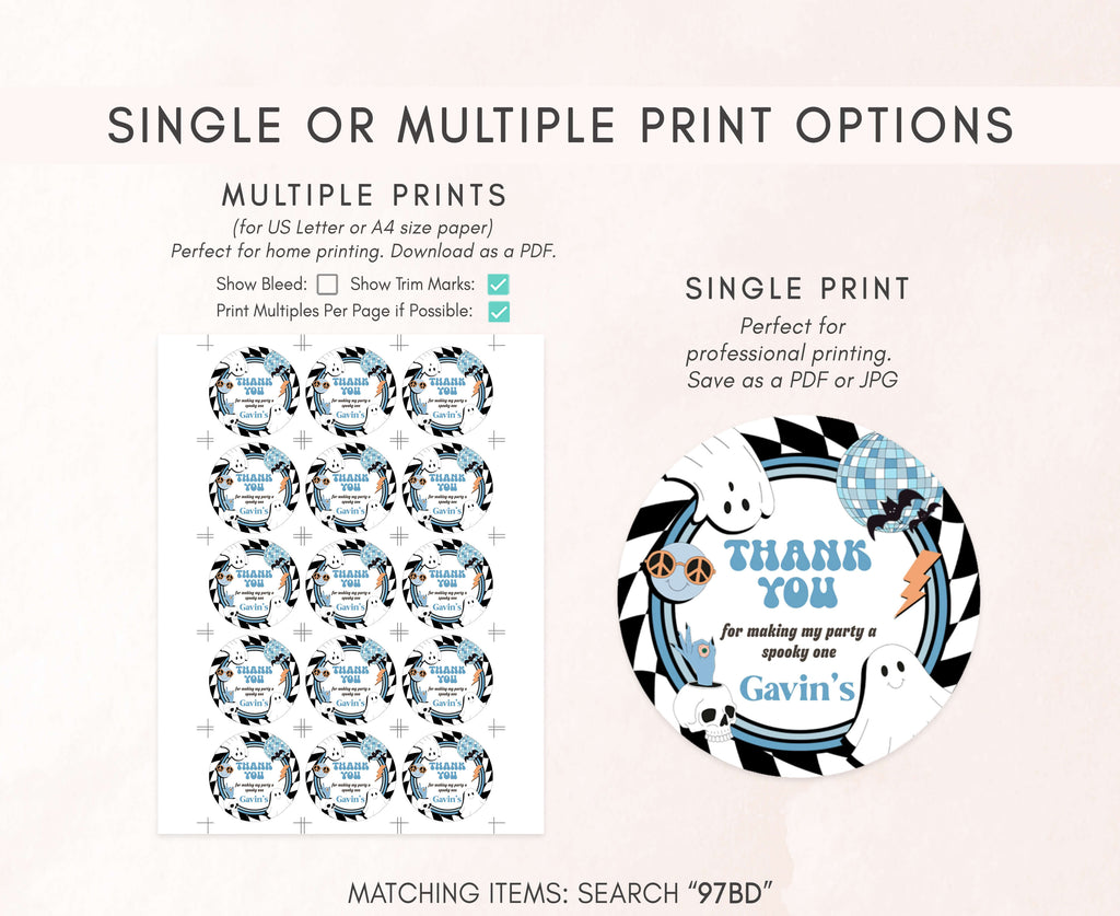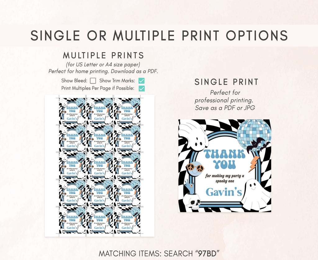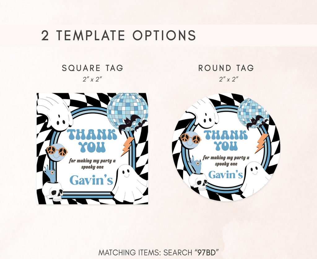 Amplify the charm of your Boy Retro Halloween Birthday Party favors by adding a personal touch with our delightful In My Spooky Era Birthday Gift Tags. These Groovy Ghost Disco Thank you Tags are the perfect way to express your gratitude to your guests in a special and heartfelt manner.