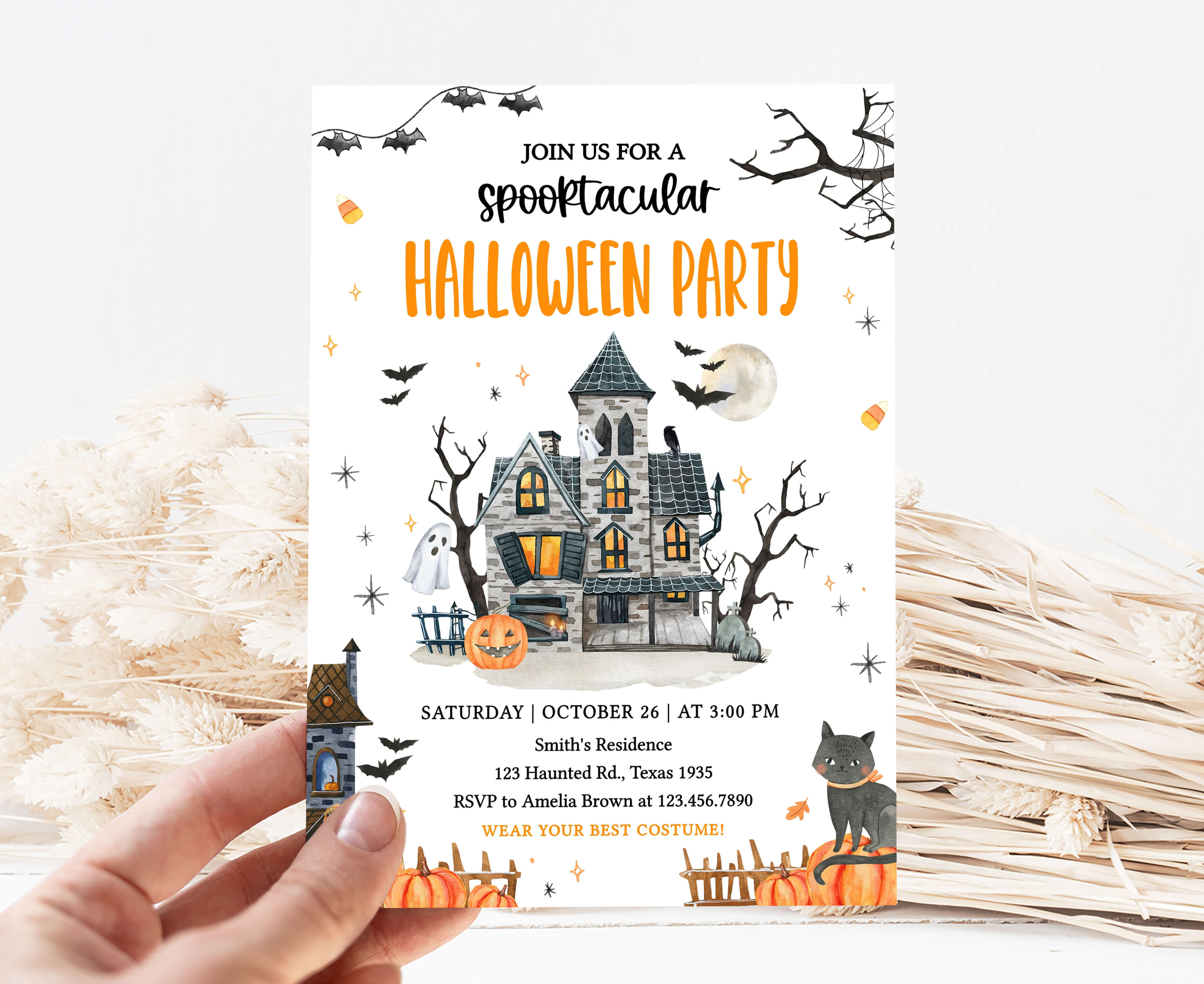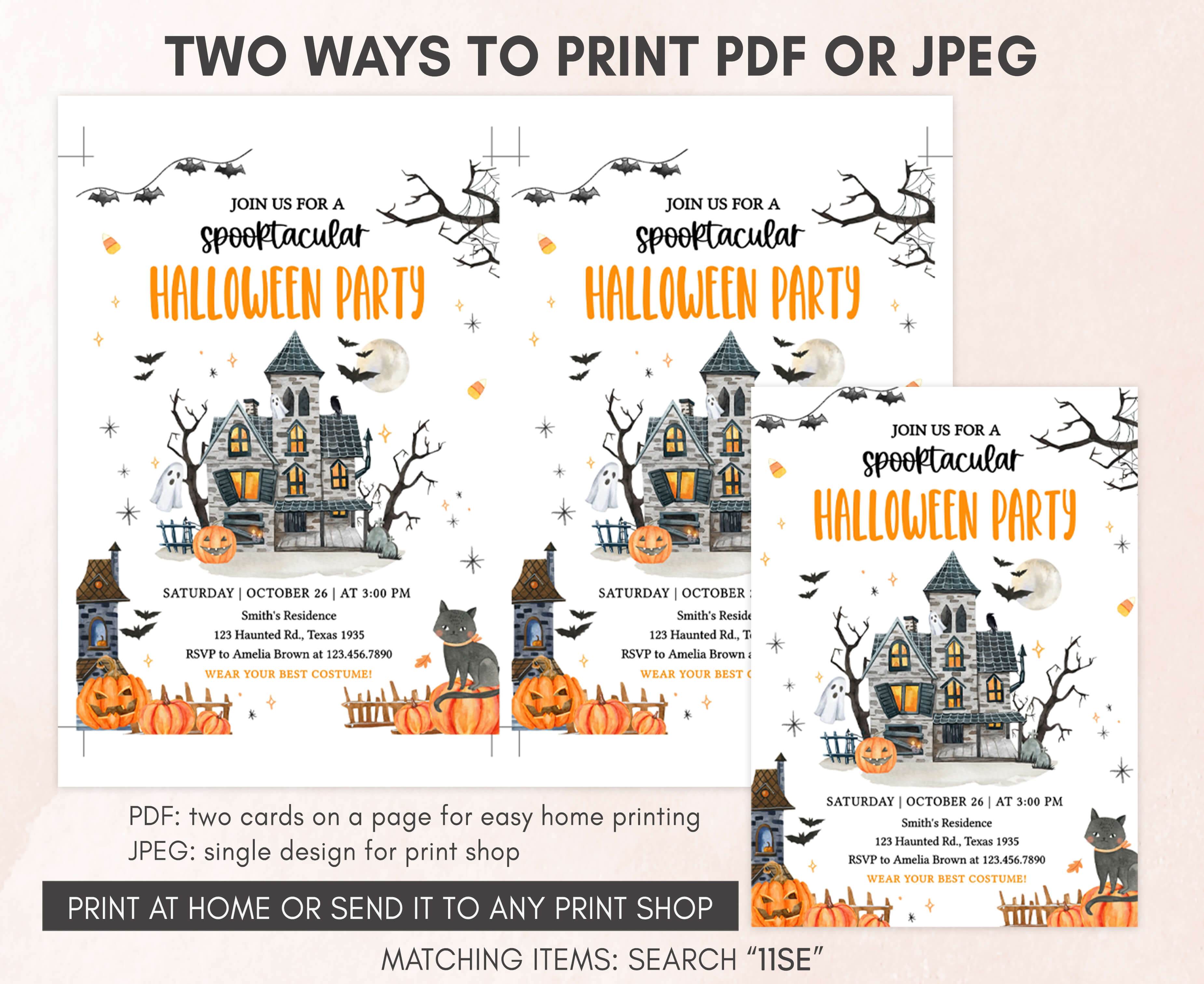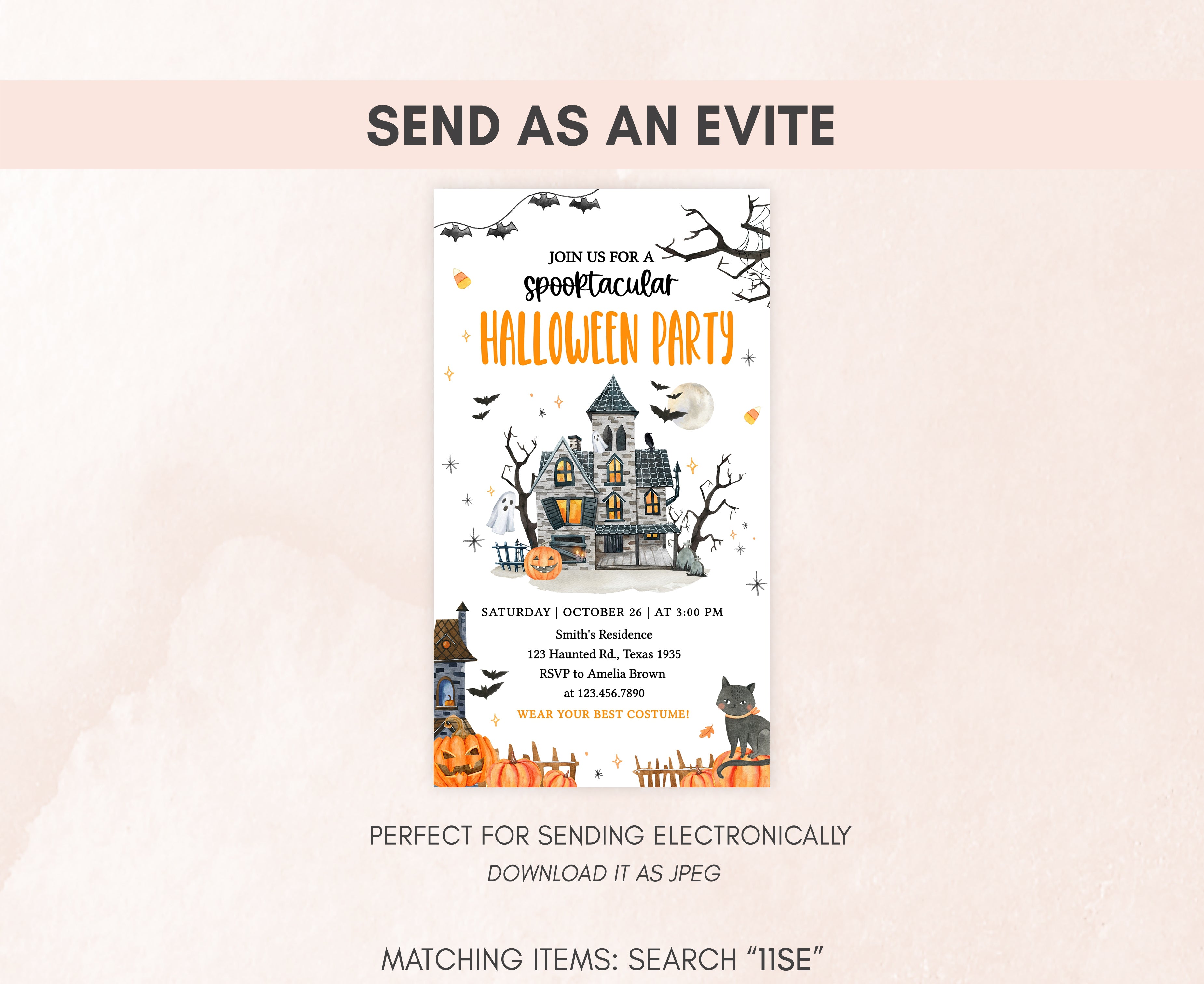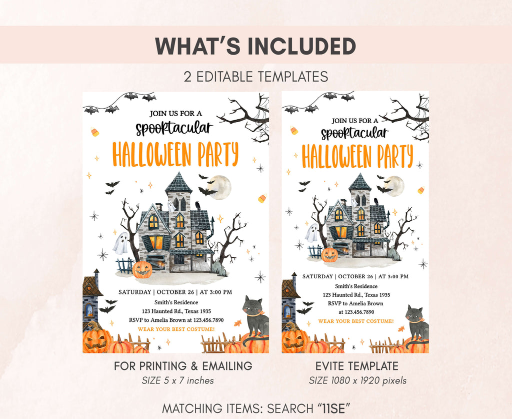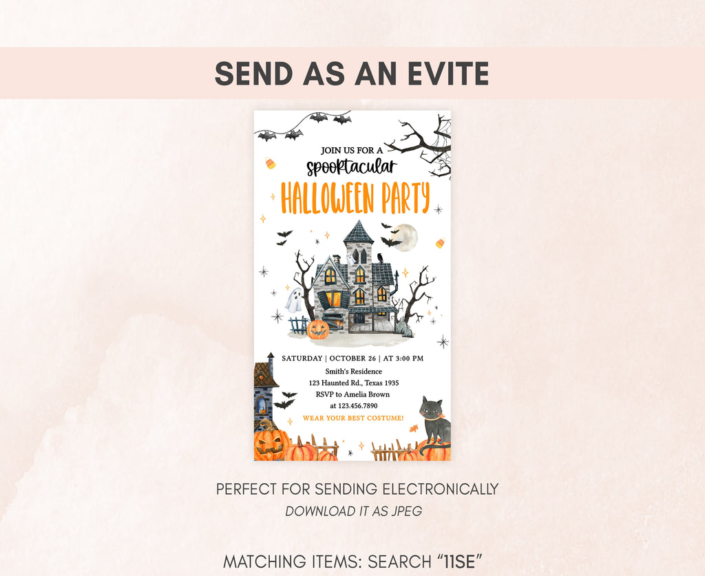 Celebrate with your guests at your Creepy Mansion Party using our delightful Spooky Halloween Party Invitation. This Pumpkin Halloween Invite is the ideal choice to tone for a spooky-themed celebration.