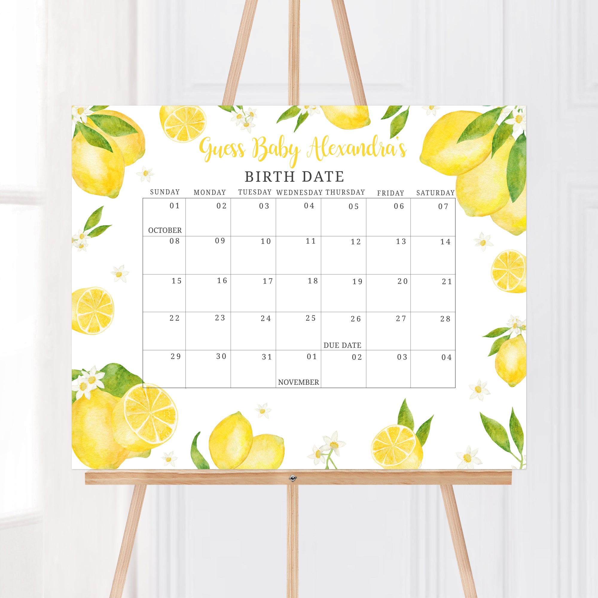 Partake in the excitement of your Summer Citrus Baby Shower Party with our Floral Lemon Due Date Game! Embrace the adorable spirit of the Lemon Citrus Baby Shower party as guests make their predictions for the due date, coming together to share in the anticipation of the upcoming arrival. Complete the joy and fun with this Orange Baby Shower Birthday Predictions.