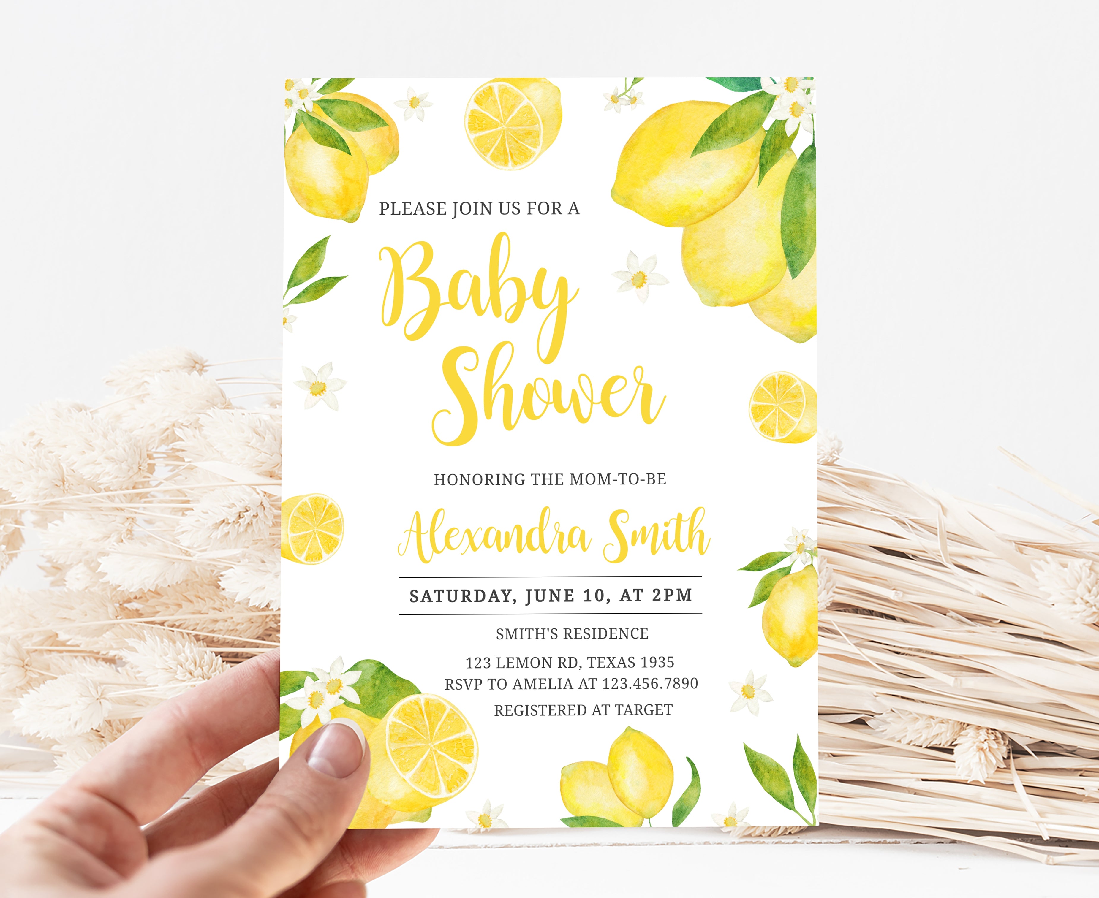 Celebrate with your guests at your Summer Citrus Baby Shower Party using our delightful Floral Lemon Baby Shower Invitation. This Lemon Citrus Baby Shower Invite is the ideal choice to tone for a Summer-themed celebration.