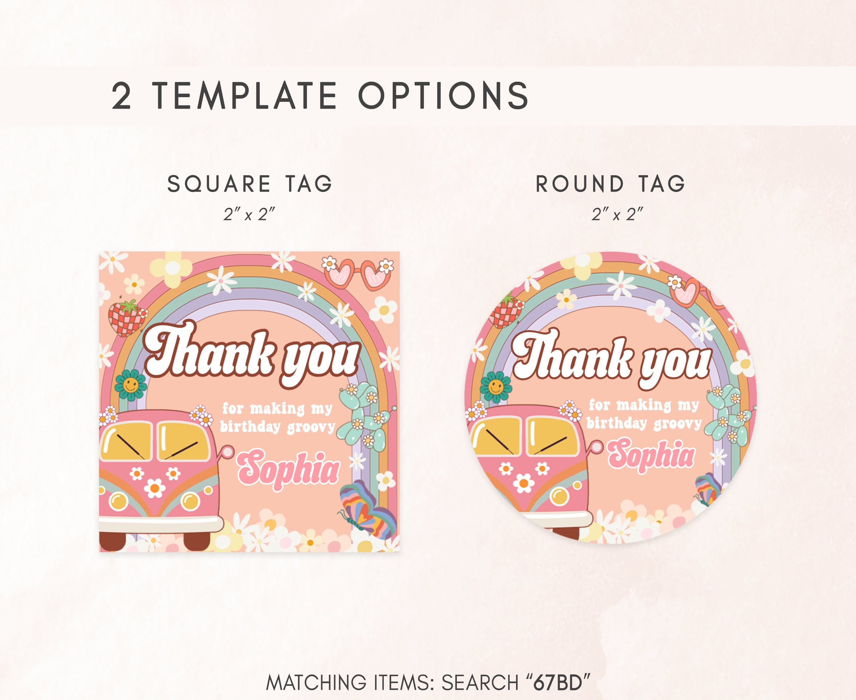 Amplify the charm of your Retro Rainbow Birthday Party favors by adding a personal touch with our delightful Boho Hippie Bus Birthday Gift Tags. These 70s Floral Groovy Thank you Tags are the perfect way to express your gratitude to your guests in a special and heartfelt manner.
