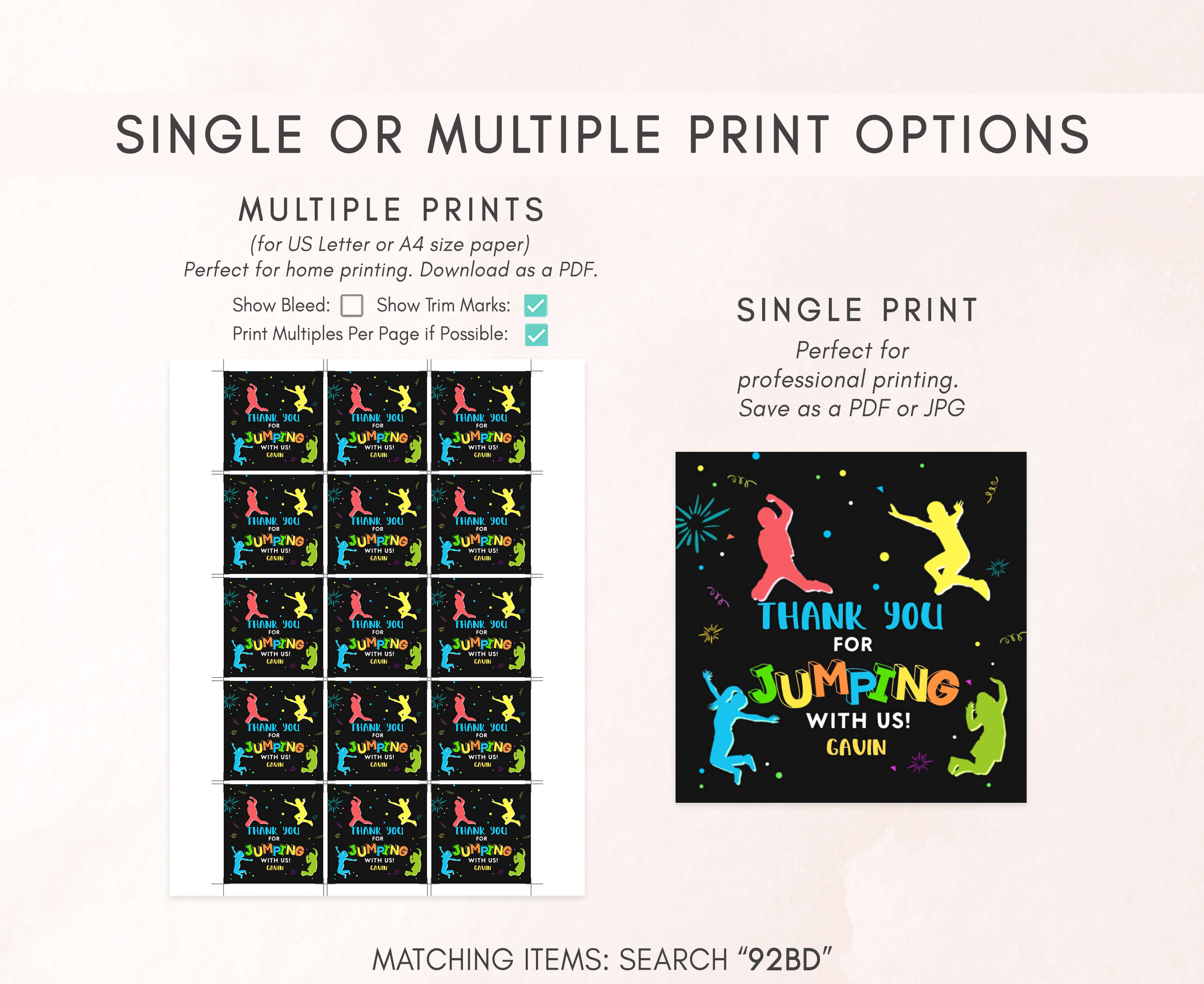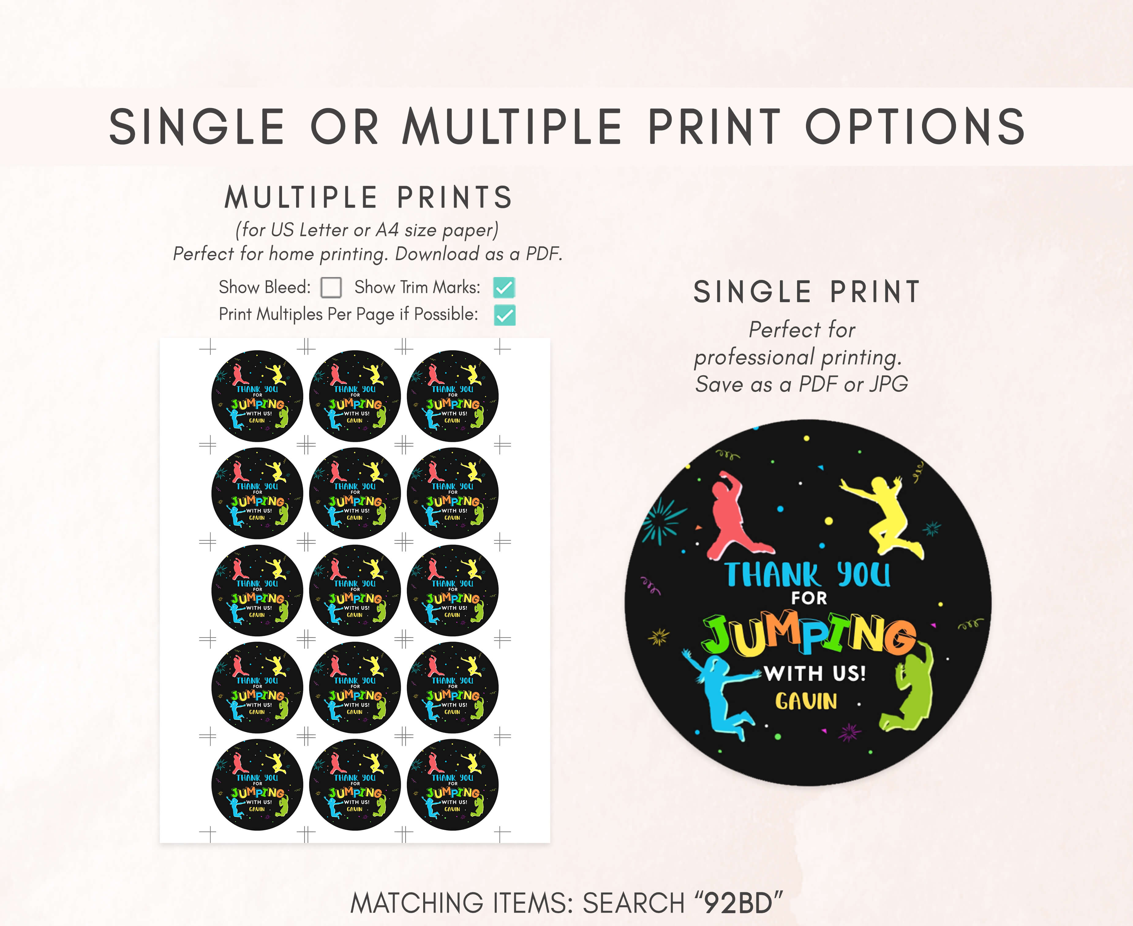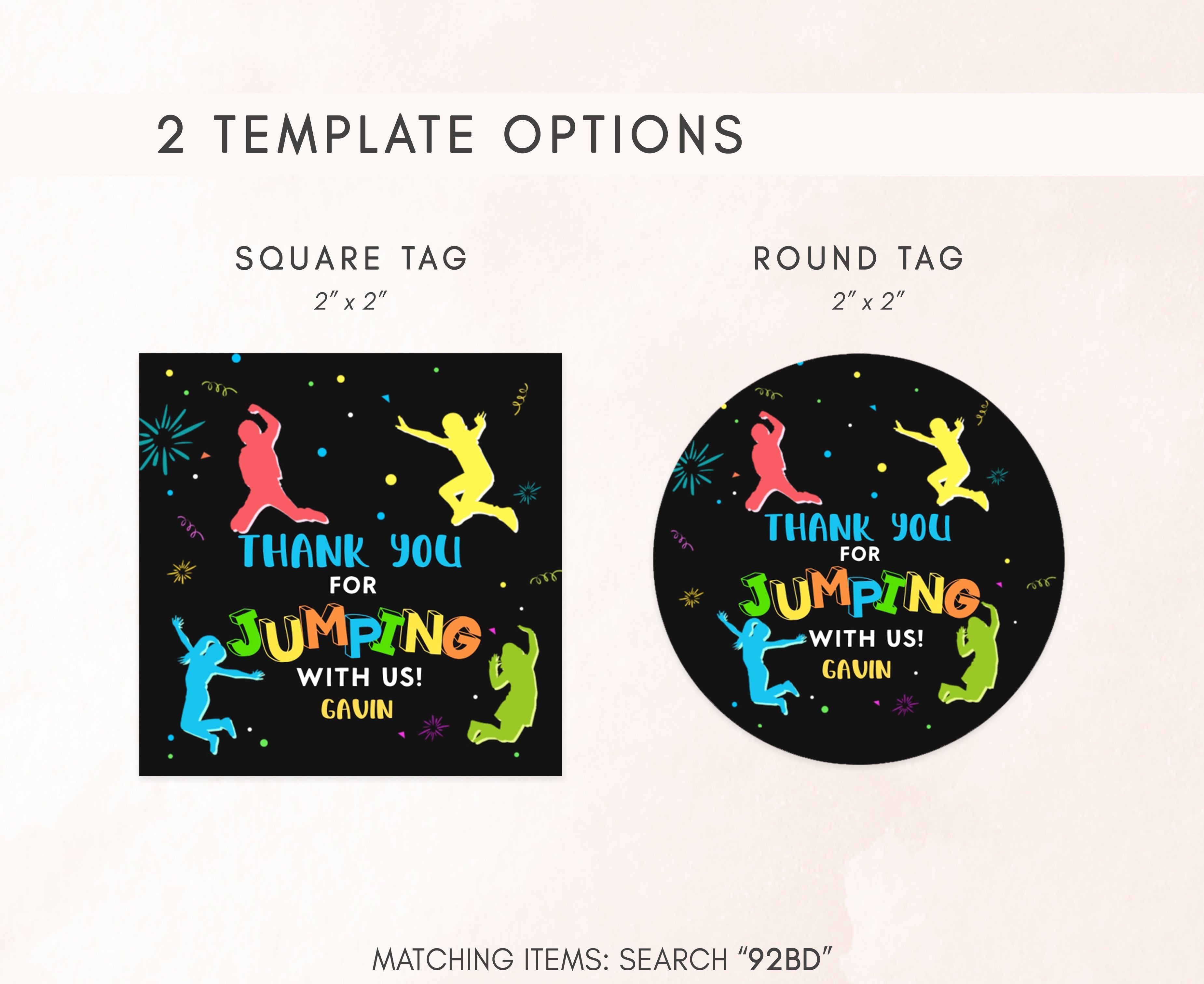 Amplify the charm of your Bounce Play Birthday Party favors by adding a personal touch with our delightful Neon Trampoline Birthday Round Gift Tags. These Kids Jump and Play Thank you Tags are the perfect way to express your gratitude to your guests in a special and heartfelt manner.