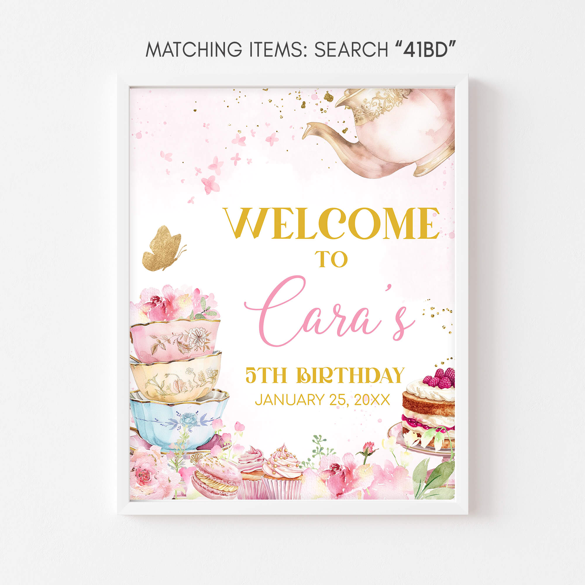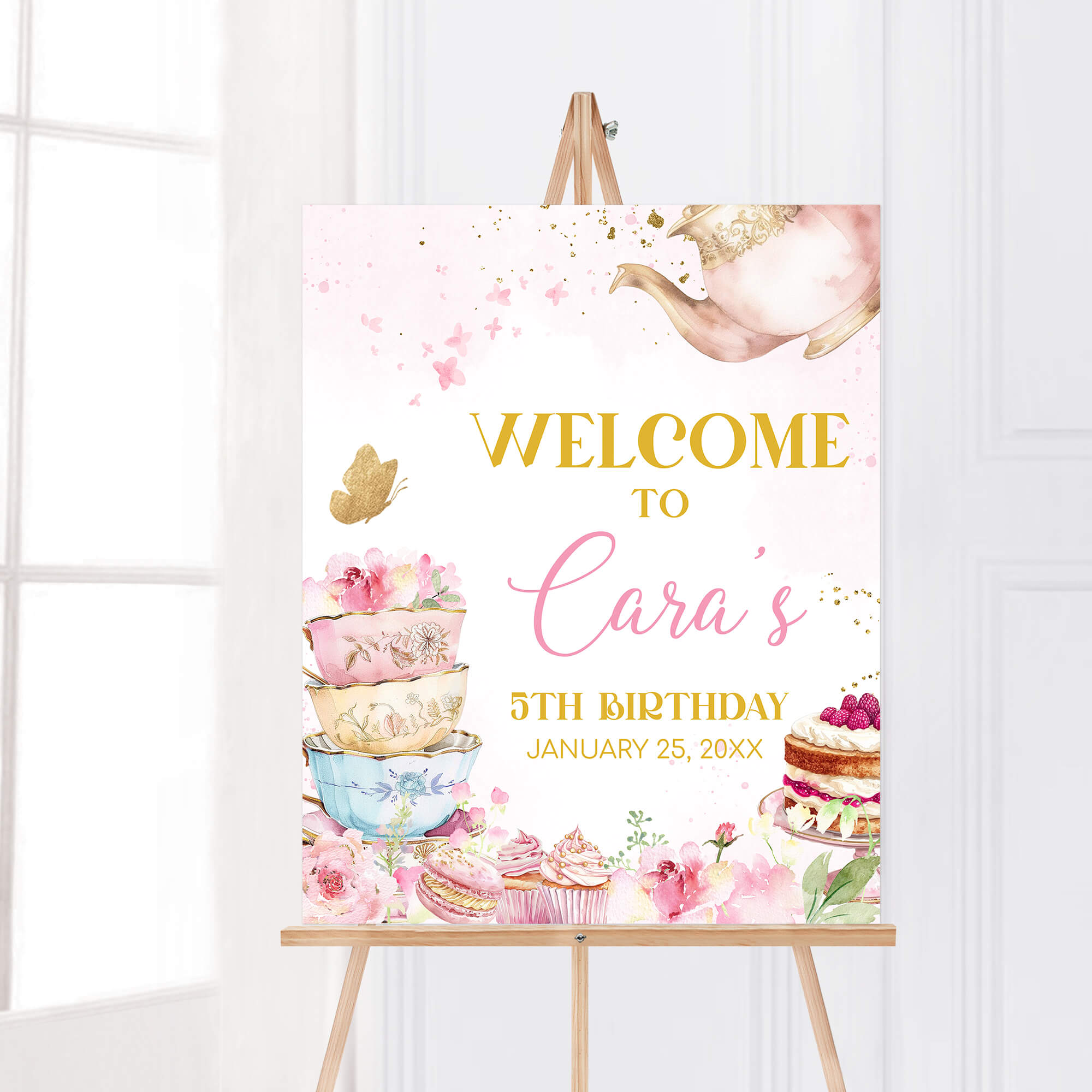 Elevate the charm of your Kids Spring Birthday Party with the Vintage Tea Cup Birthday Welcome Sign Printable. With its blooming design, it effortlessly captivates attention and enhances the overall ambiance, playfully guiding your guests to the heart of the Floral Tea Party celebration.