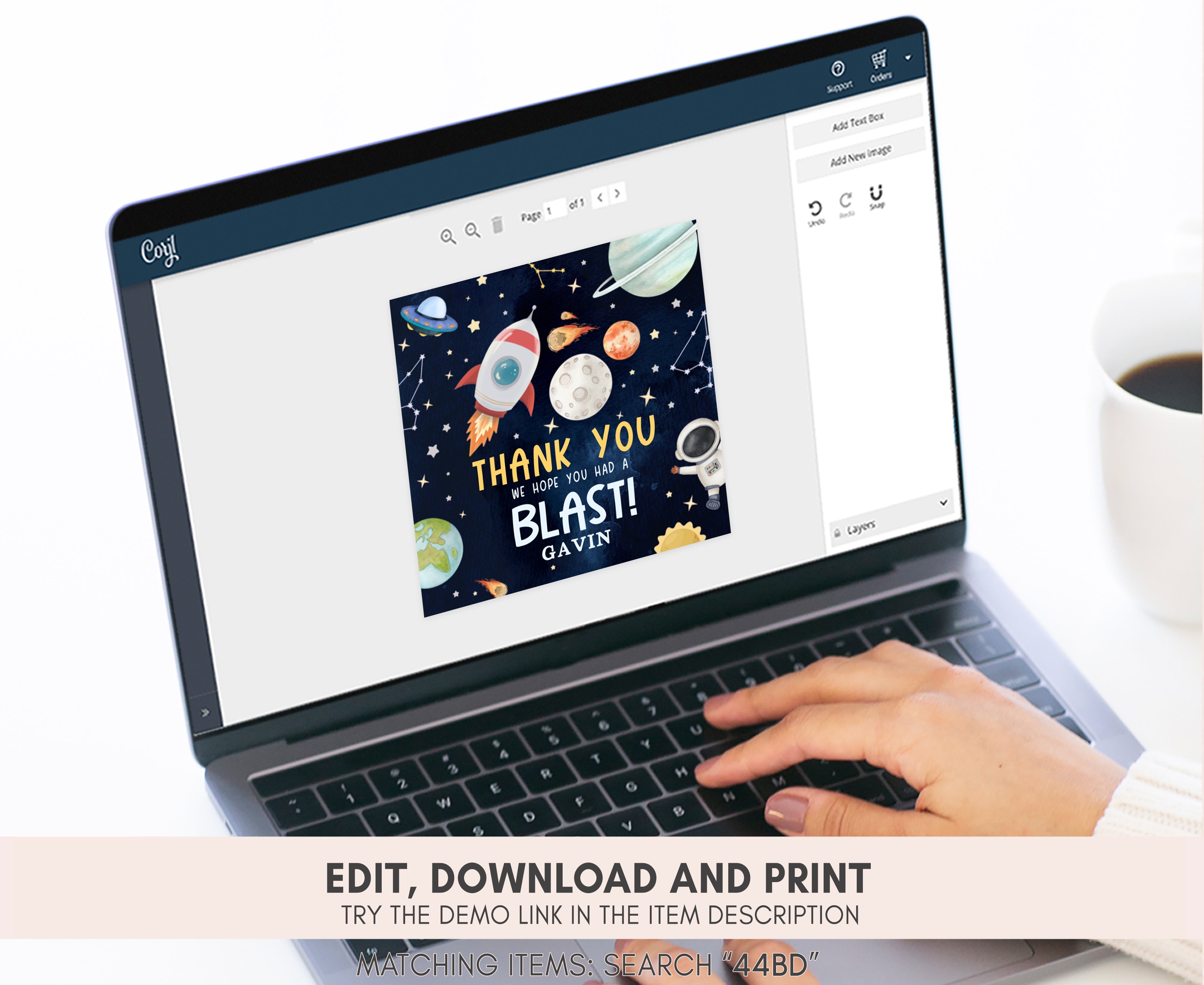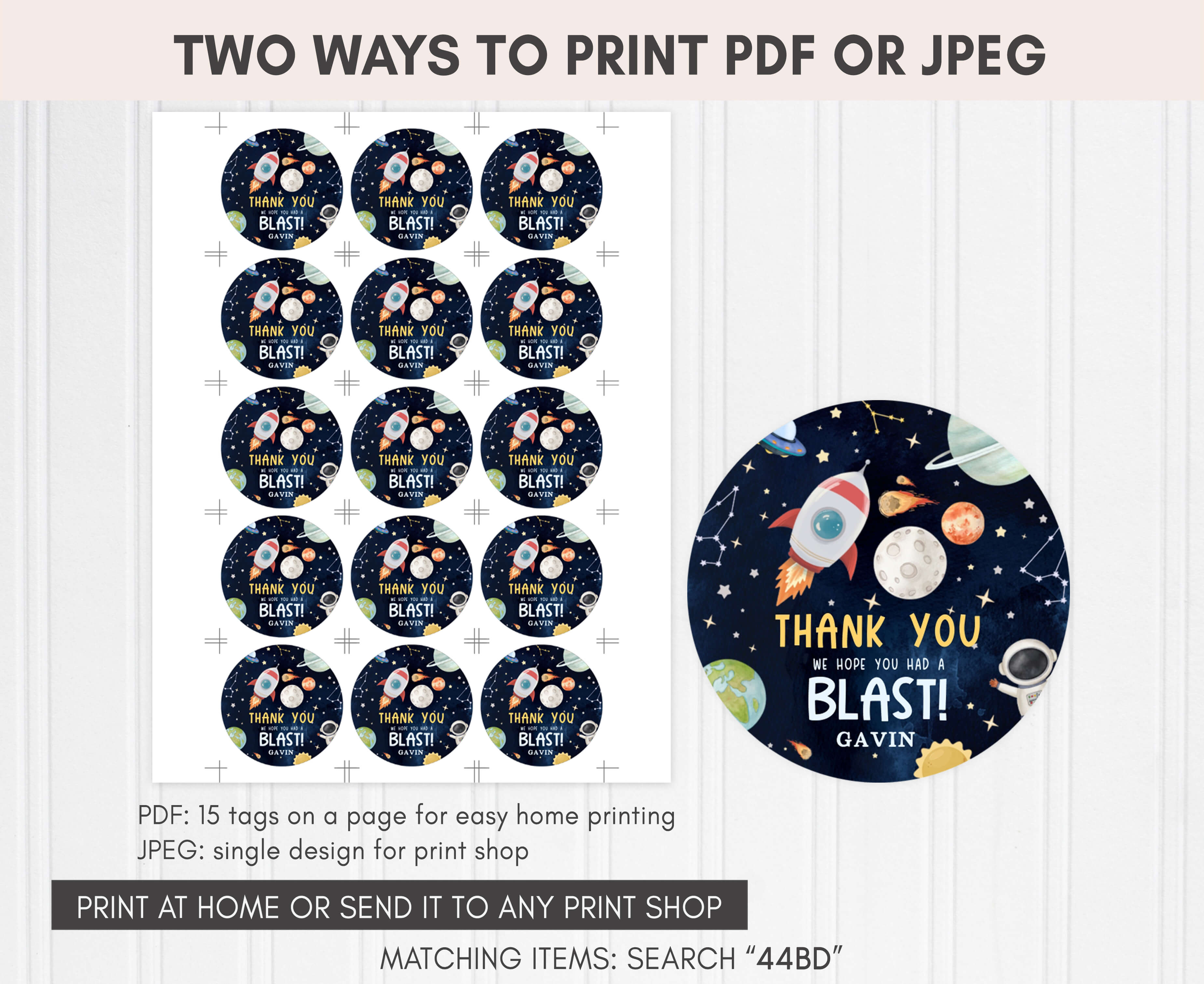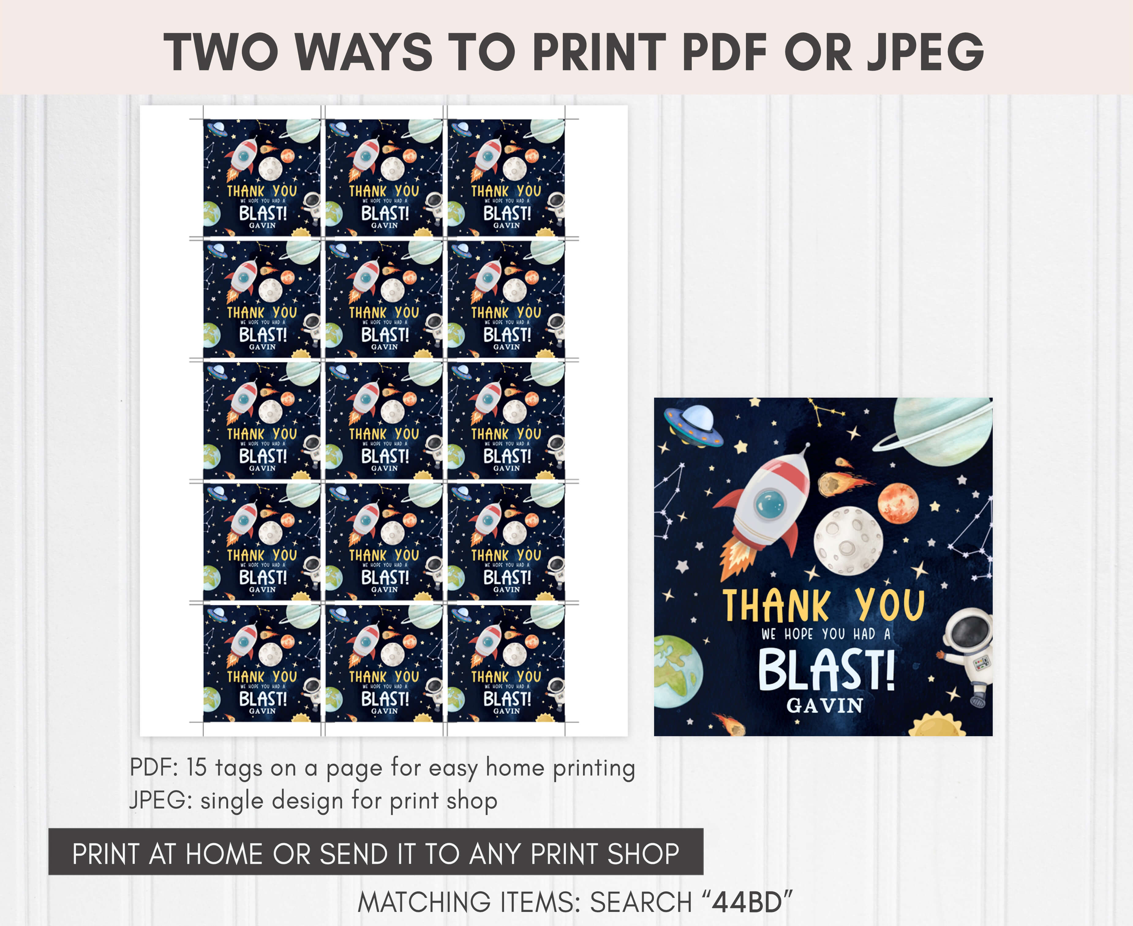 Amplify the charm of your Solar System Birthday Party favors by adding a personal touch with our delightful Rocket Ship Blast Off Birthday Gift Tags. These Galaxy Universe Thank you Tags are the perfect way to express your gratitude to your guests in a special and heartfelt manner.