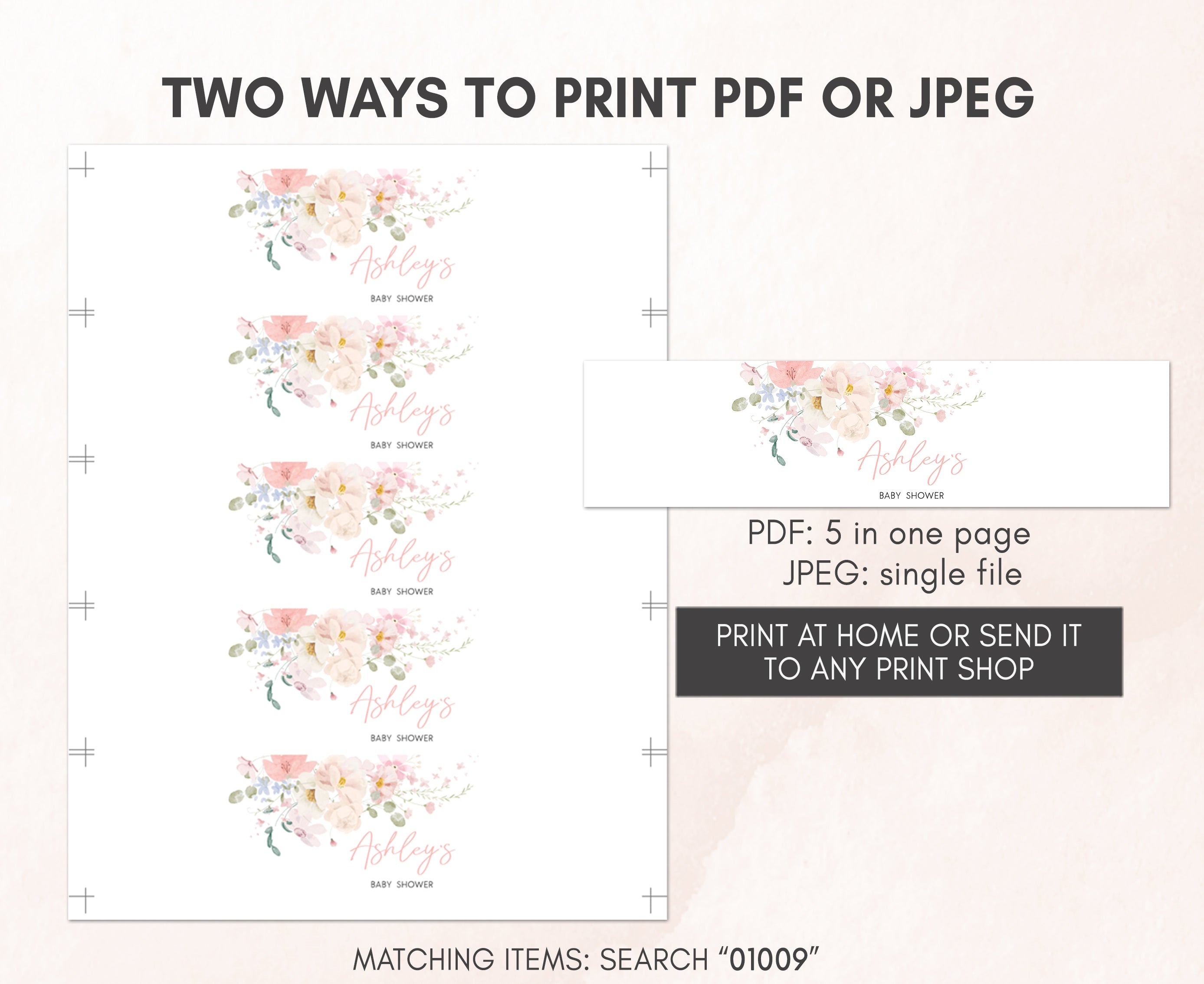 Sprinkle a touch of sweetness onto your Pink Floral Baby Shower Party by using our adorable Girl Baby Bloom Water Bottle Labels. These delightful Watercolor Flower Water Wraps will not only make staying hydrated a pleasure but also keep your guests feeling refreshed as they join in the celebration of this joyous occasion.
