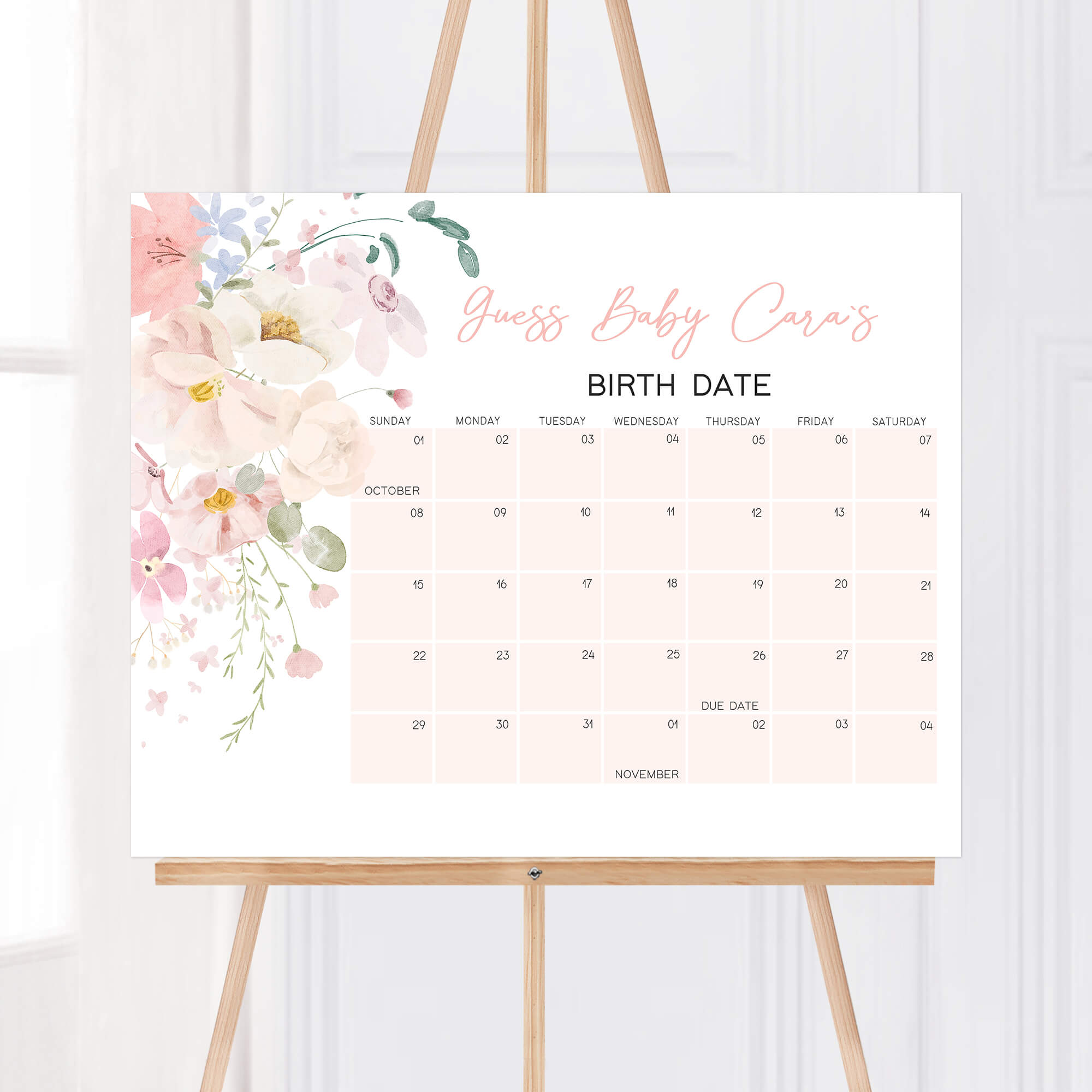 Partake in the excitement of your Pink Floral Baby Shower Party with our Girl Baby Bloom Due Date Game! Embrace the adorable spirit of the Watercolor Flower Baby Shower party as guests make their predictions for the due date, coming together to share in the anticipation of the upcoming arrival. Complete the joy and fun with this Spring Baby Shower Birthday Predictions.