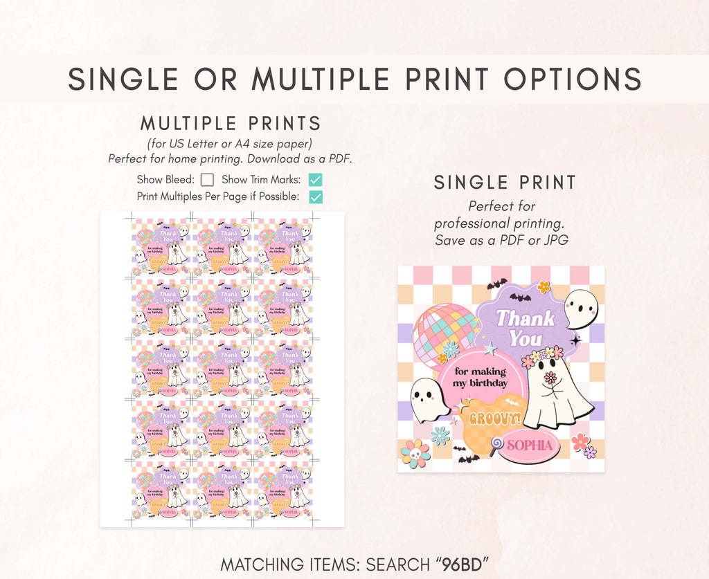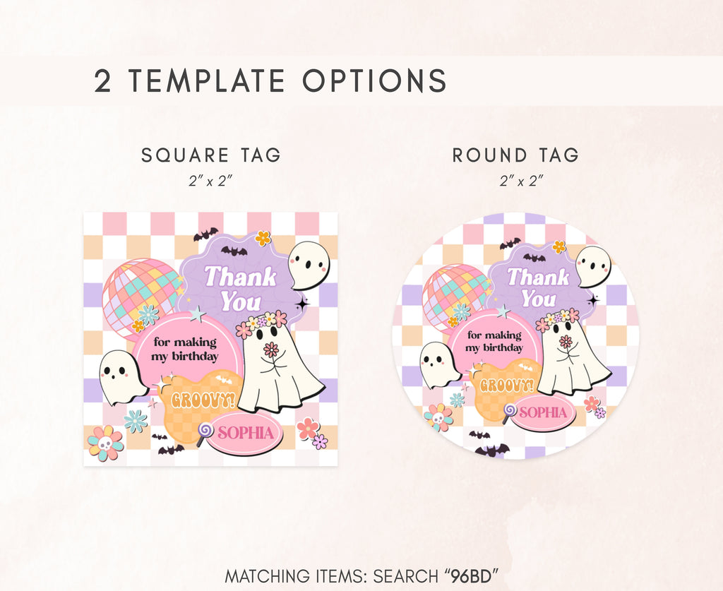 Amplify the charm of your Our Little Boo Birthday Party favors by adding a personal touch with our delightful Cute Ghost Birthday Gift Tags. These Halloween Disco Thank you Tags are the perfect way to express your gratitude to your guests in a special and heartfelt manner.