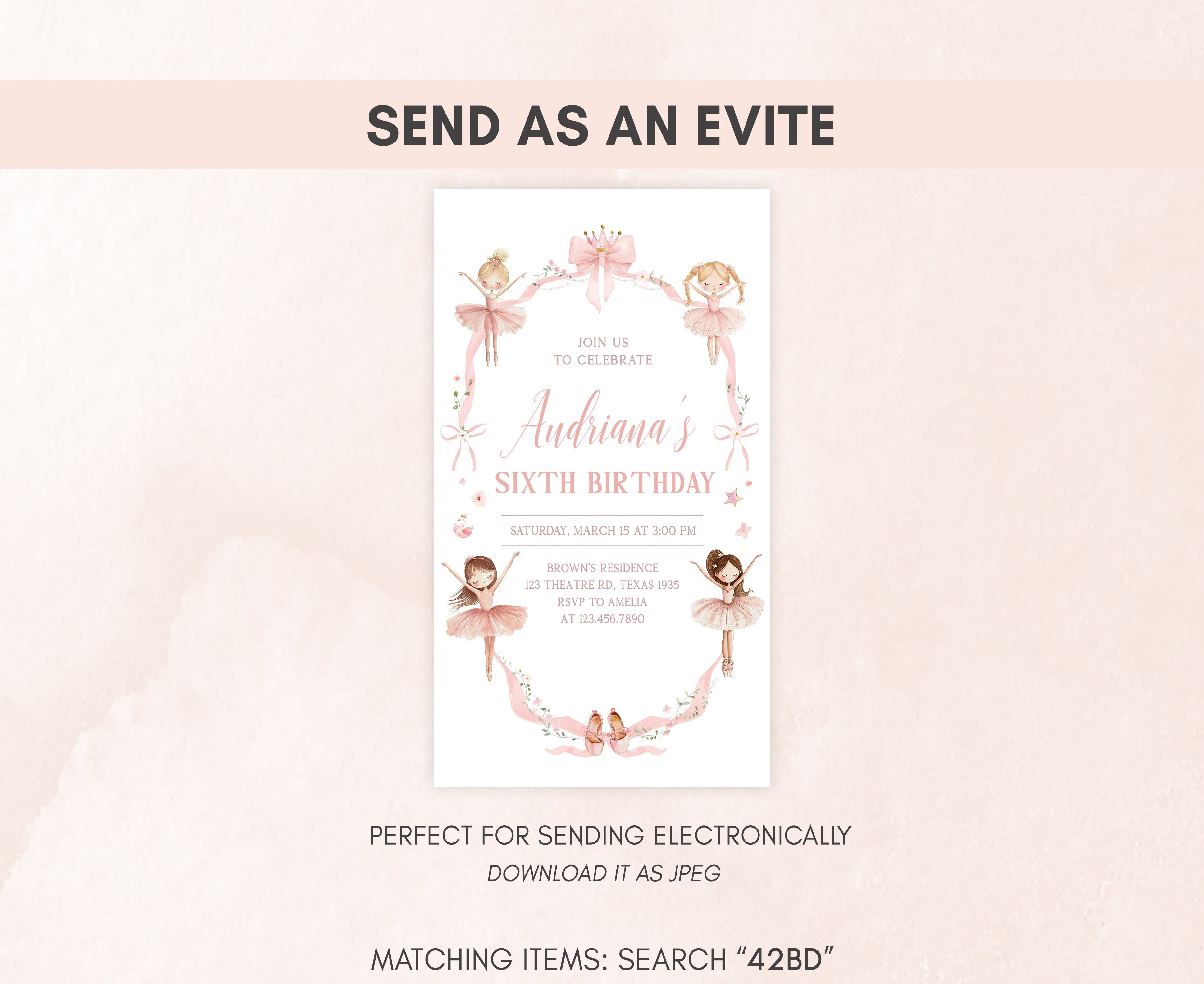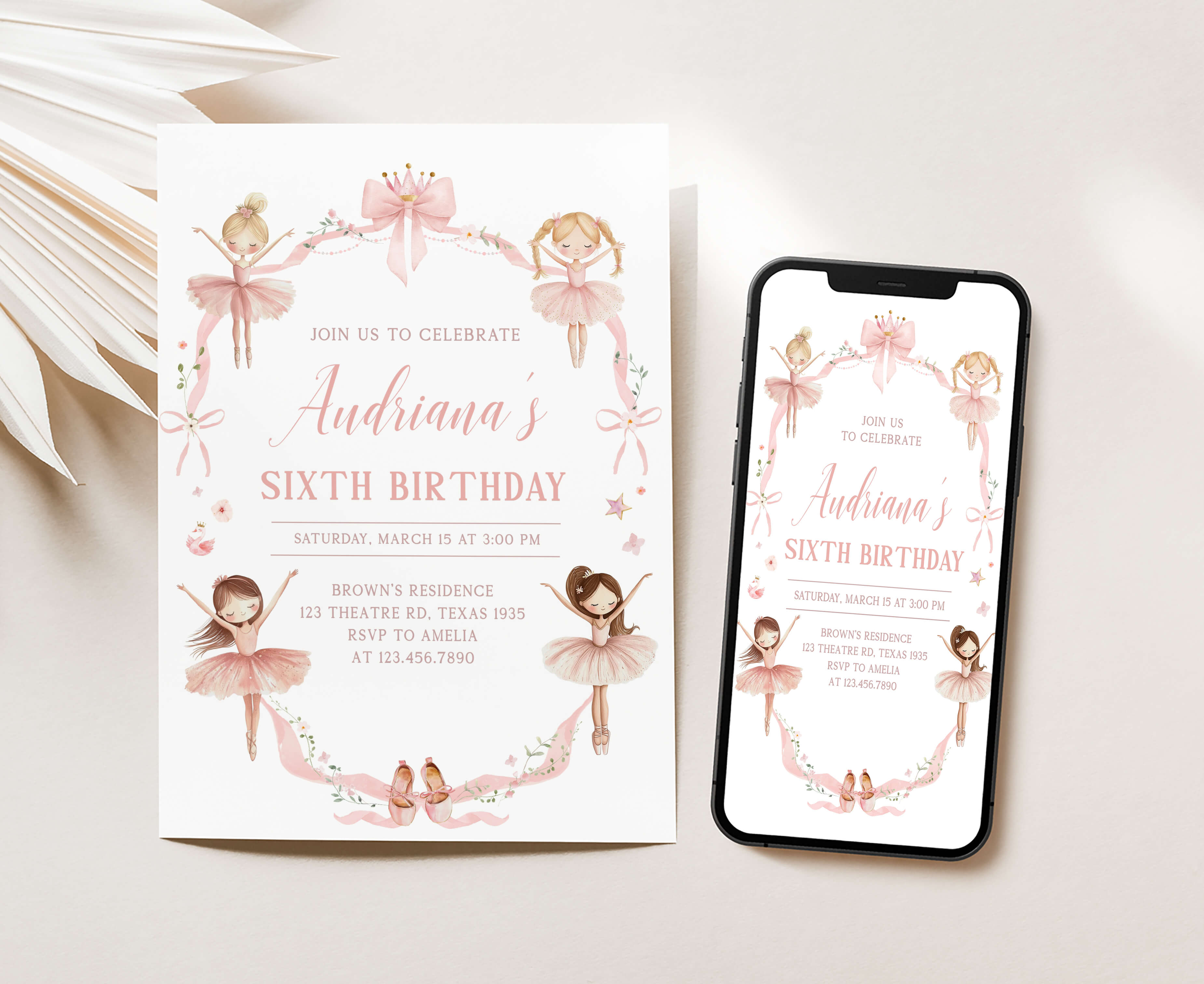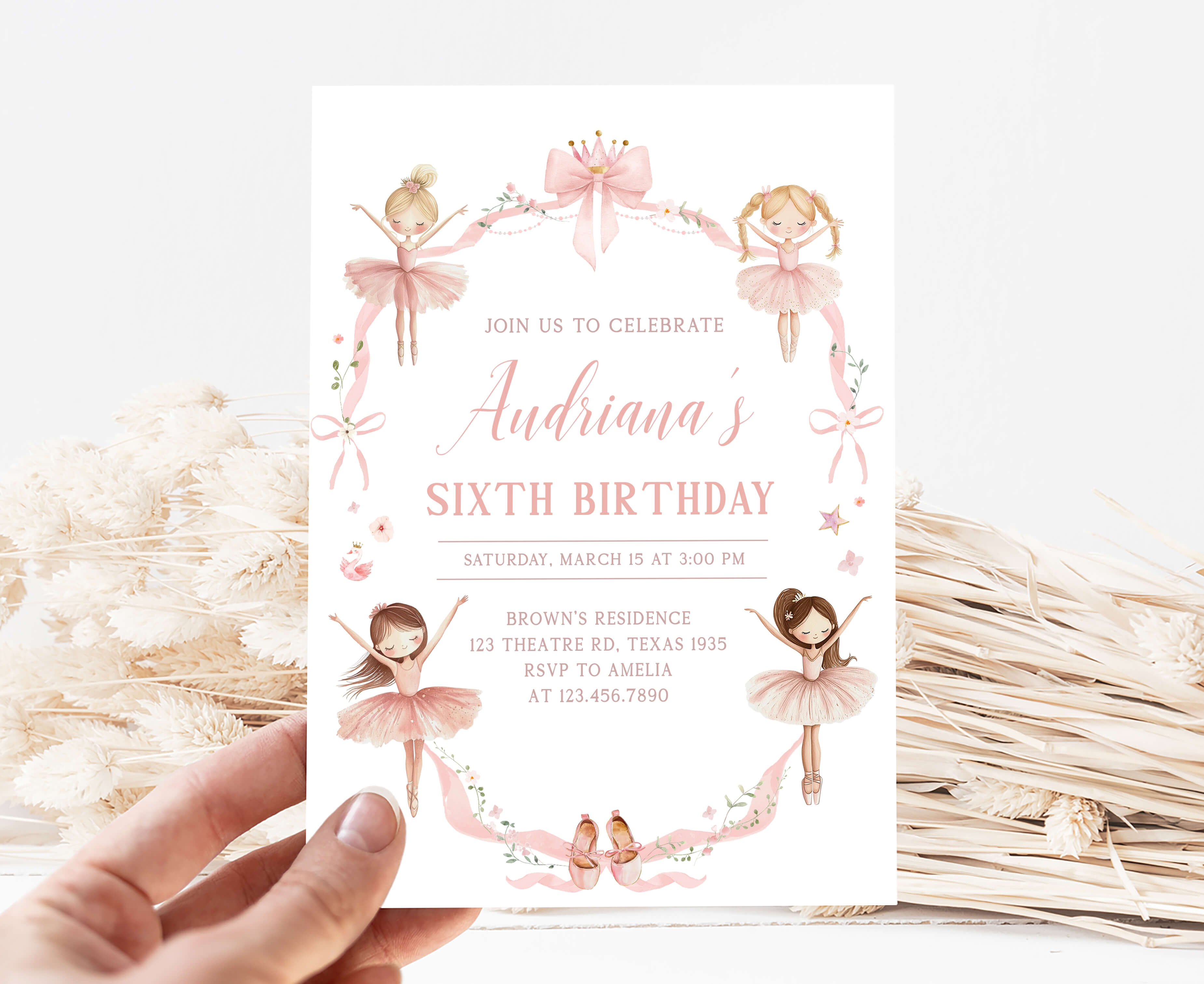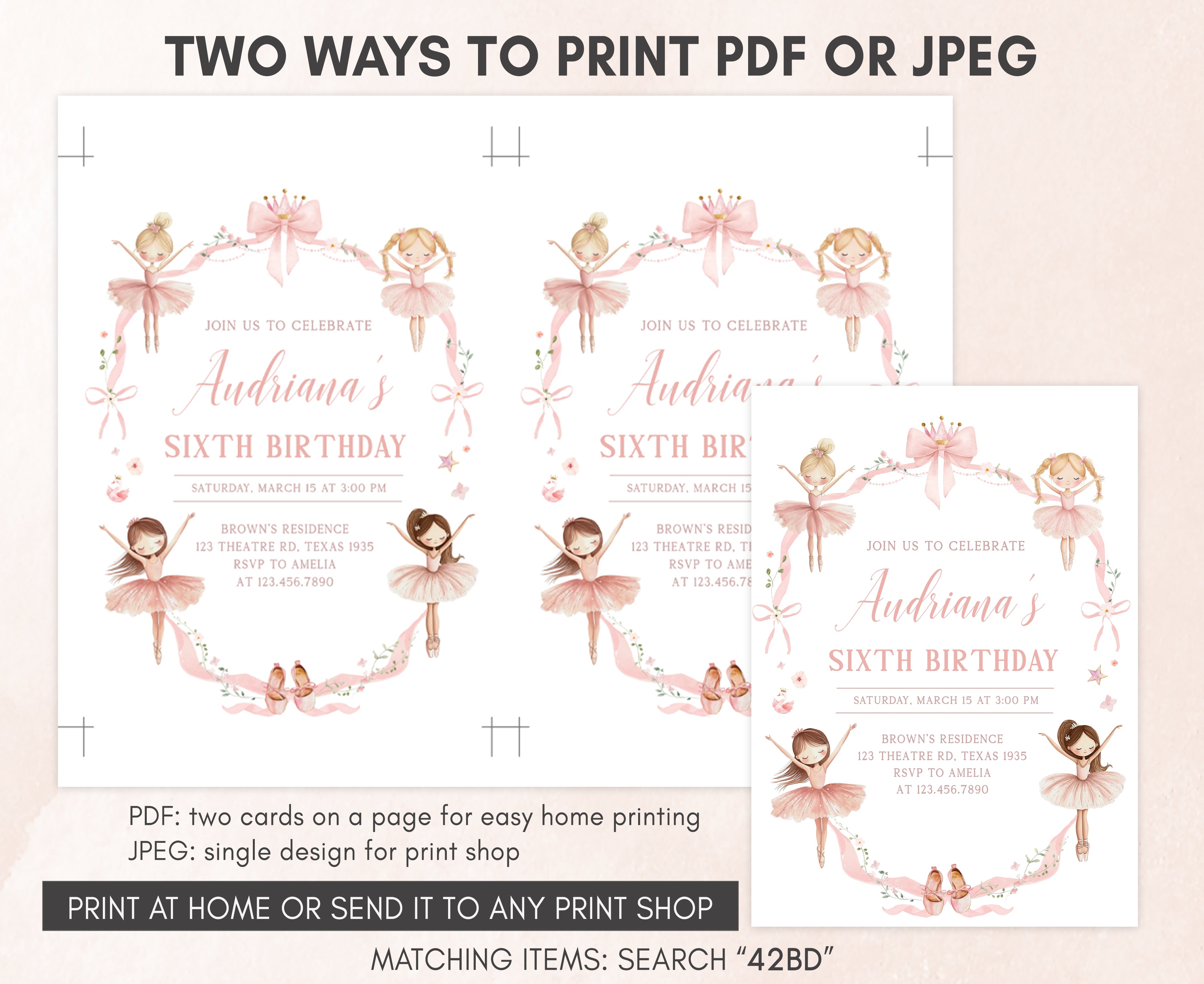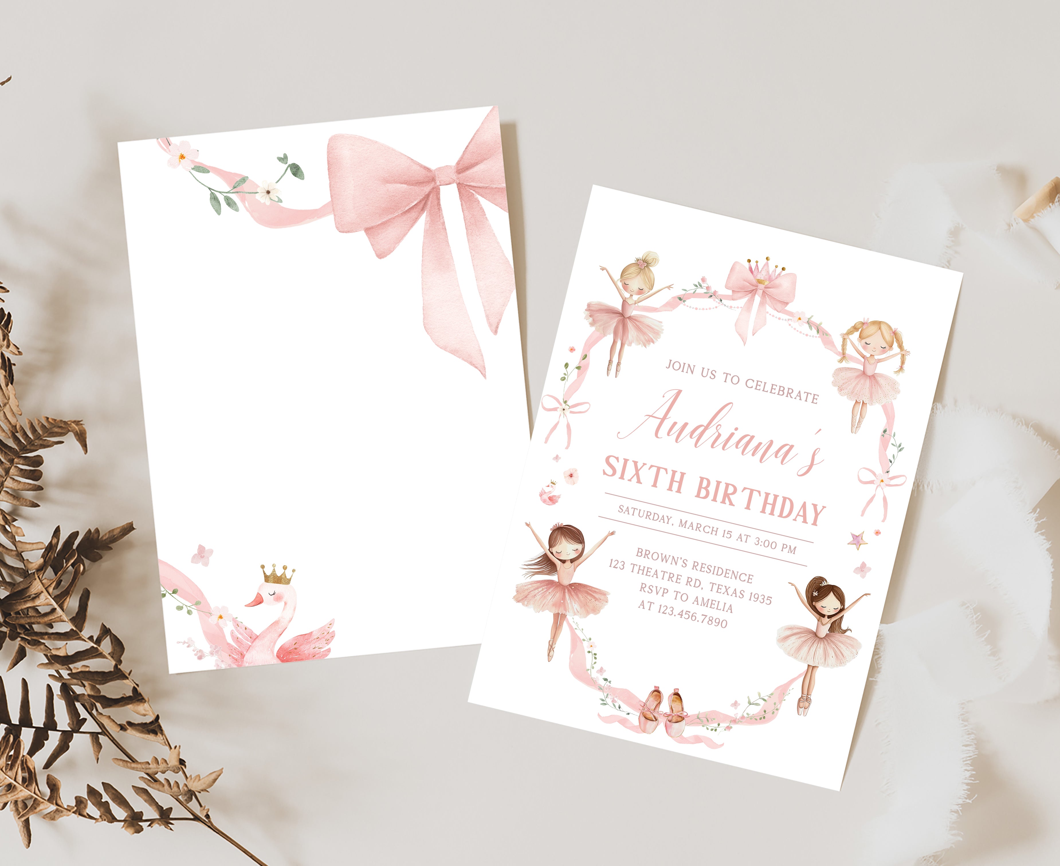 Celebrate with your guests at your Pastel Ribbon Birthday Party using our delightful Ballet Shoes Birthday Invitation. This Girl Bow Tutu Birthday Invite is the ideal choice to tone for a Ballet-themed celebration.