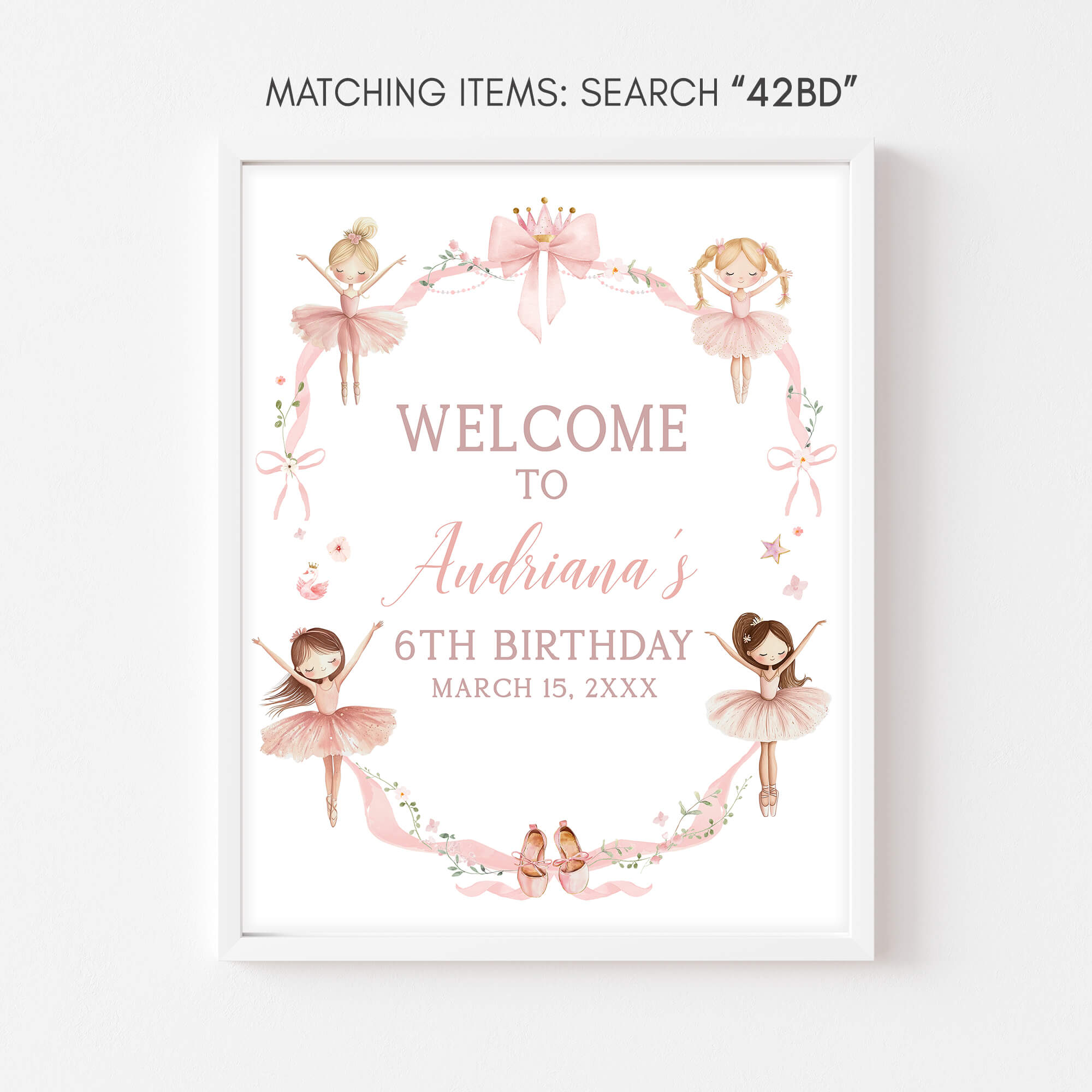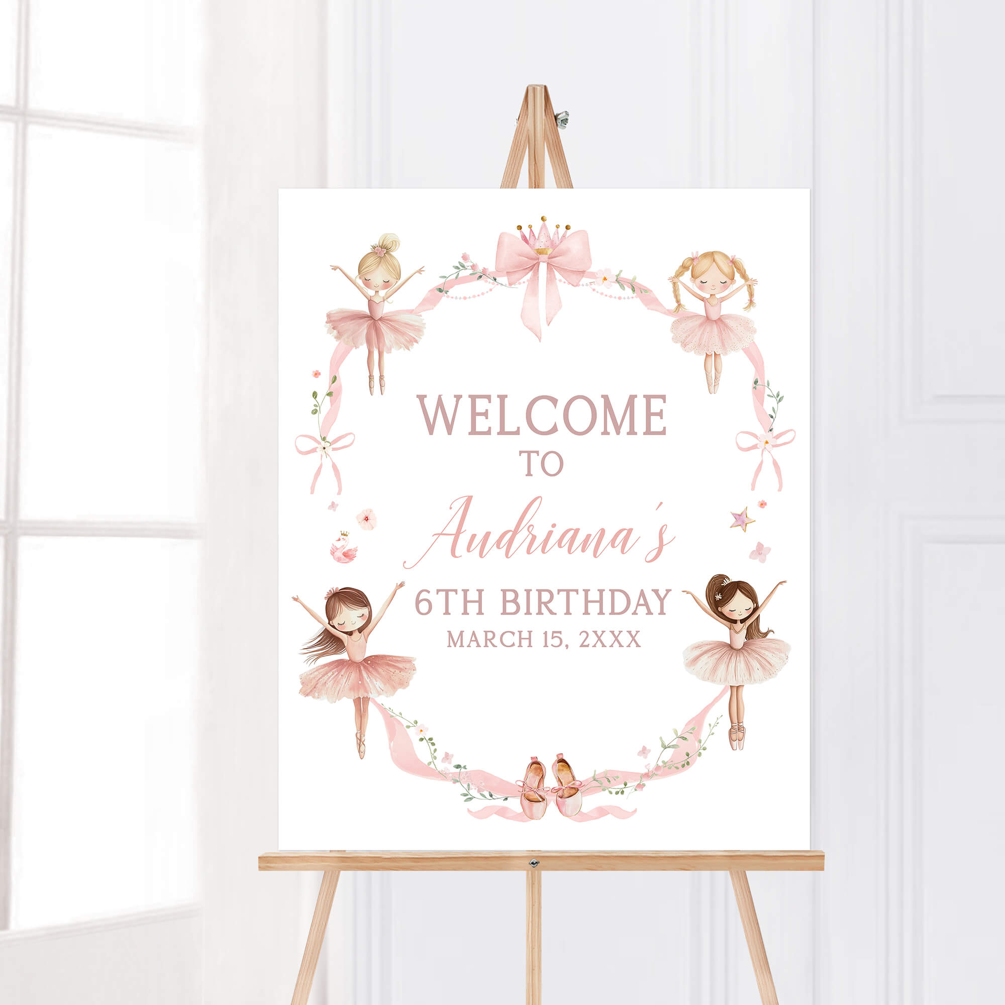 Editable Pink Ballerina Birthday Party Welcome Sign