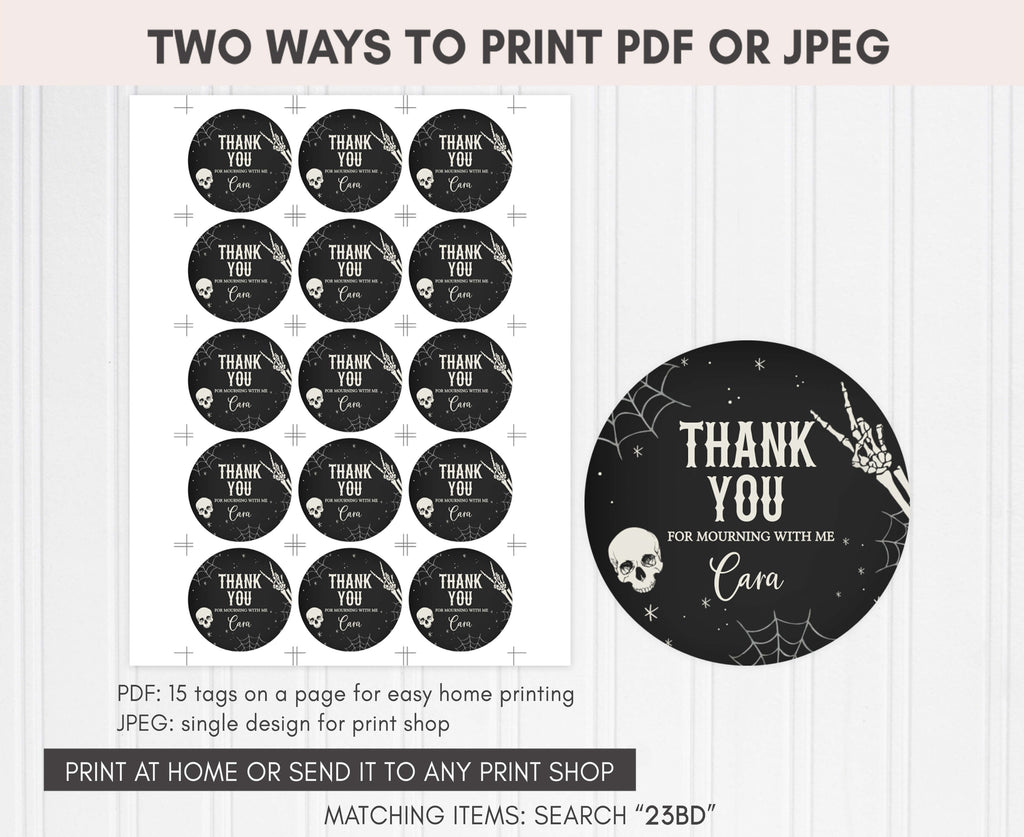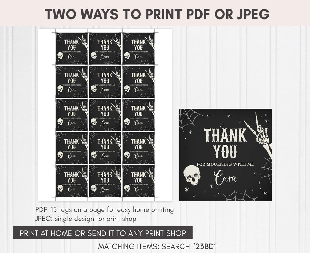 Amplify the charm of your Halloween Birthday Party favors by adding a personal touch with our delightful Black Gothic Birthday Gift Tags. These Adult Halloween Thank you Tags are the perfect way to express your gratitude to your guests in a special and heartfelt manner.