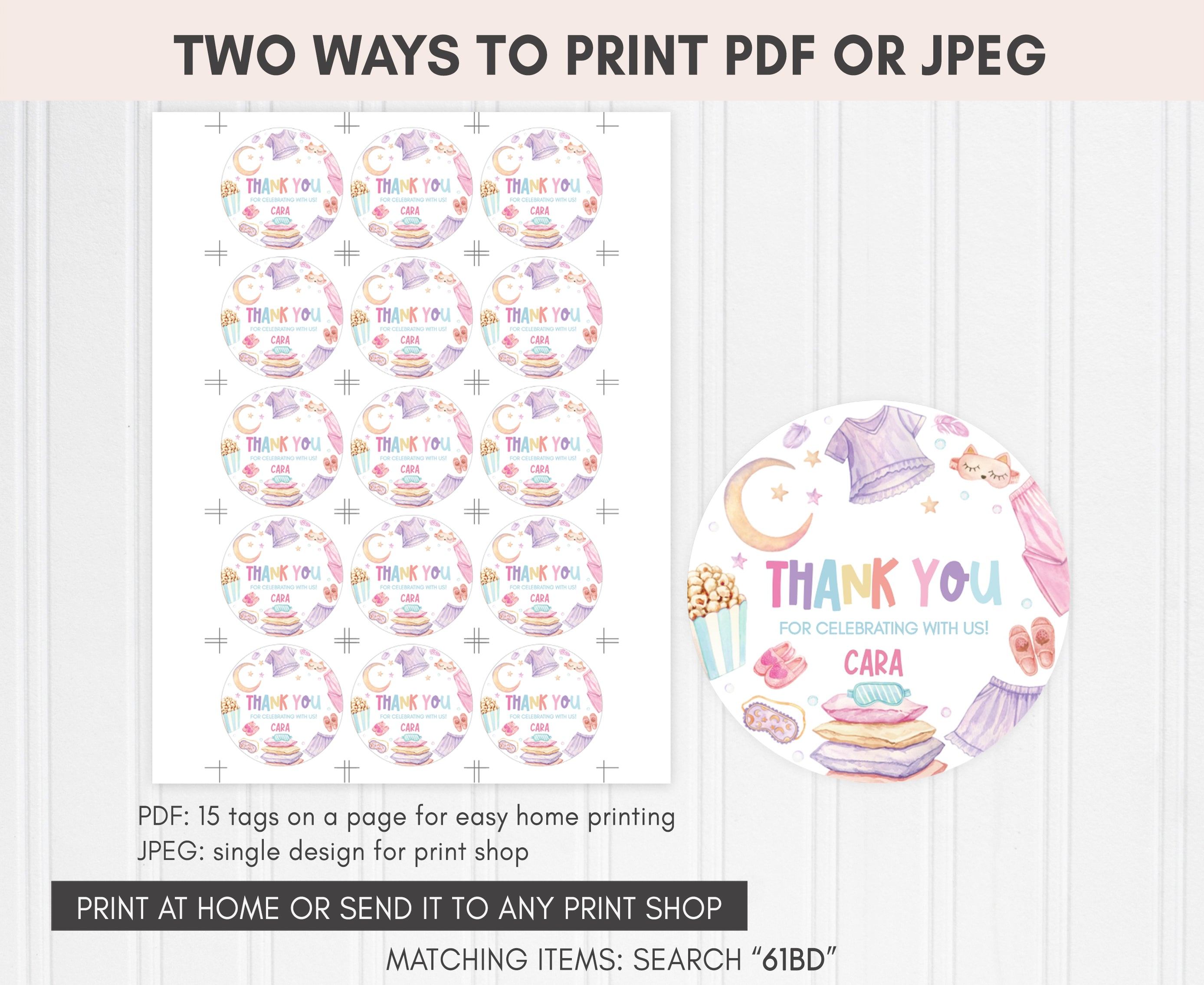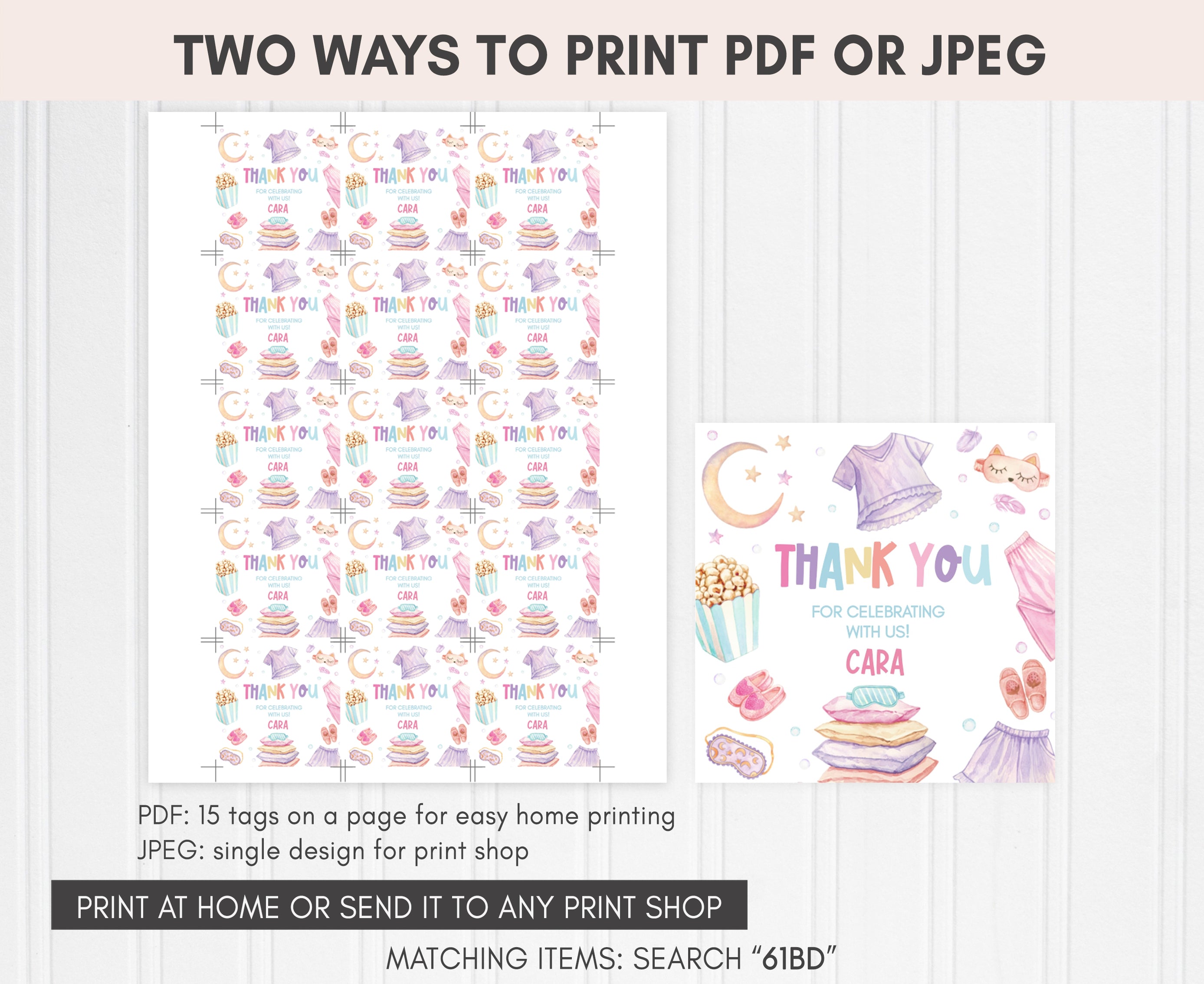 Amplify the charm of your Girls Night Birthday Party favors by adding a personal touch with our delightful Pajama Sleepover Birthday Gift Tags. These Popcorn Slumber Party Thank you Tags are the perfect way to express your gratitude to your guests in a special and heartfelt manner.