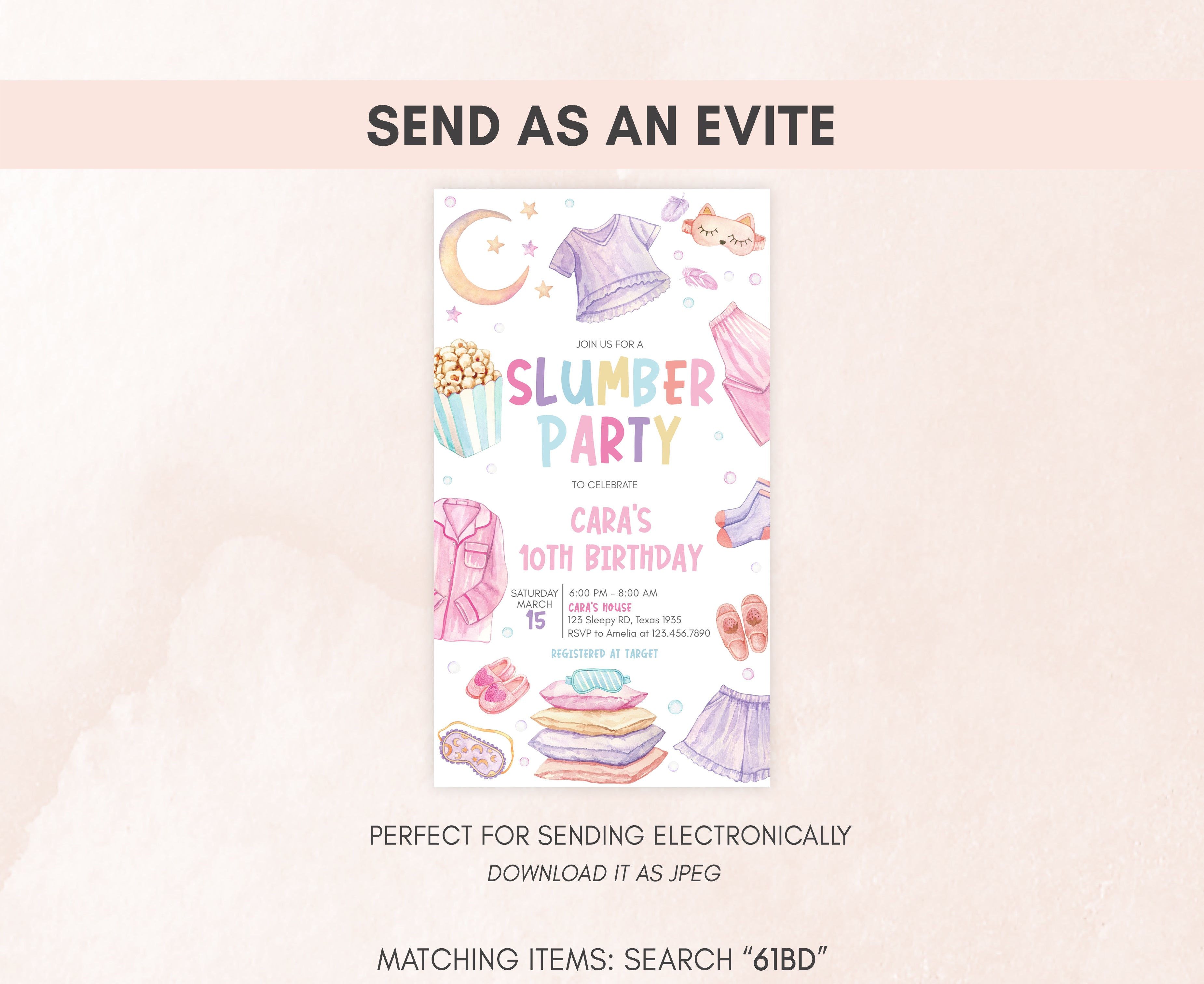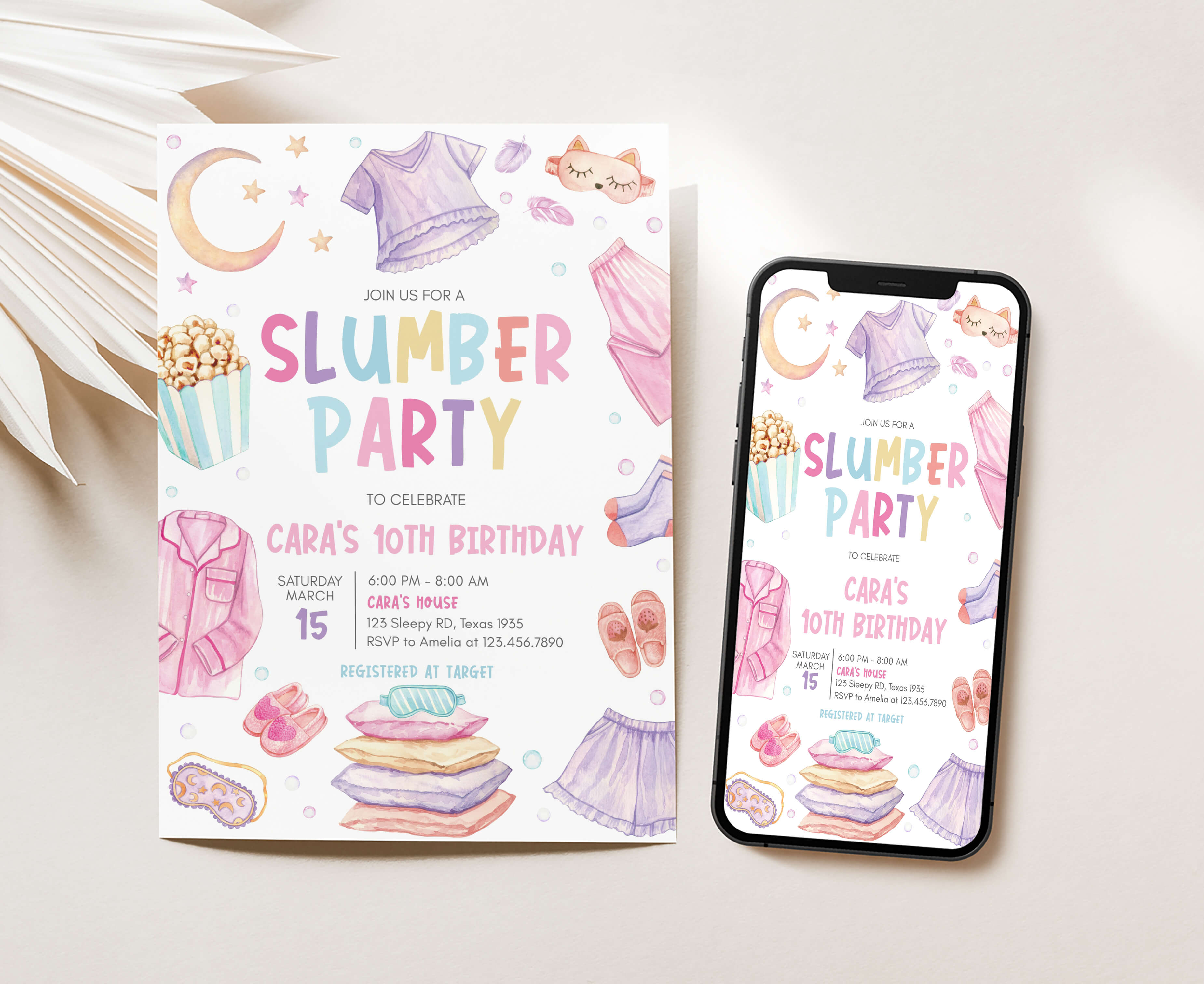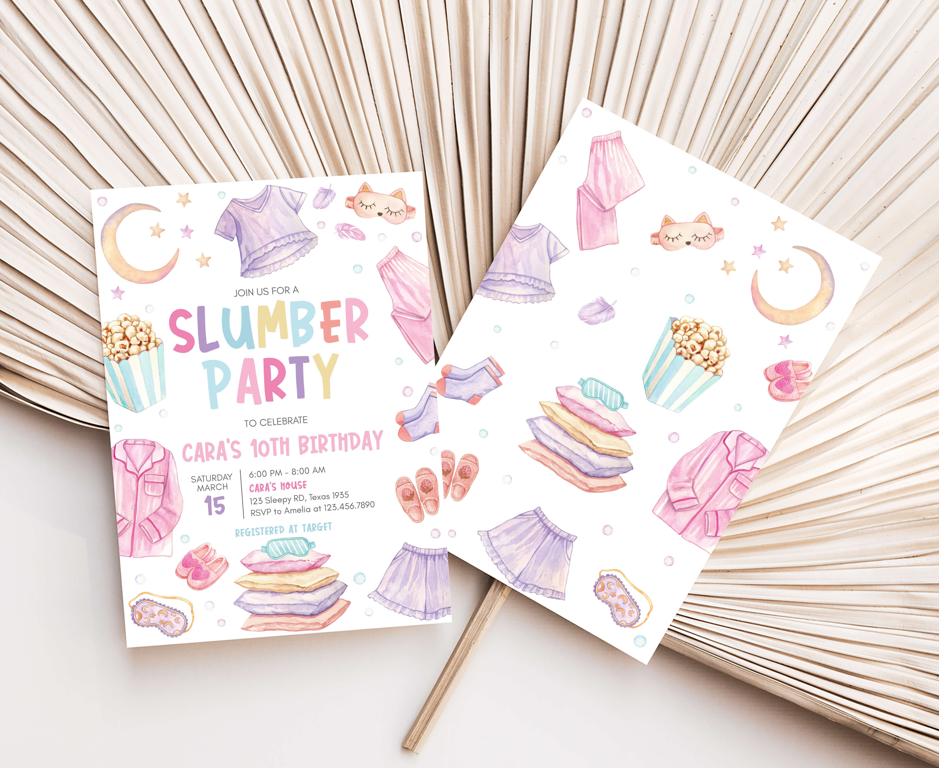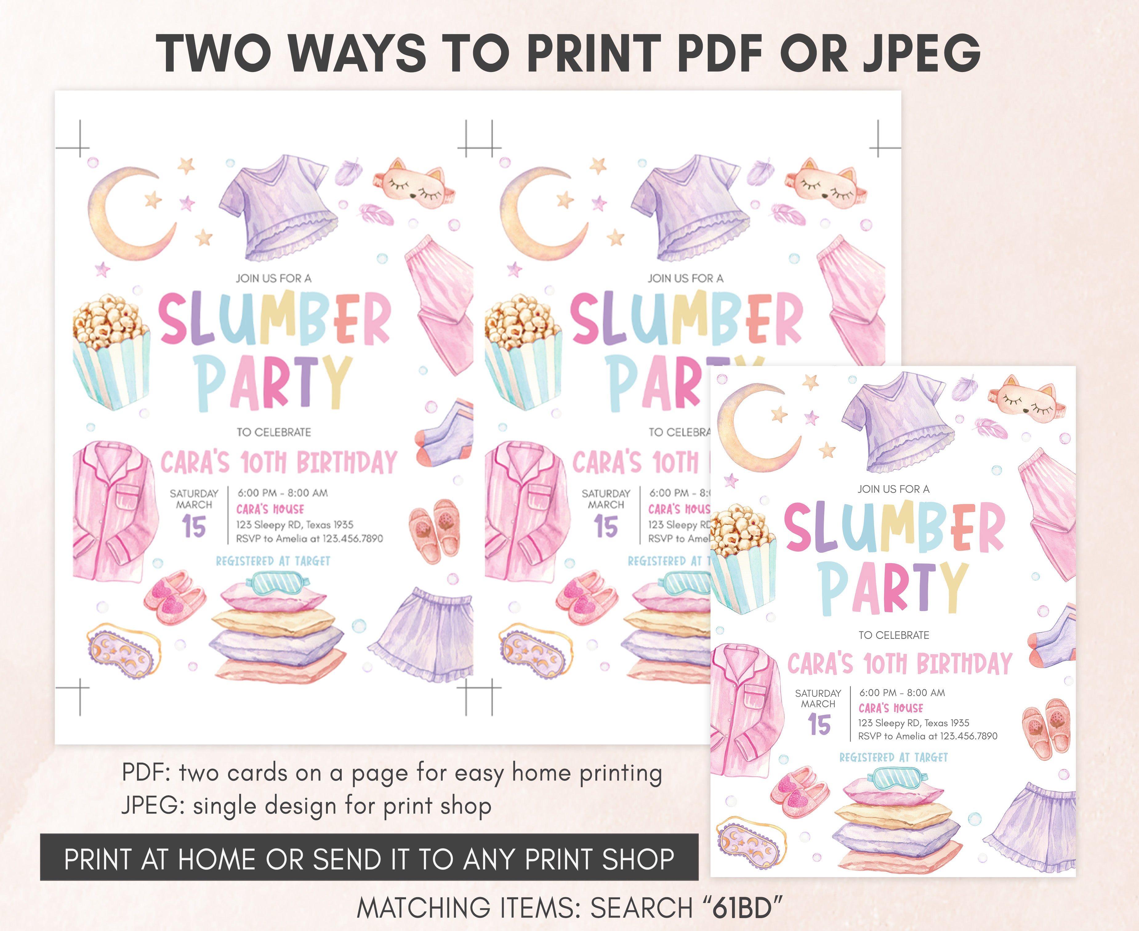 Celebrate with your guests at your Girls Night Birthday Party using our delightful Pajama Sleepover Birthday Invitation. This Popcorn Slumber Party Birthday Invite is the ideal choice to tone for a Pajama-themed celebration.