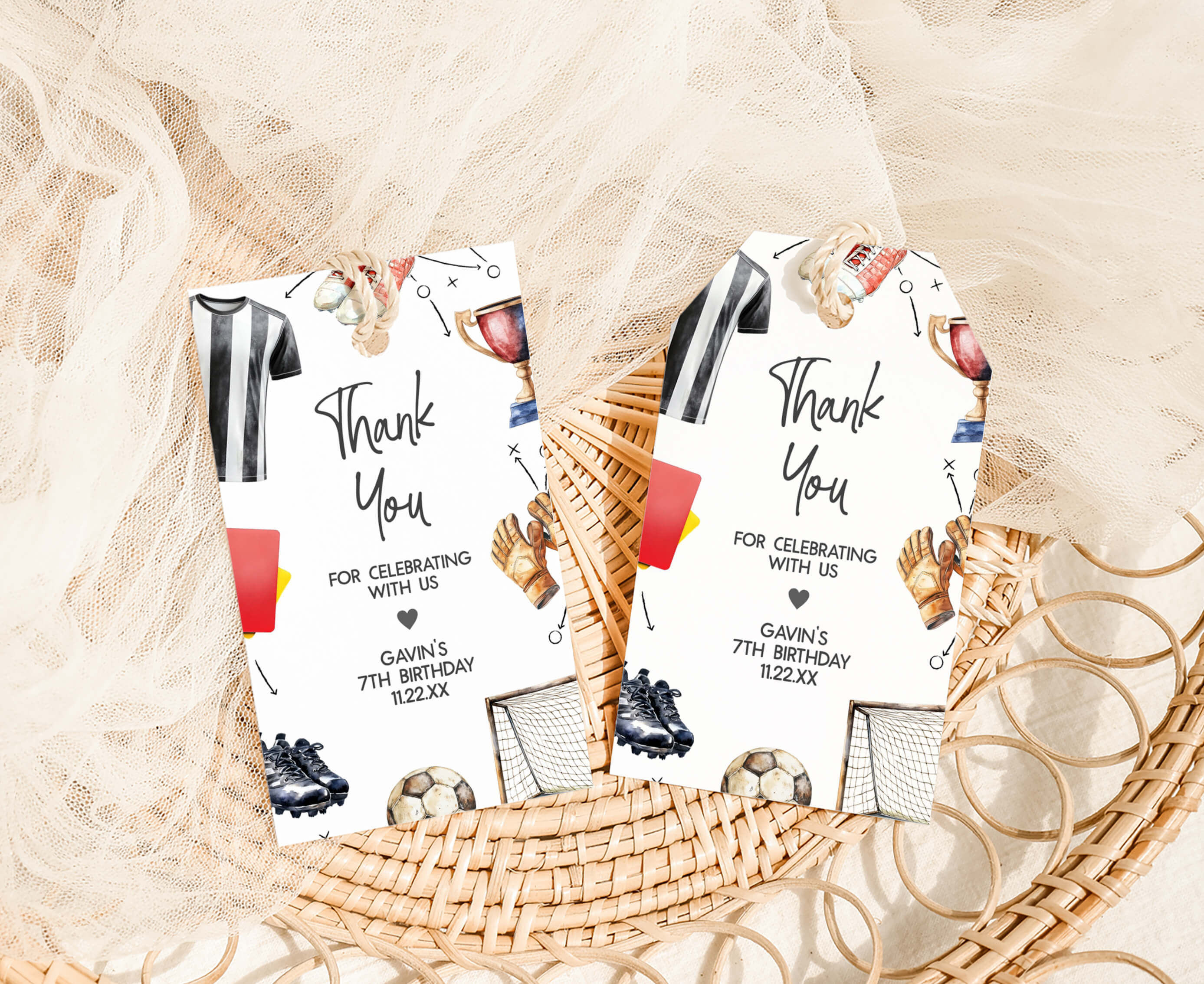 Amplify the charm of your Sports Birthday Party favors by adding a personal touch with our delightful Boy Football Field Birthday Gift Tags. These Game Match Thank you Tags are the perfect way to express your gratitude to your guests in a special and heartfelt manner.