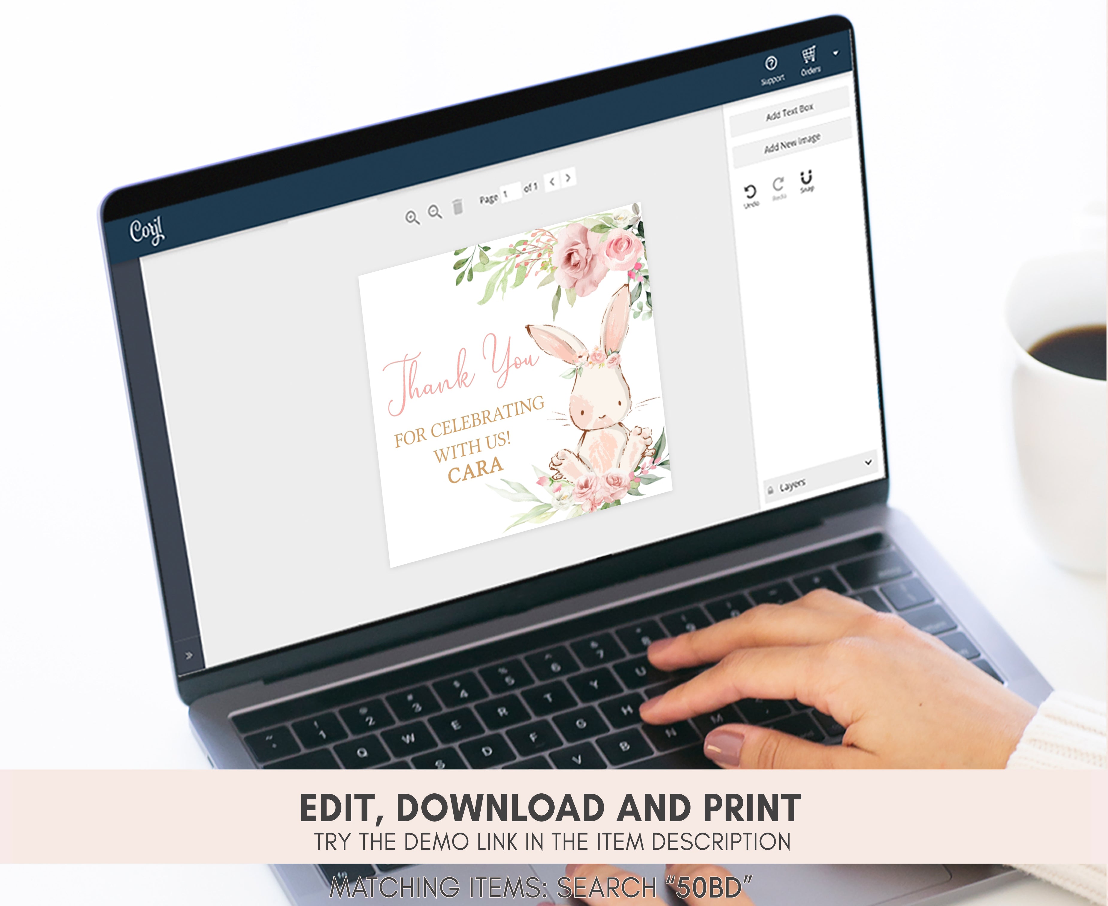Amplify the charm of your Girl Spring Birthday Party favors by adding a personal touch with our delightful Floral Garden Bunny Birthday Gift Tags. These Pink Boho Rabbit Thank you Tags are the perfect way to express your gratitude to your guests in a special and heartfelt manner.