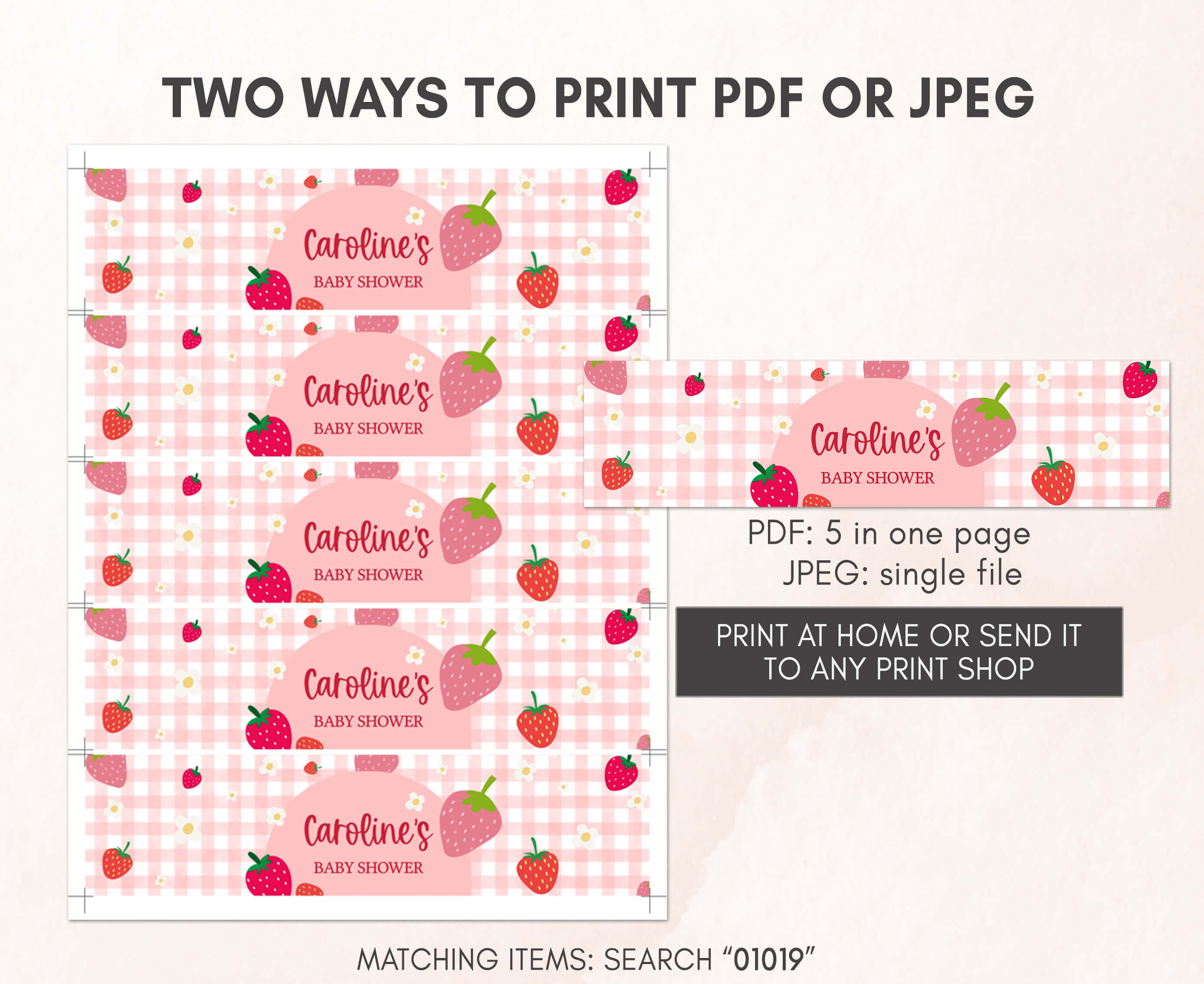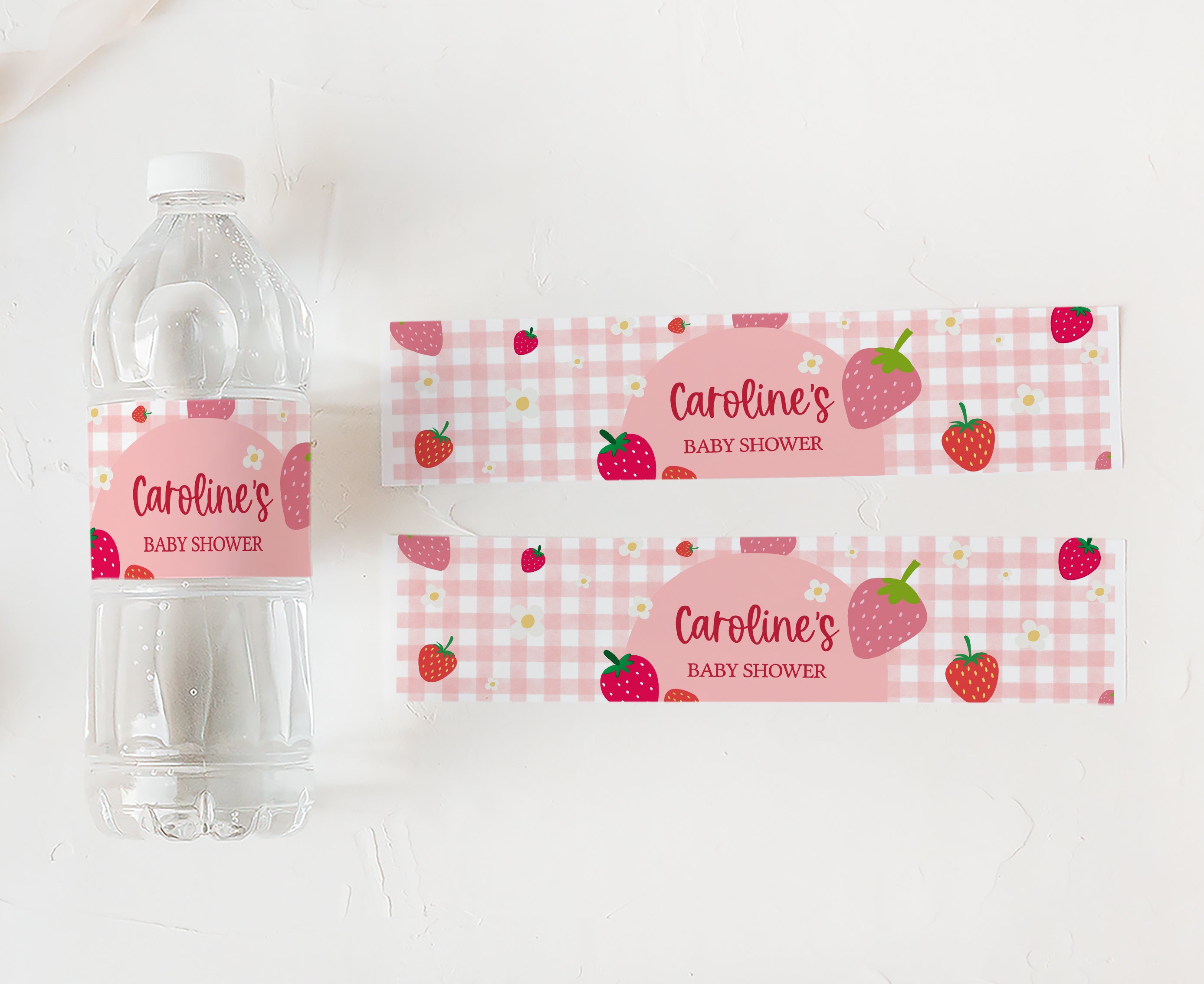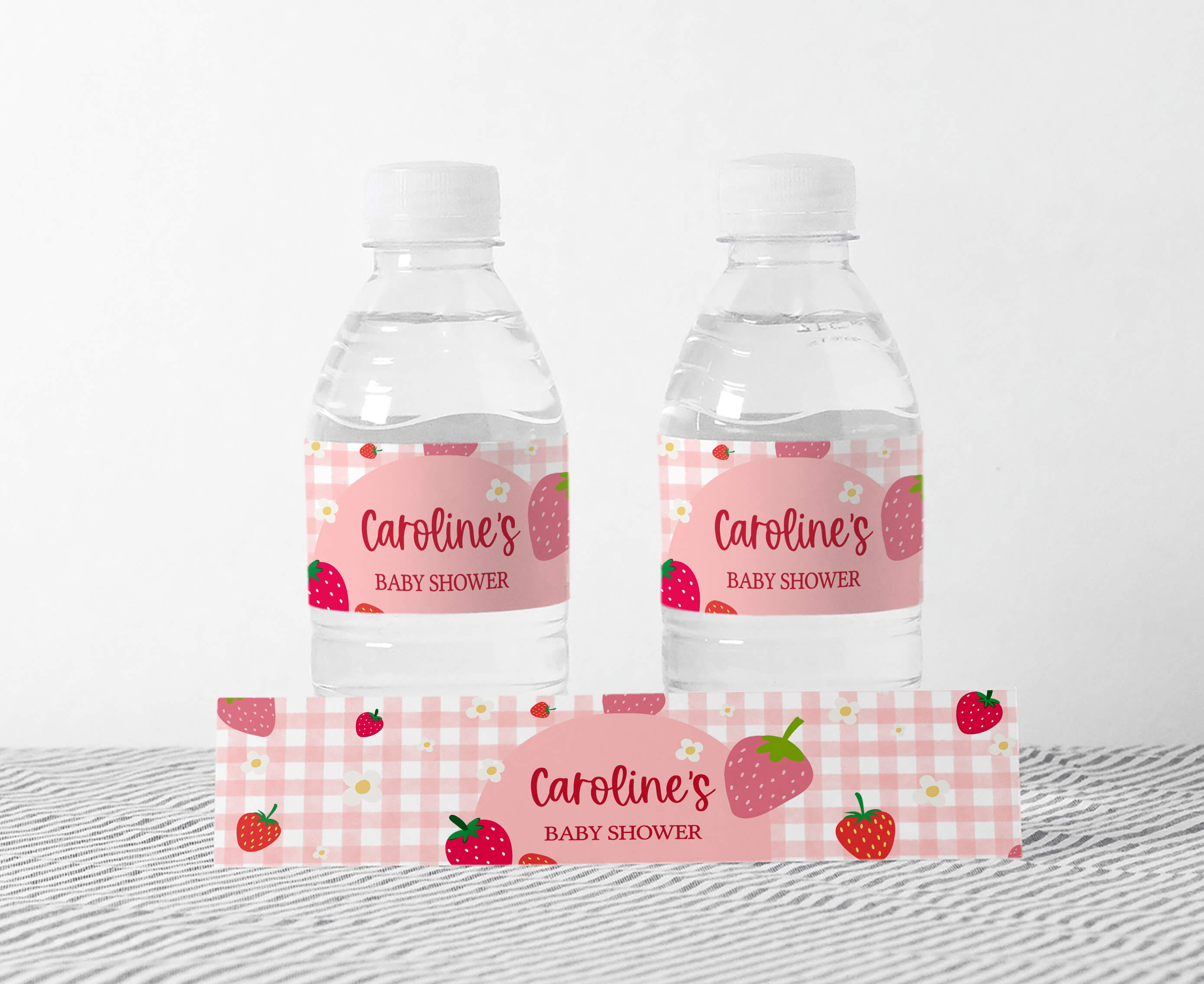 Sprinkle a touch of sweetness onto your Pink Gingham Strawberry Baby Shower Party by using our adorable Berry Sweet on the Way Water Bottle Labels. These delightful Spring Summer Strawberry Water Wraps will not only make staying hydrated a pleasure but also keep your guests feeling refreshed as they join in the celebration of this joyous occasion.