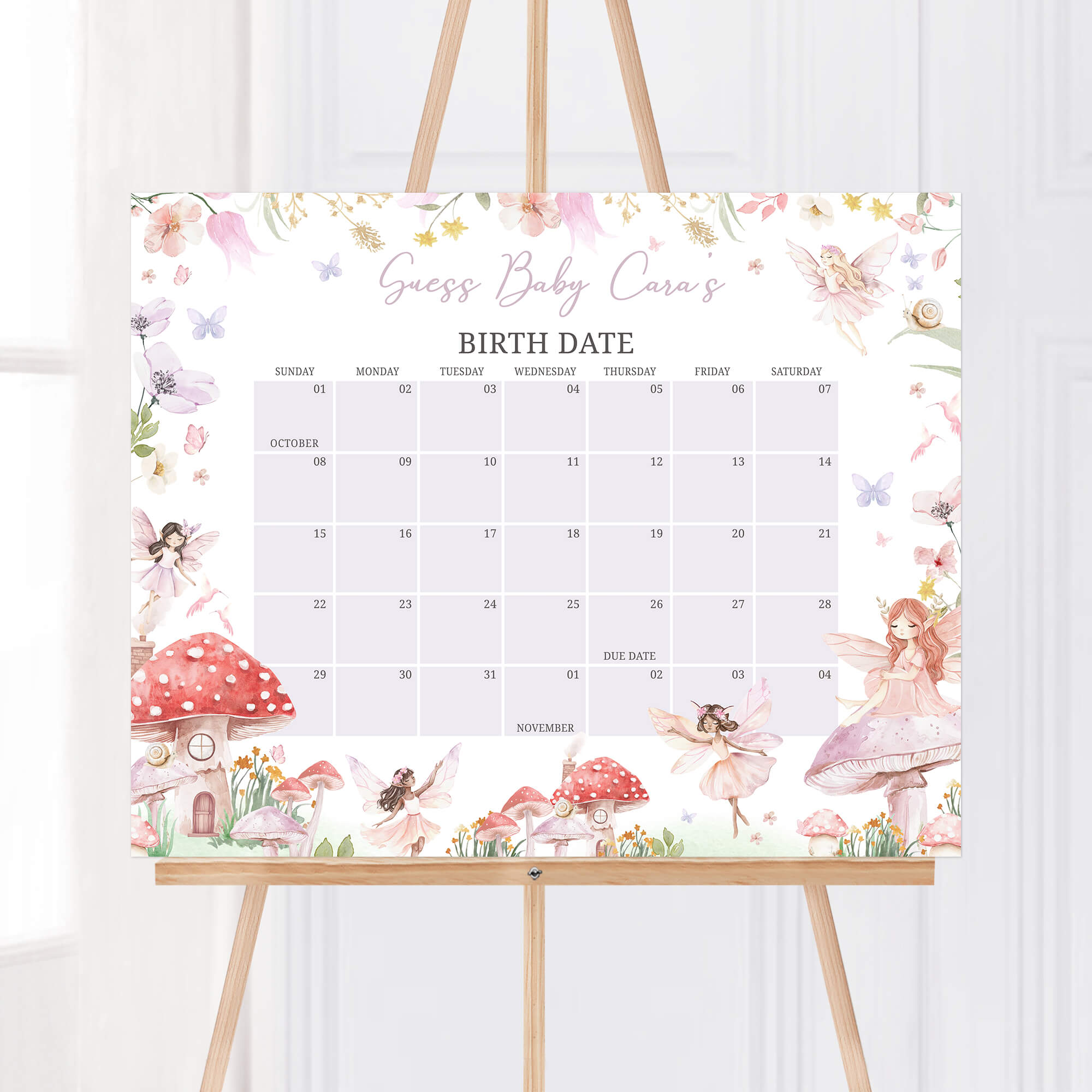 Partake in the excitement of your Enchanted Garden Baby Shower Party with our A Little Fairy is on Her Way Due Date Game! Embrace the adorable spirit of the Floral Forest Fairy Baby Shower party as guests make their predictions for the due date, coming together to share in the anticipation of the upcoming arrival. Complete the joy and fun with this Spring Baby Shower Birthday Predictions.
