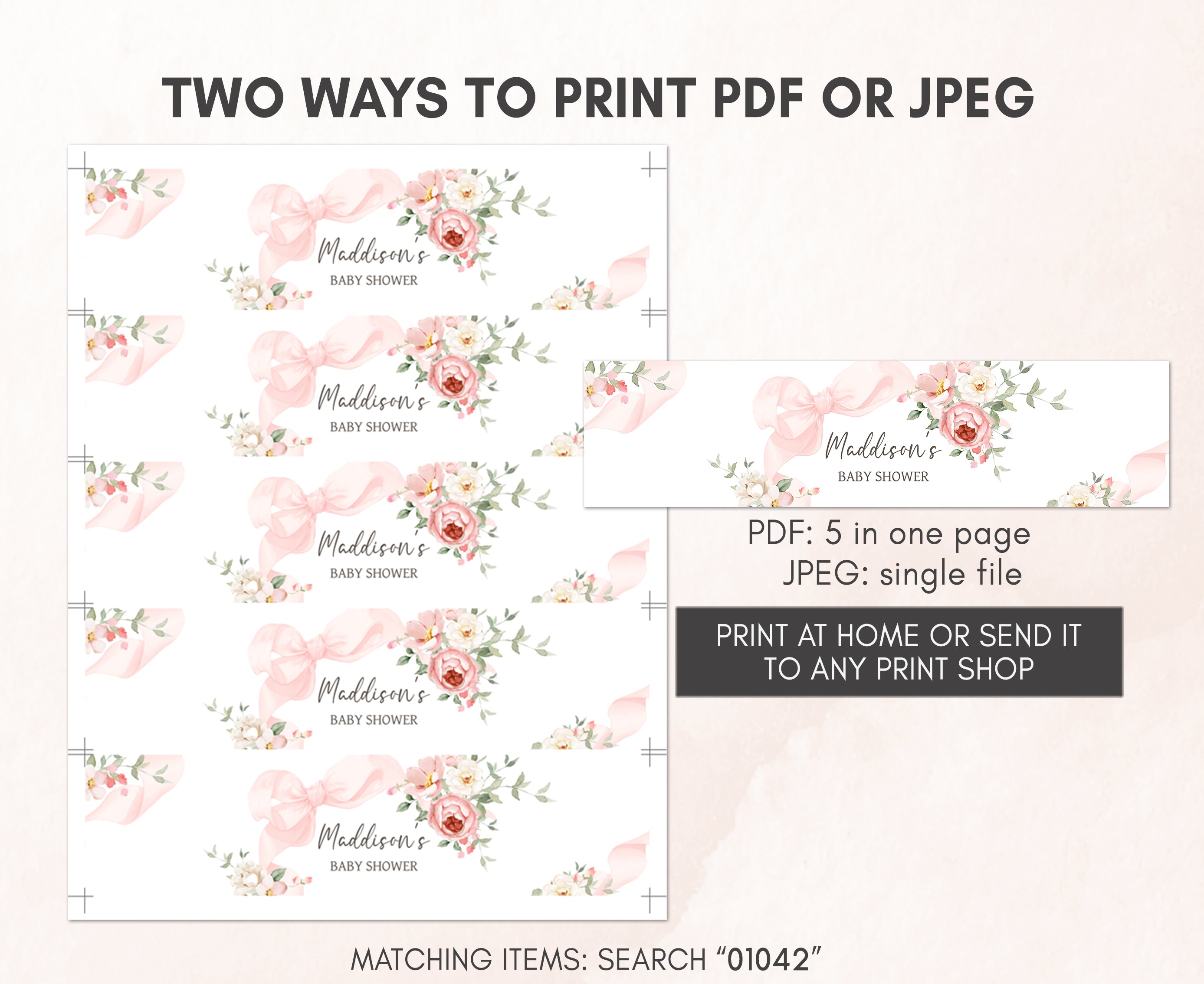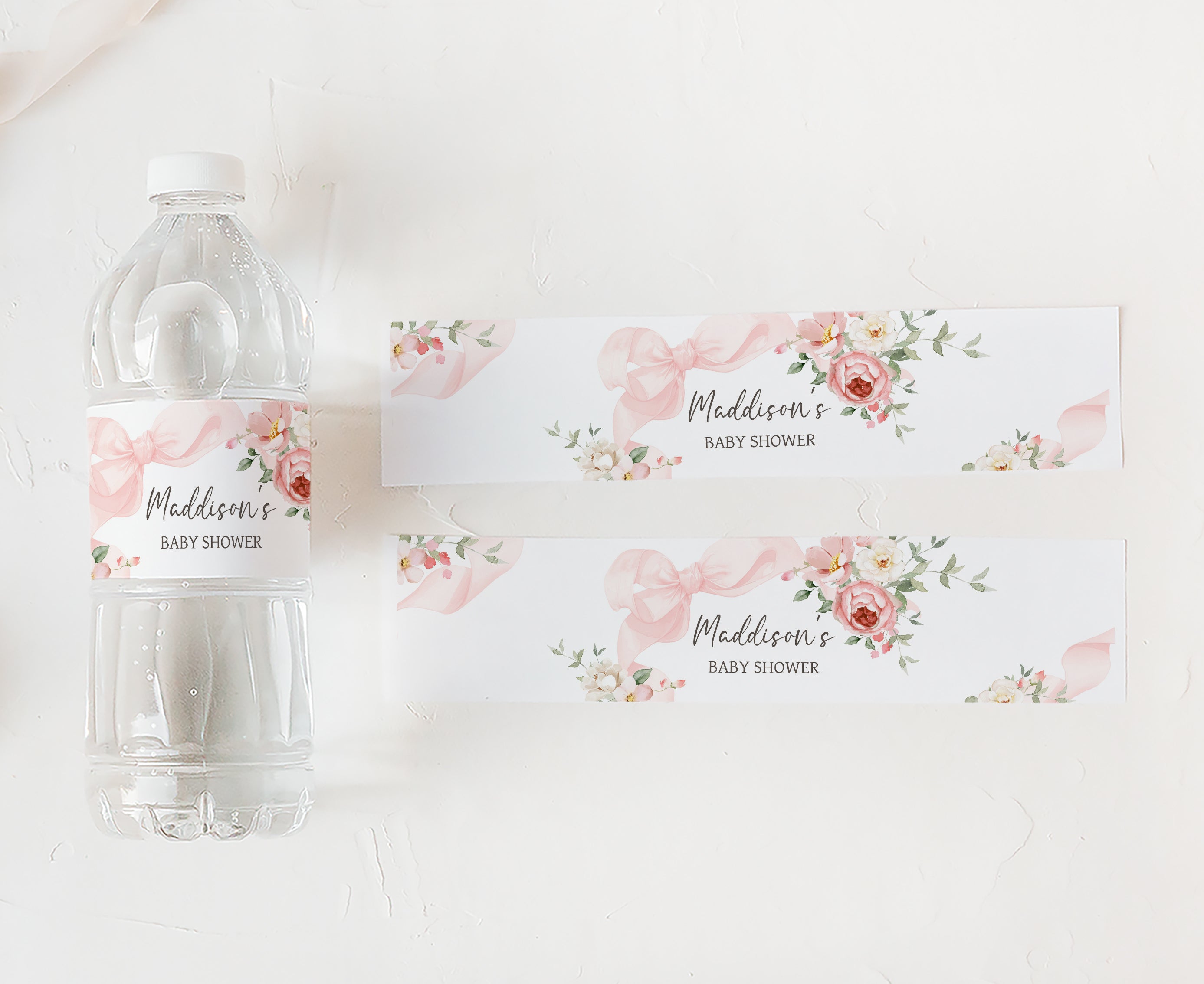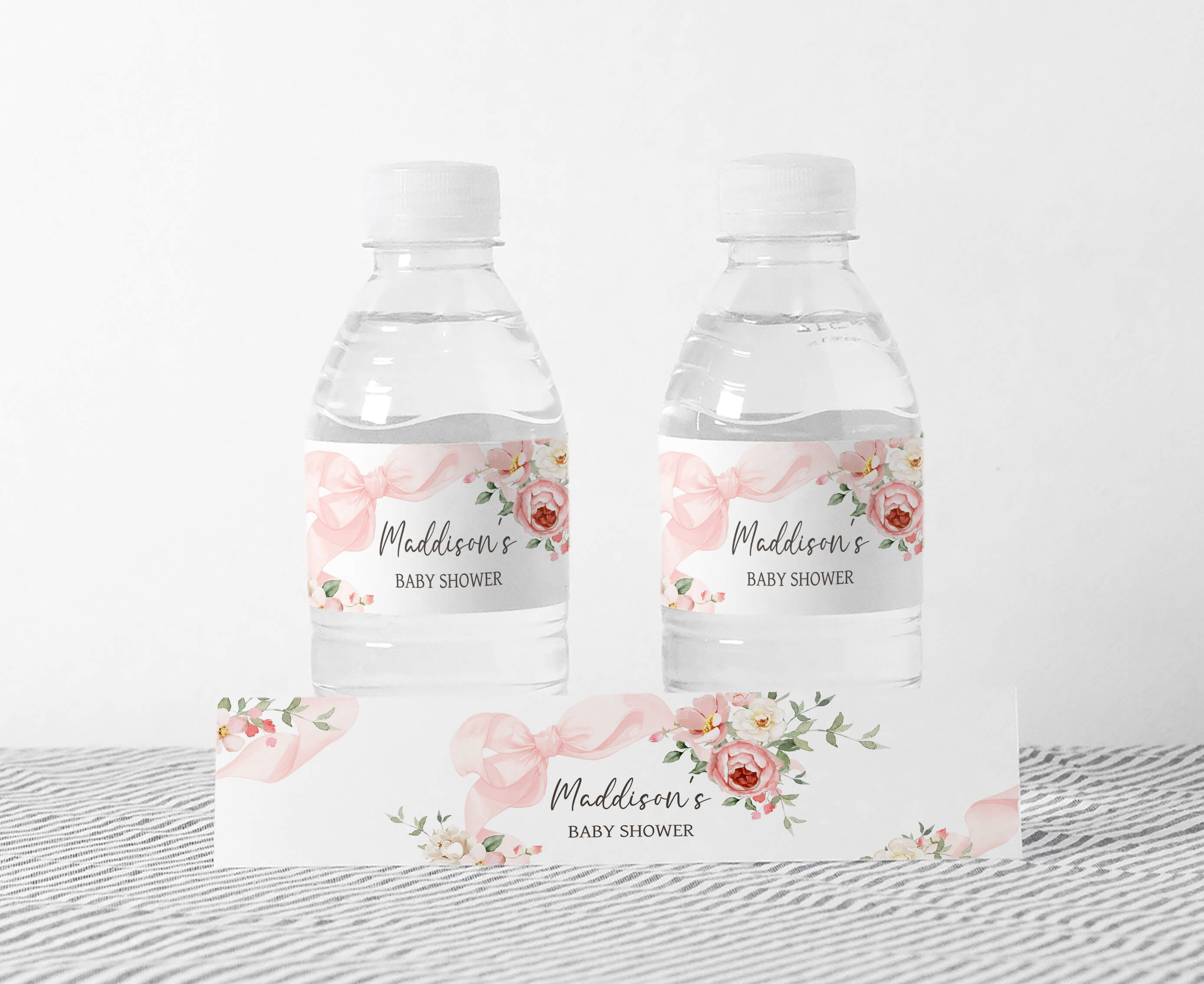 Sprinkle a touch of sweetness onto your Girl Flowers Baby Shower Party by using our adorable Pastel Coquette Ribbon Water Bottle Labels. These delightful Pink Baby in Bloom Water Wraps will not only make staying hydrated a pleasure but also keep your guests feeling refreshed as they join in the celebration of this joyous occasion.