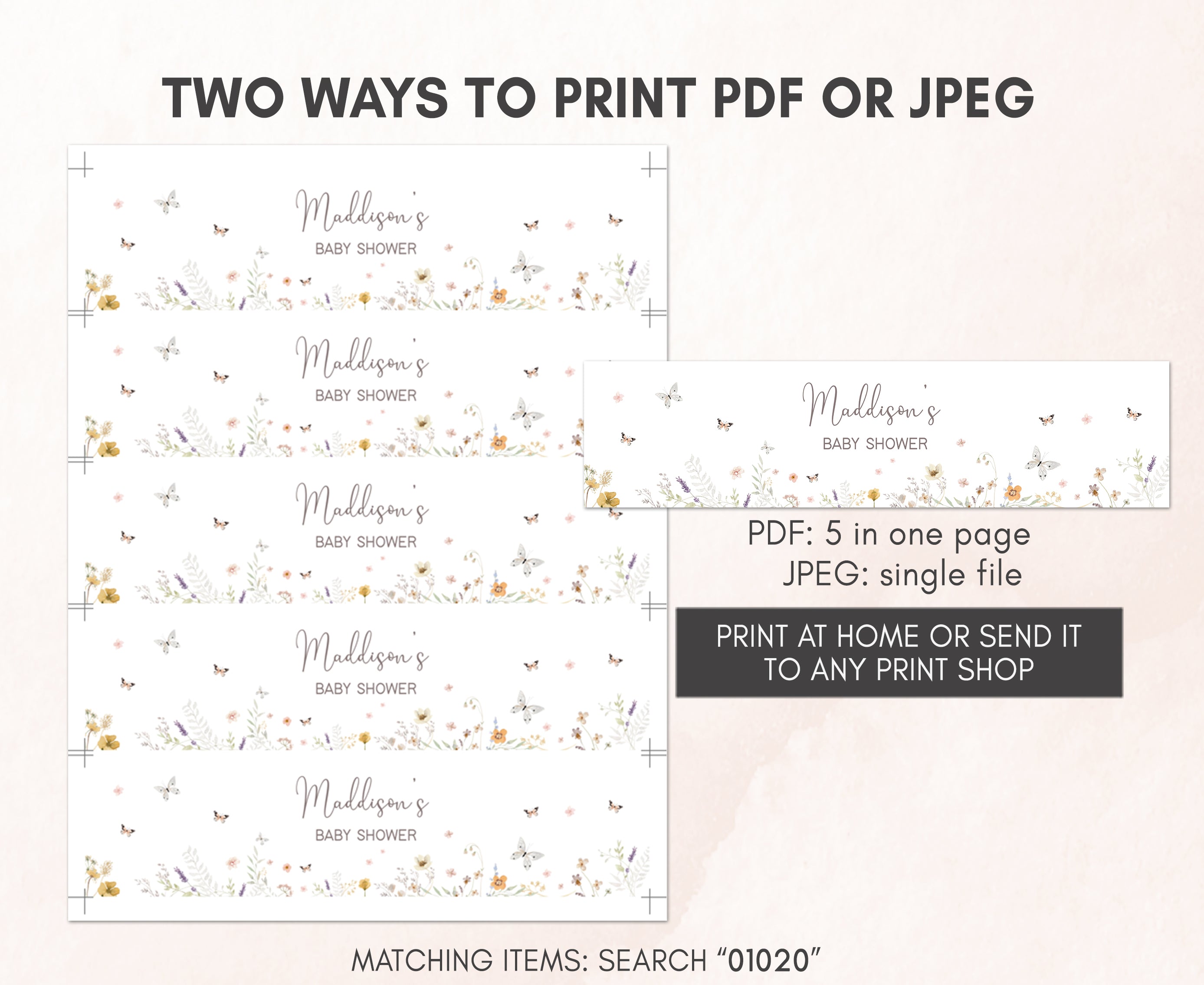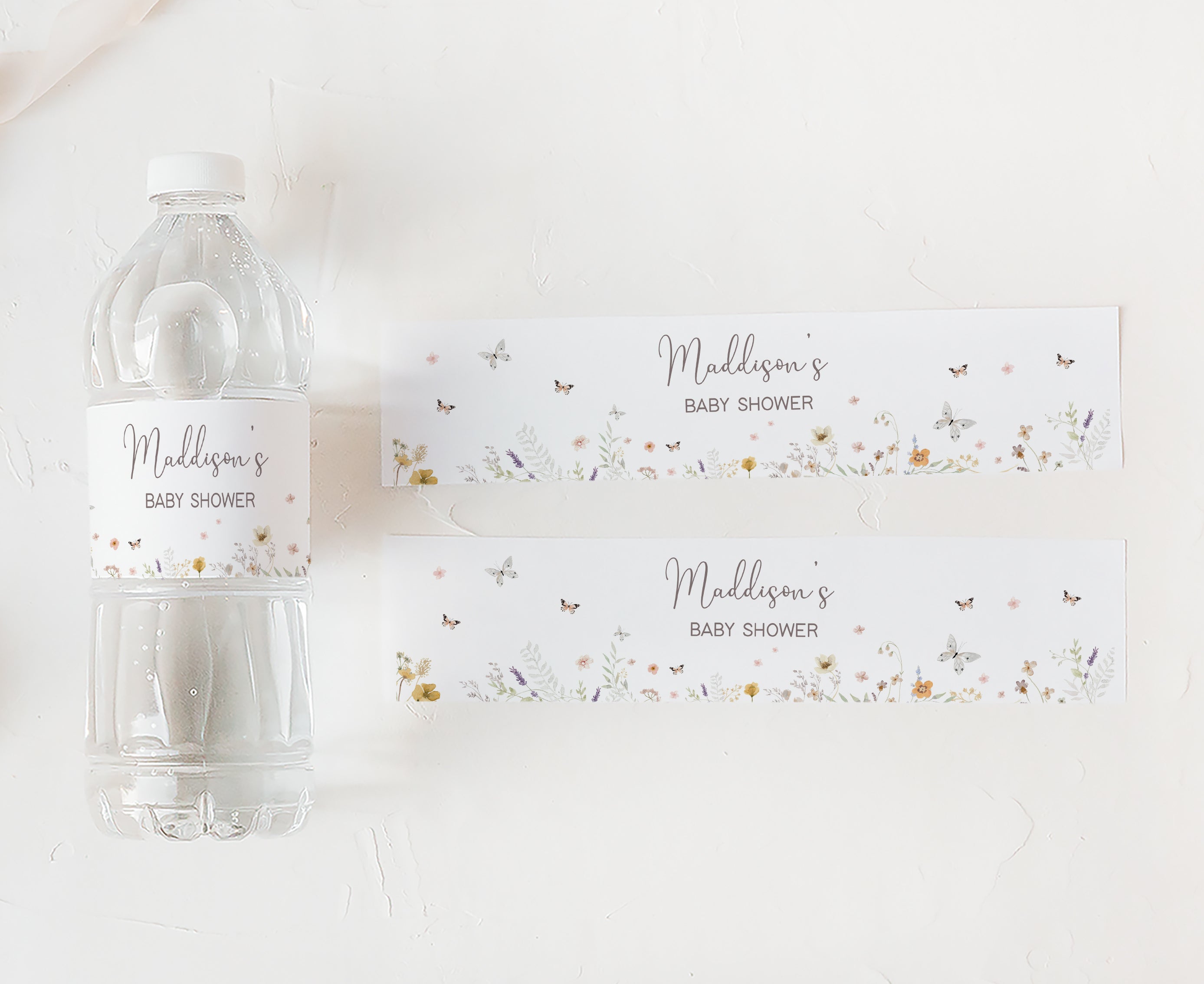 Sprinkle a touch of sweetness onto your Boho Wildflower Baby Shower Party by using our adorable Spring Butterfly Floral Water Bottle Labels. These delightful Little Wildflower on the Way Water Wraps will not only make staying hydrated a pleasure but also keep your guests feeling refreshed as they join in the celebration of this joyous occasion.