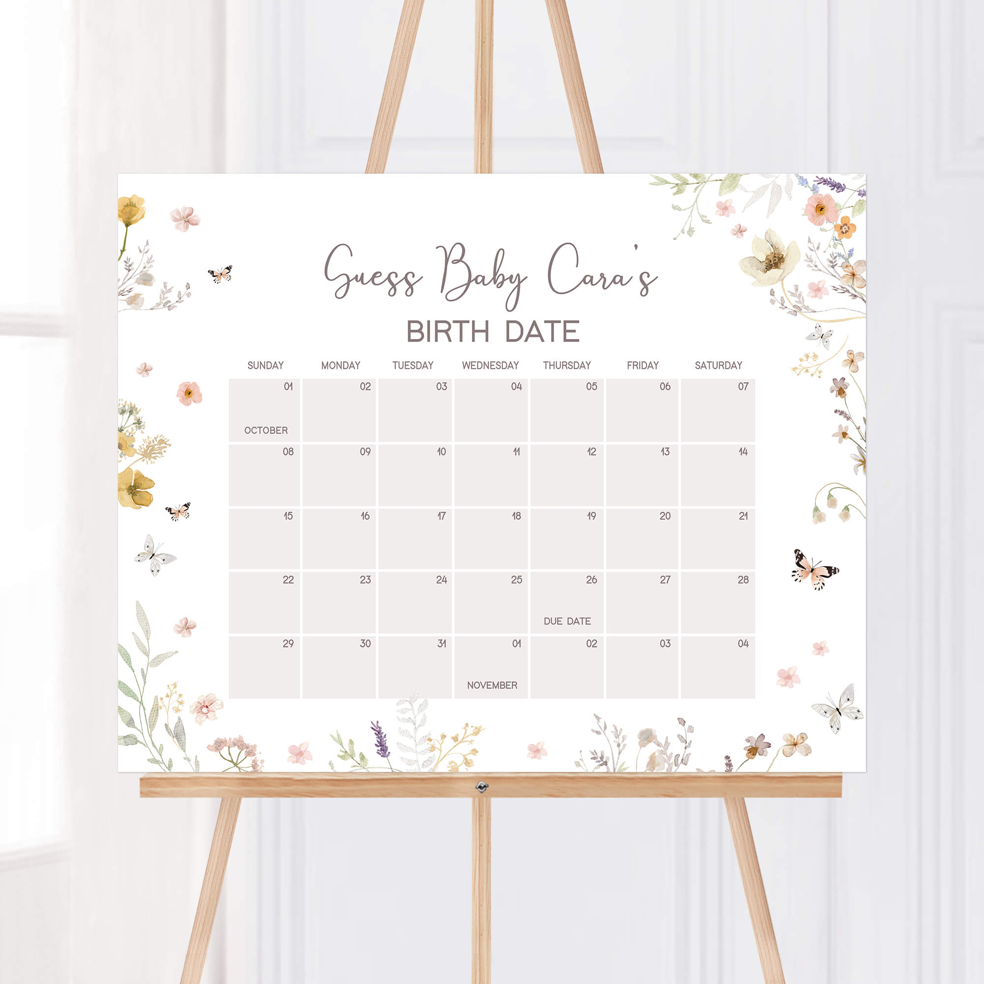 Partake in the excitement of your Boho Wildflower Baby Shower Party with our Spring Butterfly Floral Due Date Game! Embrace the adorable spirit of the Little Wildflower on the Way Baby Shower party as guests make their predictions for the due date, coming together to share in the anticipation of the upcoming arrival. Complete the joy and fun with this Spring Baby Shower Birthday Predictions.