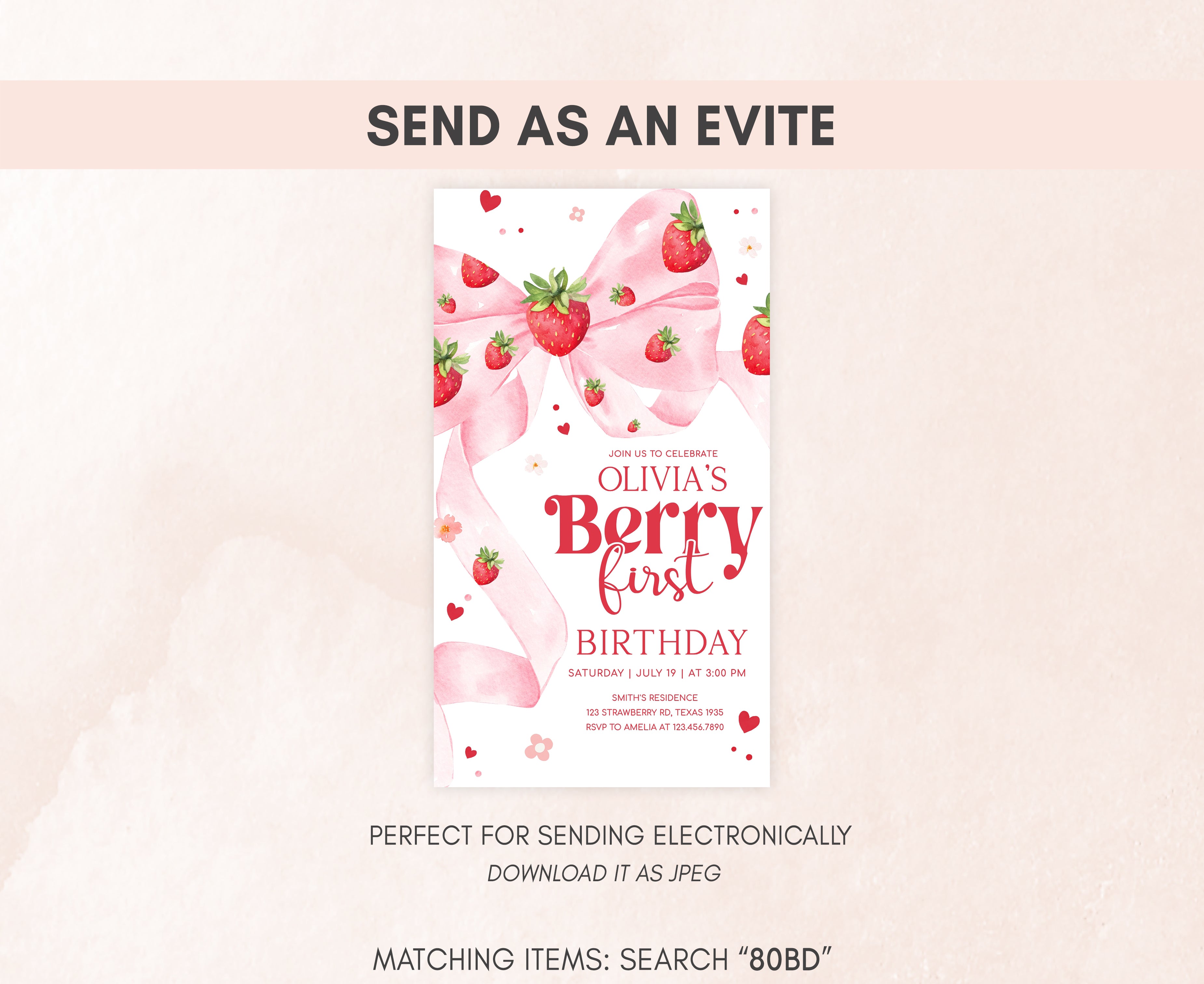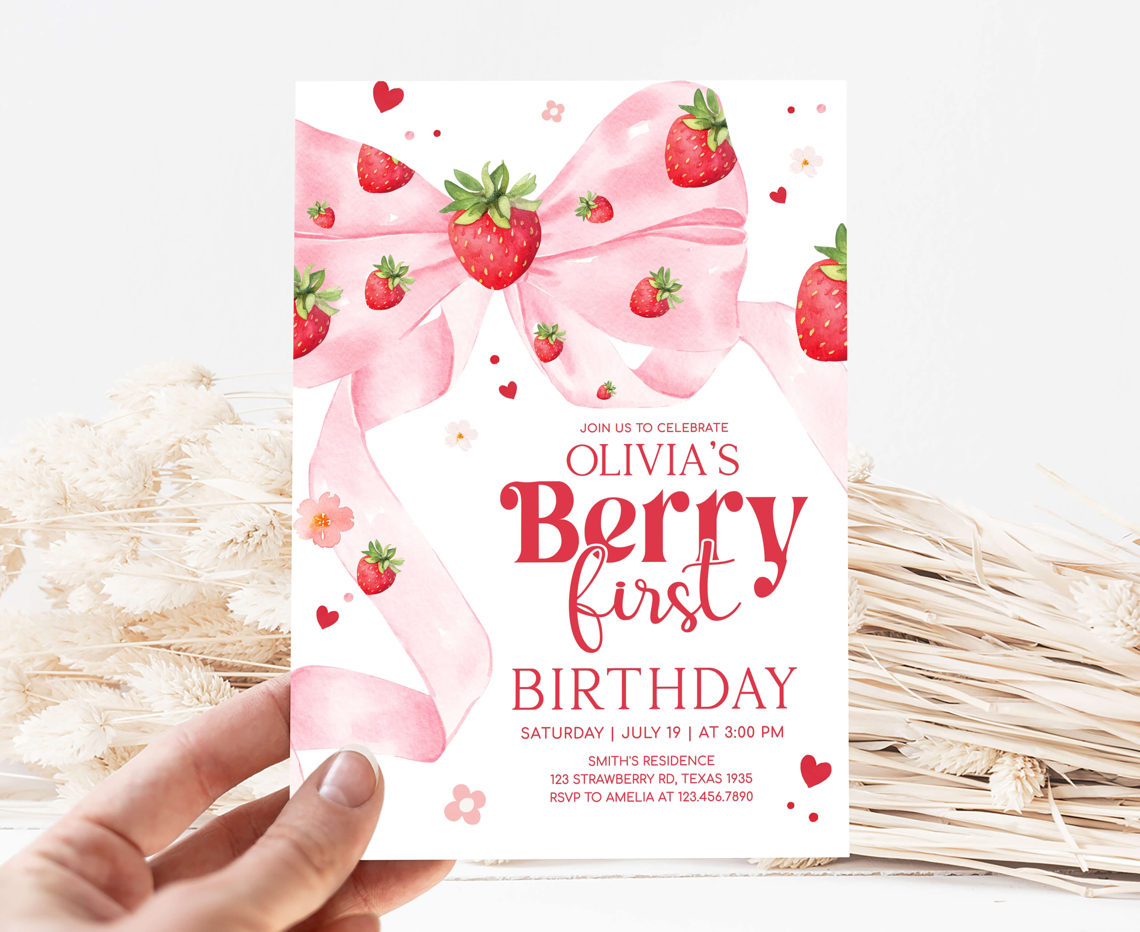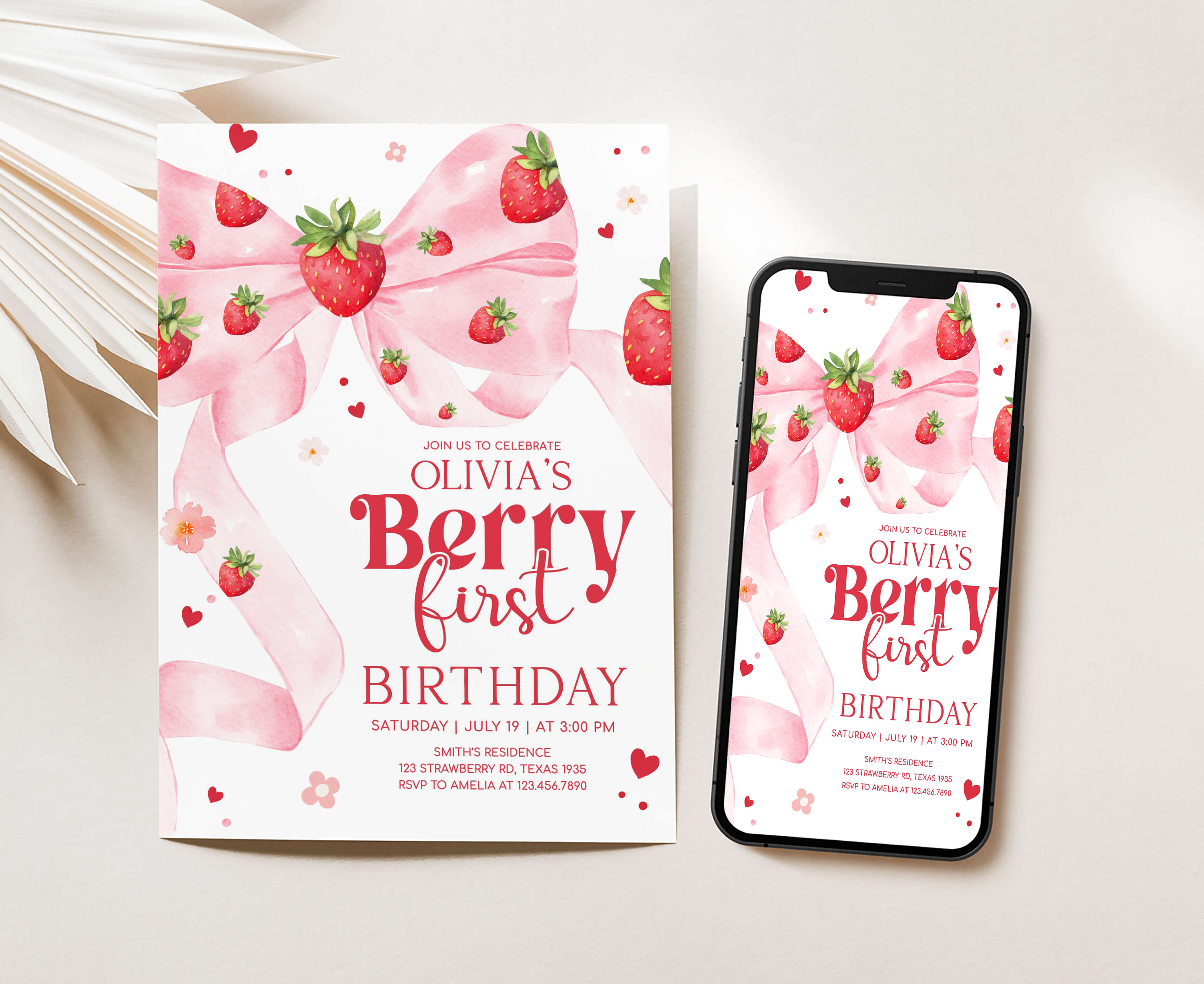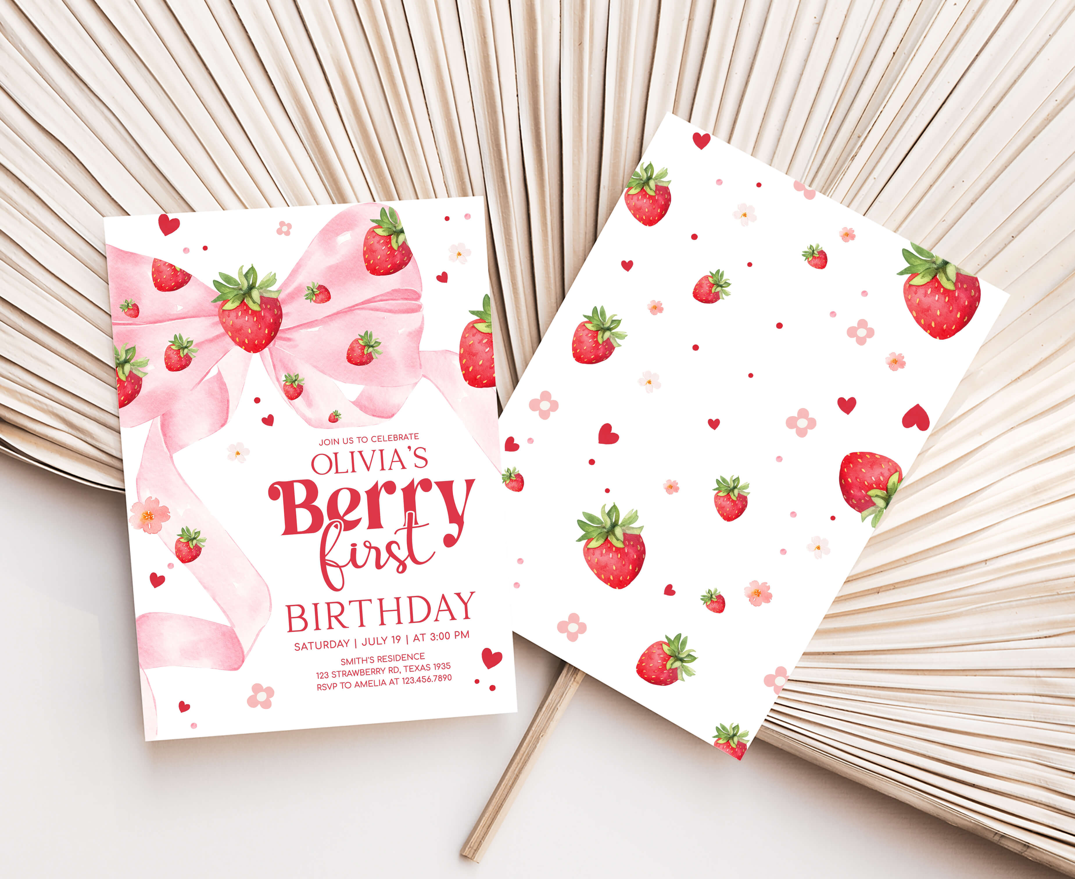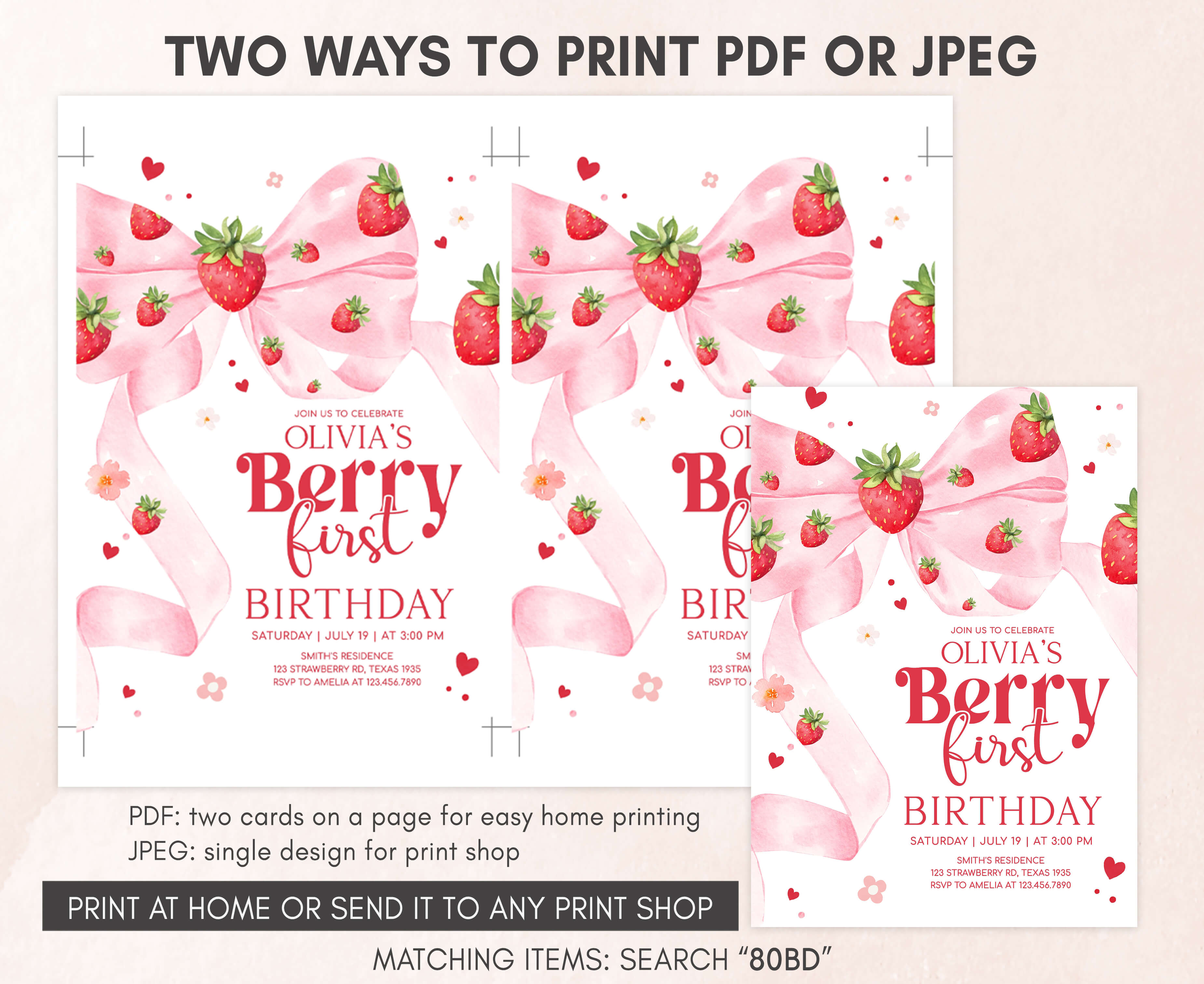 Celebrate with your guests at your Pink Berries Birthday Party using our delightful Spring Summer Birthday Invitation. This Berry First Birthday Invite is the ideal choice to tone for a Strawberry-themed celebration.