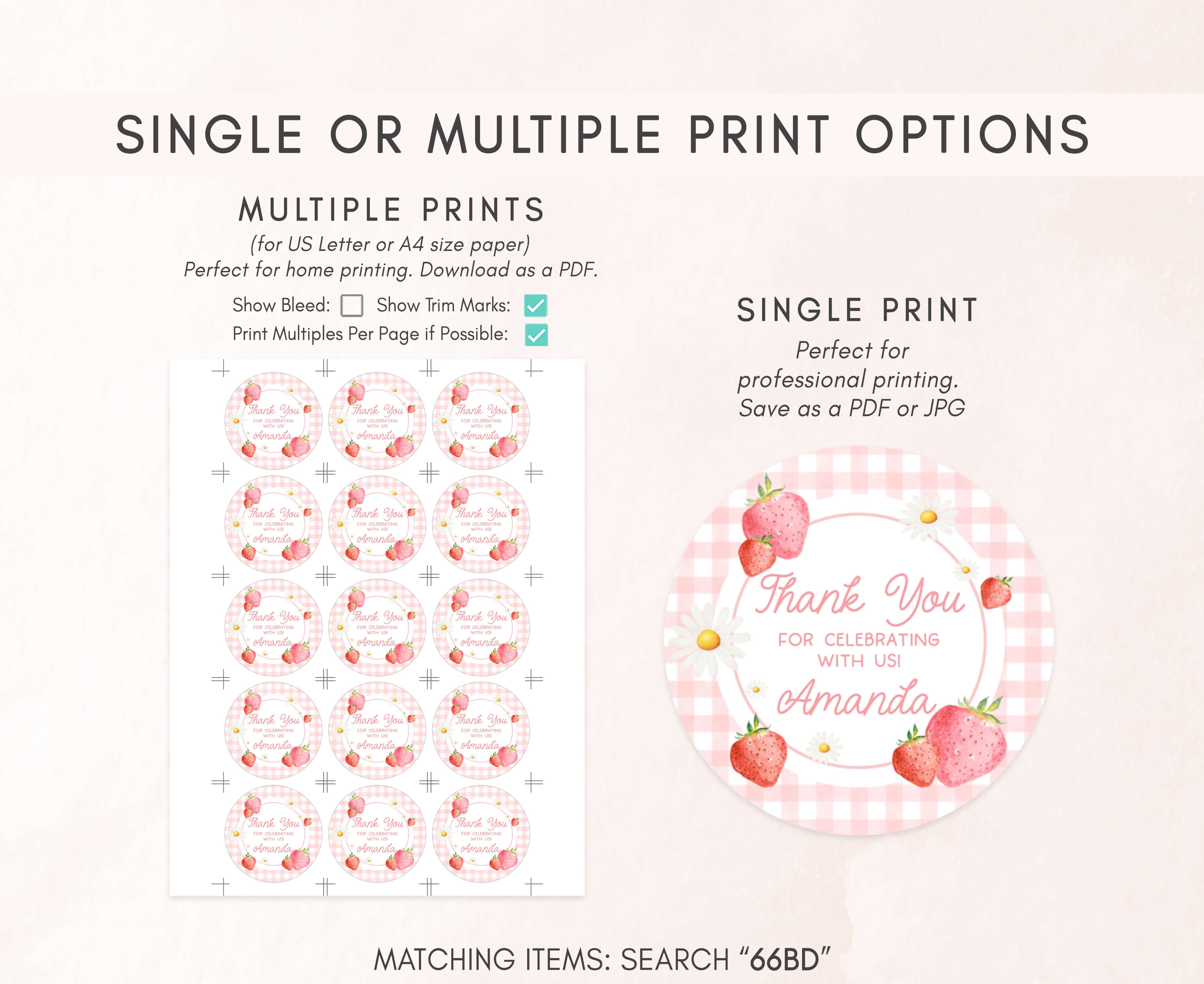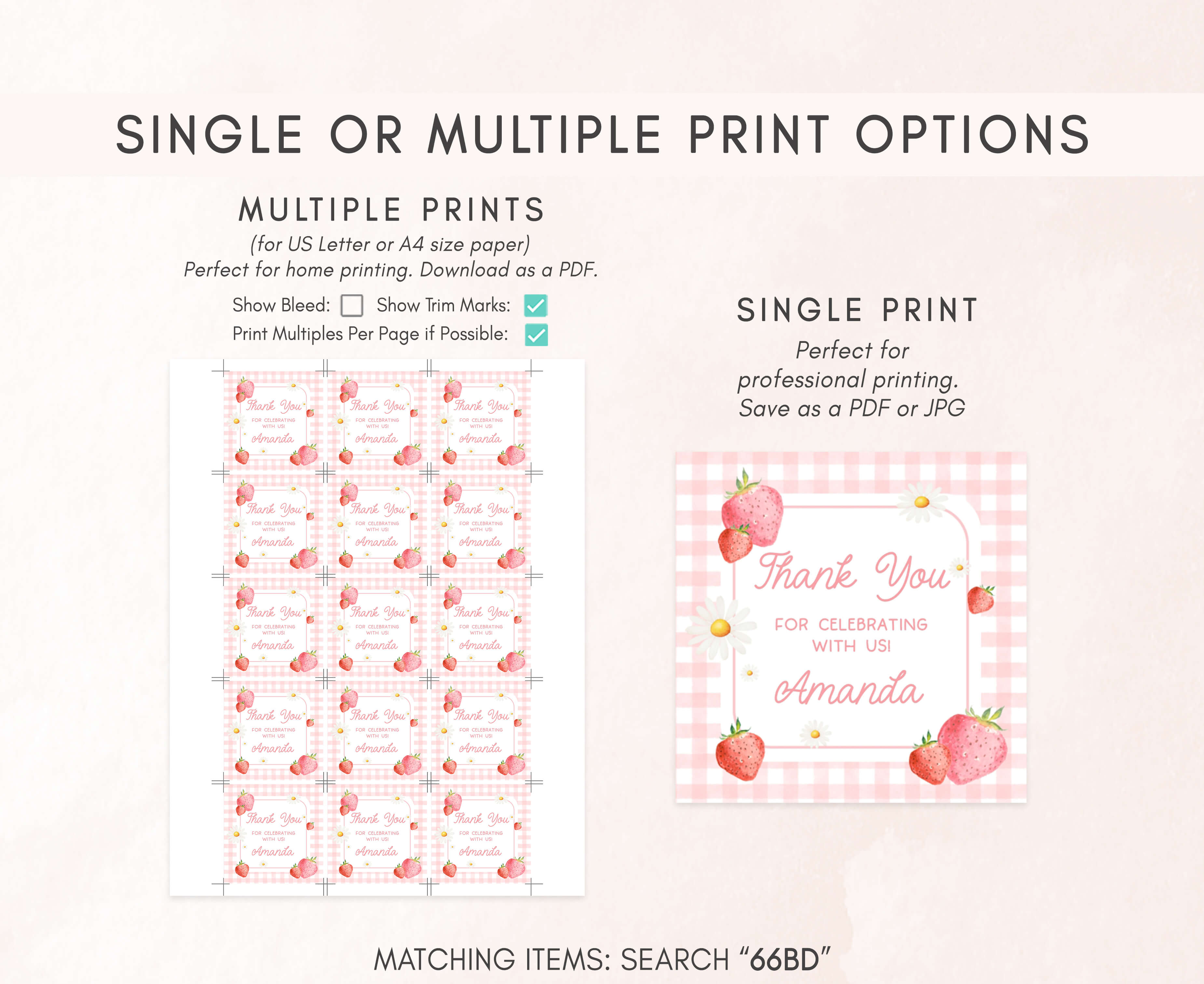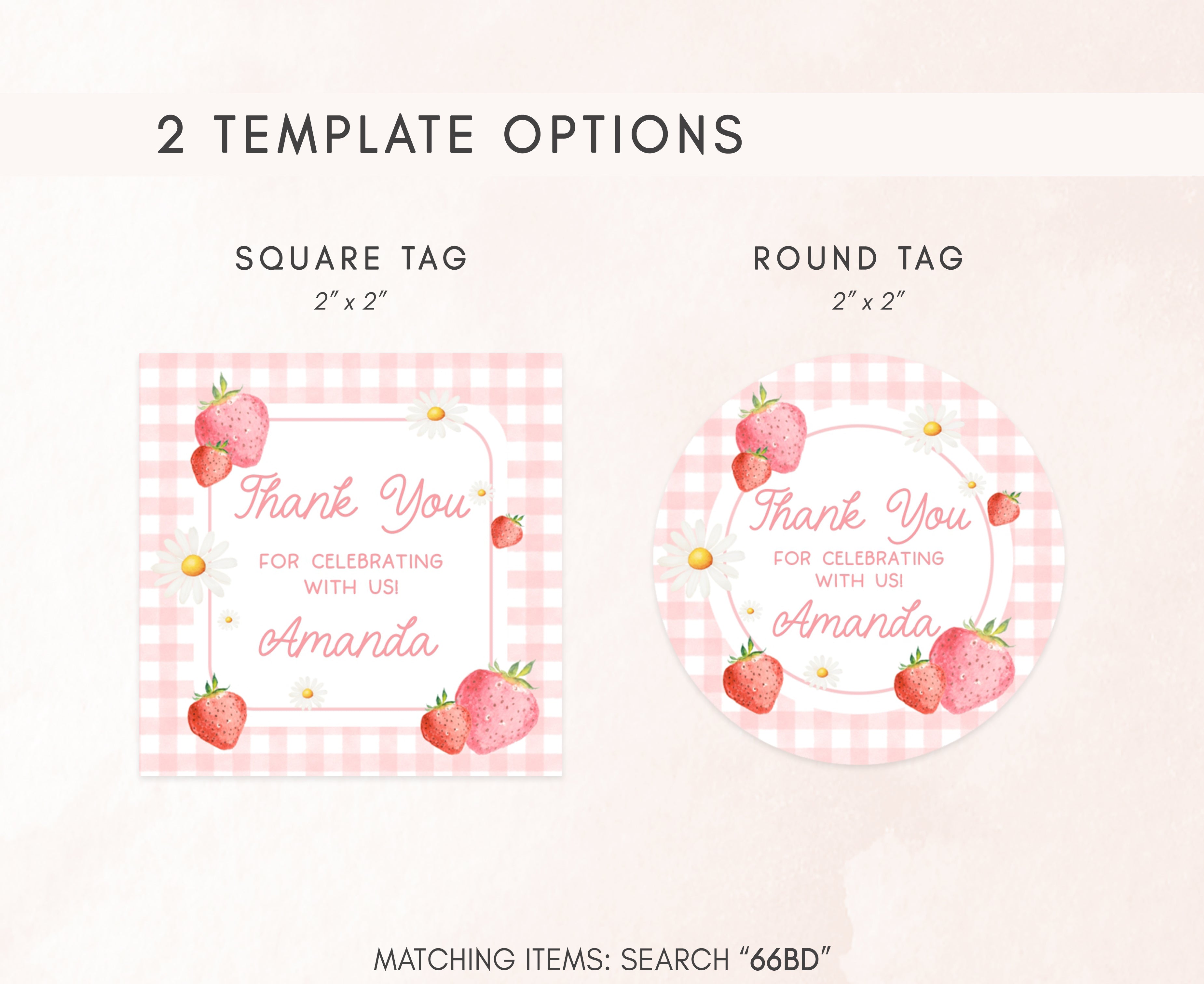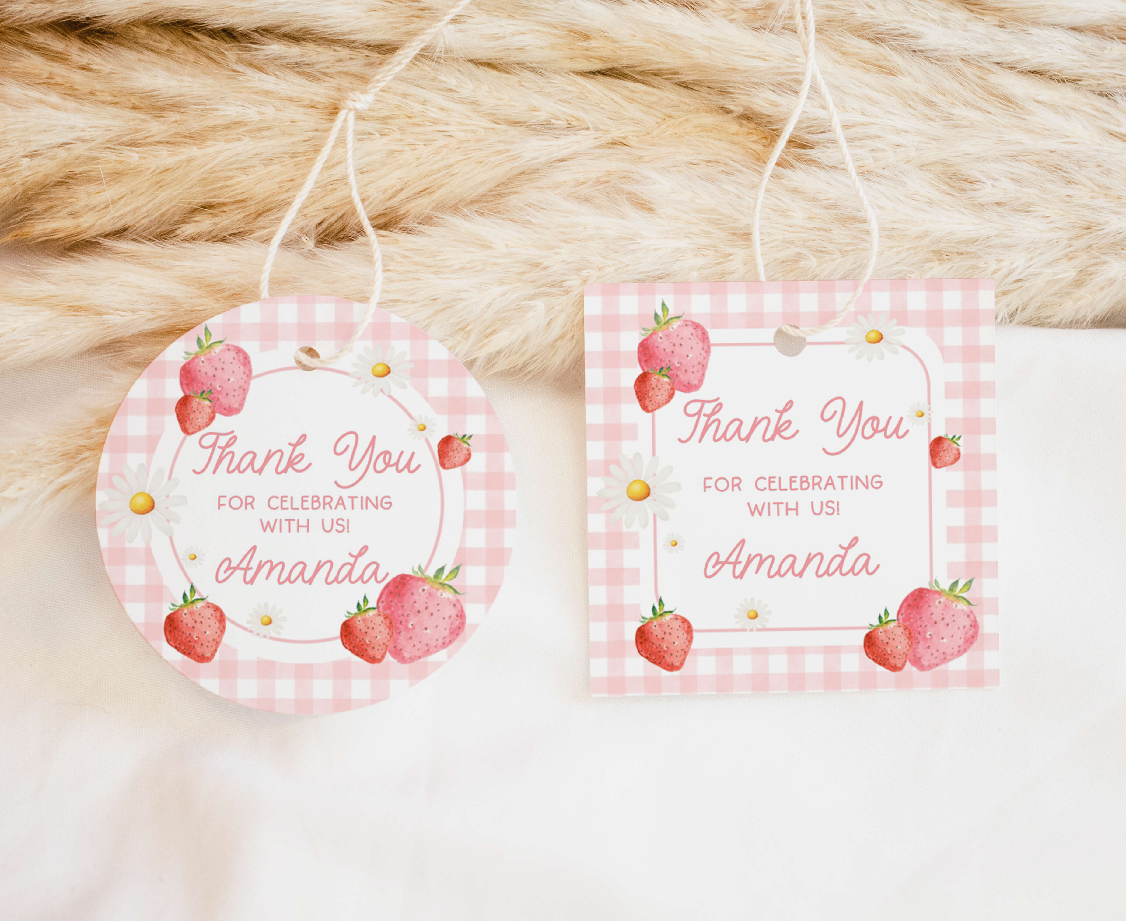 Amplify the charm of your Gingham Strawberry Birthday Party favors by adding a personal touch with our delightful Girl Berry First Birthday Gift Tags. These Spring Summer Thank you Tags are the perfect way to express your gratitude to your guests in a special and heartfelt manner.
