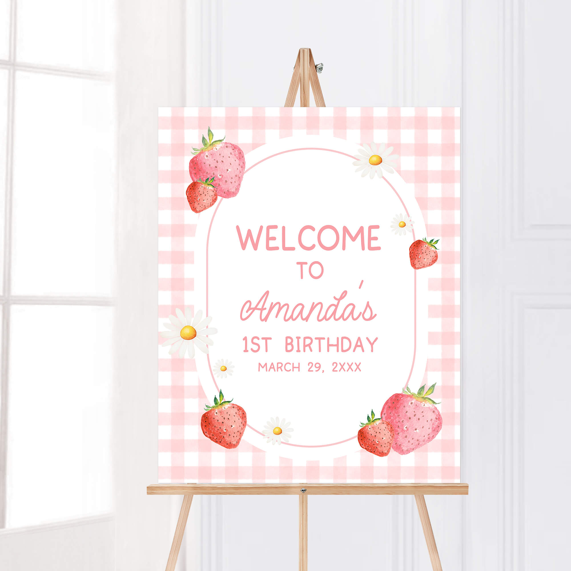 Elevate the charm of your Gingham Strawberry Birthday Party with the Girl Berry First Birthday Welcome Sign Printable. With its vibrant design, it effortlessly captivates attention and enhances the overall ambiance, playfully guiding your guests to the heart of the Spring Summer celebration.