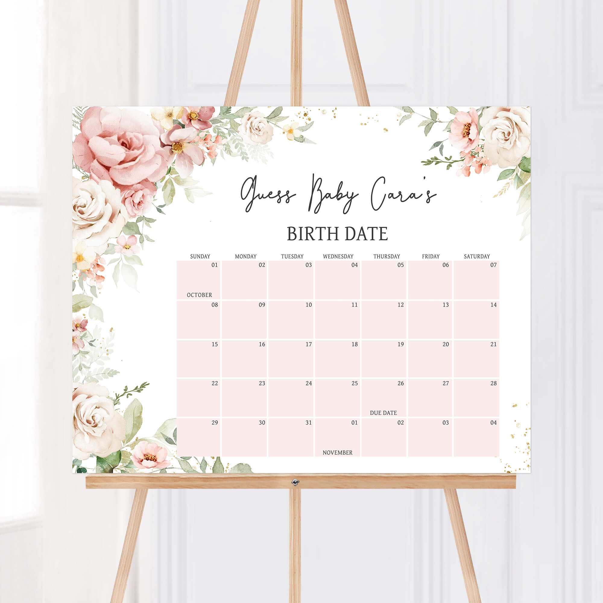Partake in the excitement of your Spring Flower Baby Shower Party with our Baby Girl is on Her Way Due Date Game! Embrace the adorable spirit of the Blush Pink Floral Spring Baby Shower party as guests make their predictions for the due date, coming together to share in the anticipation of the upcoming arrival. Complete the joy and fun with this Floral Baby Shower Birthday Predictions.