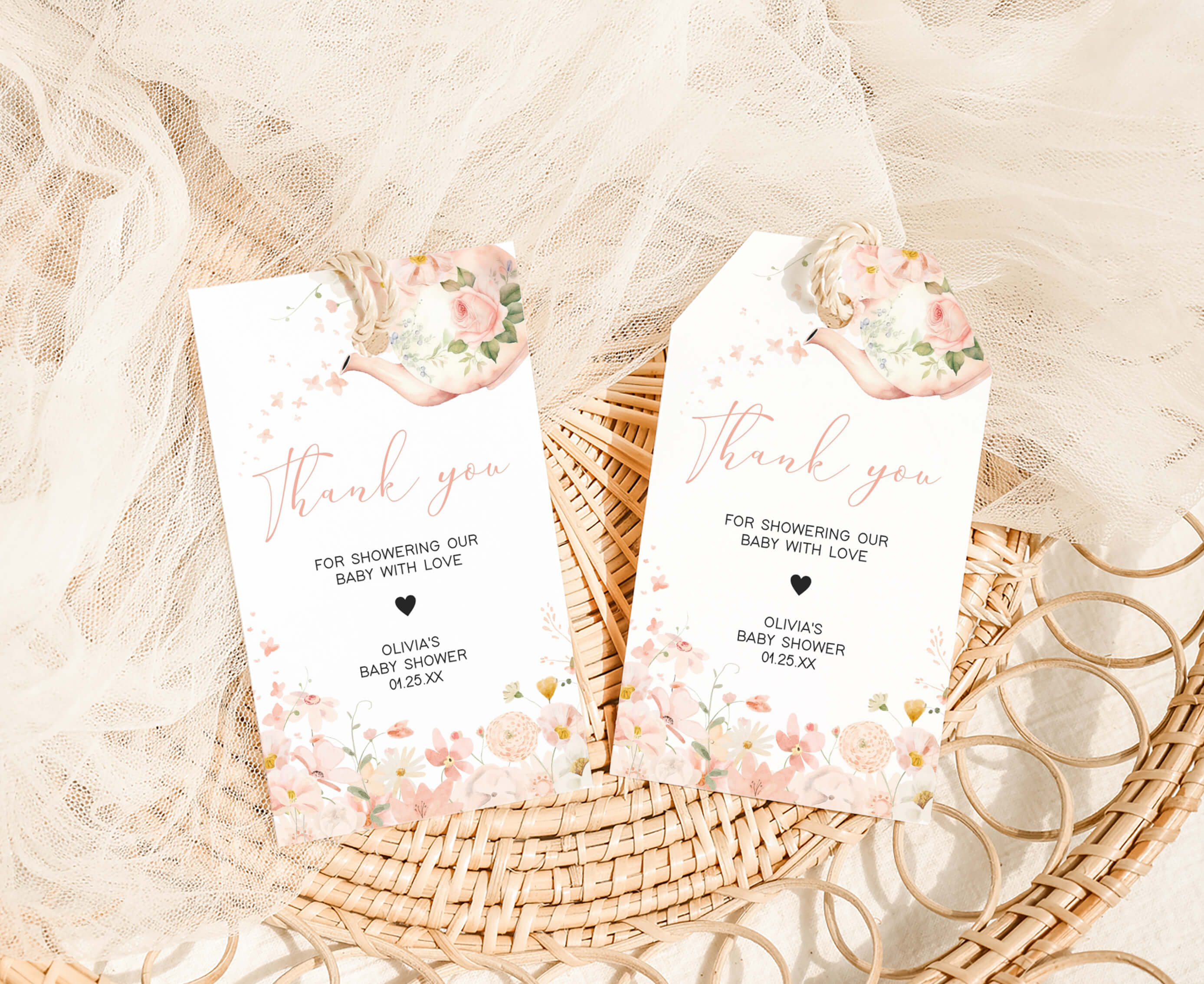 Amplify the charm of your Floral Spring Baby Shower party favors by adding a personal touch with our delightful Garden Tea Party Baby Shower Gift Tags. These Floral Tea Pot Thank you Tags are the perfect way to express your gratitude to your guests in a special and heartfelt manner.