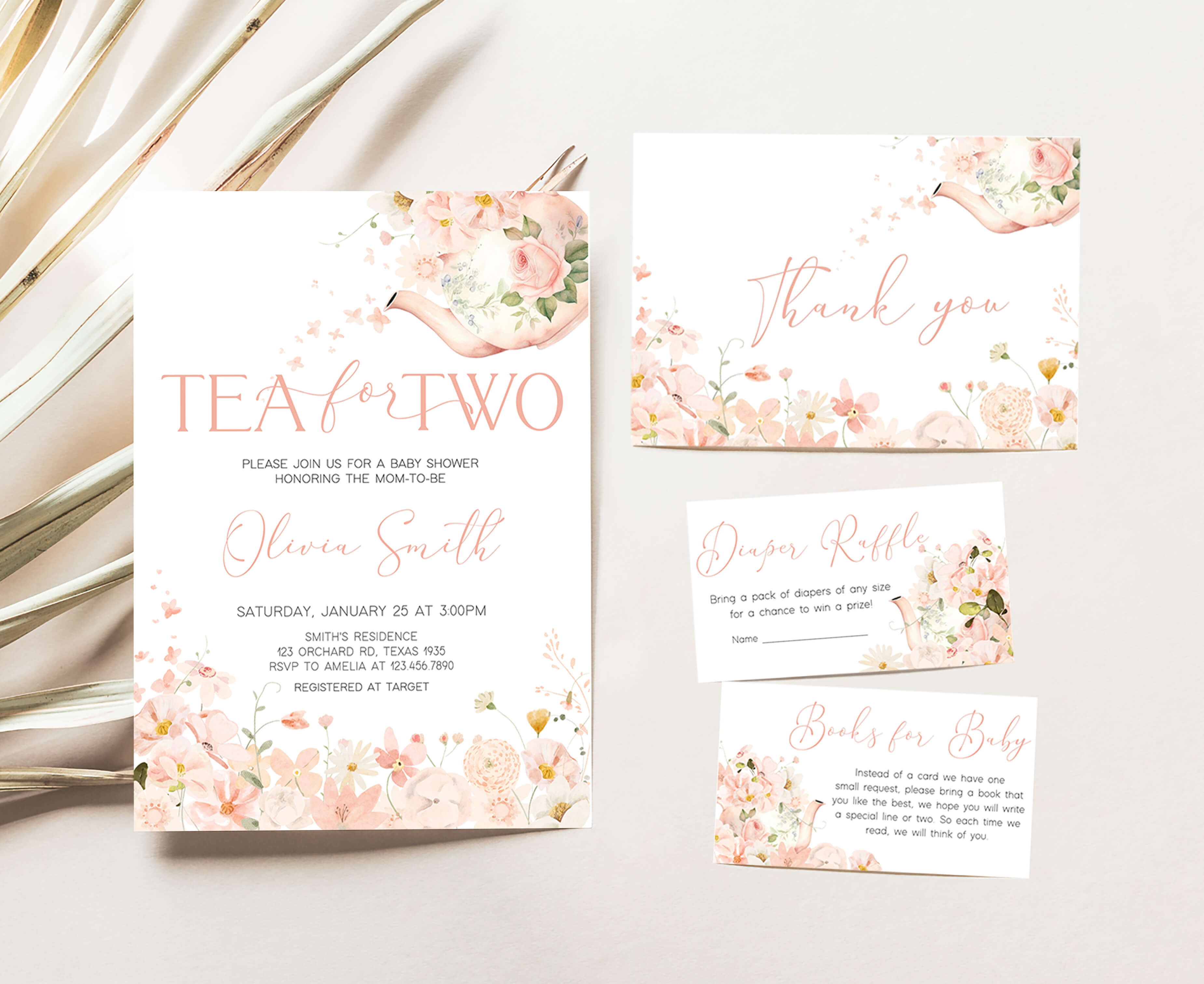Celebrate with your guests at your Floral Spring Baby Shower Party using our delightful Garden Tea Party Baby Shower Invitation Bundle. This Floral Tea Pot Baby Shower Invite is the ideal choice to set the tone for a Spring-themed celebration.