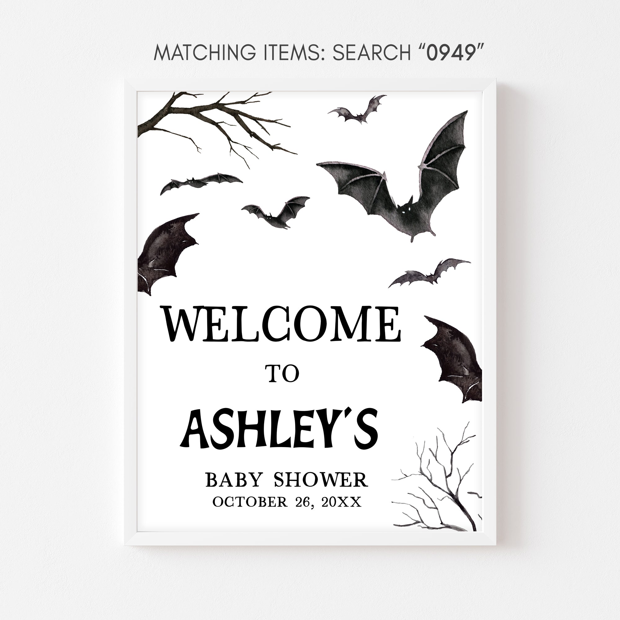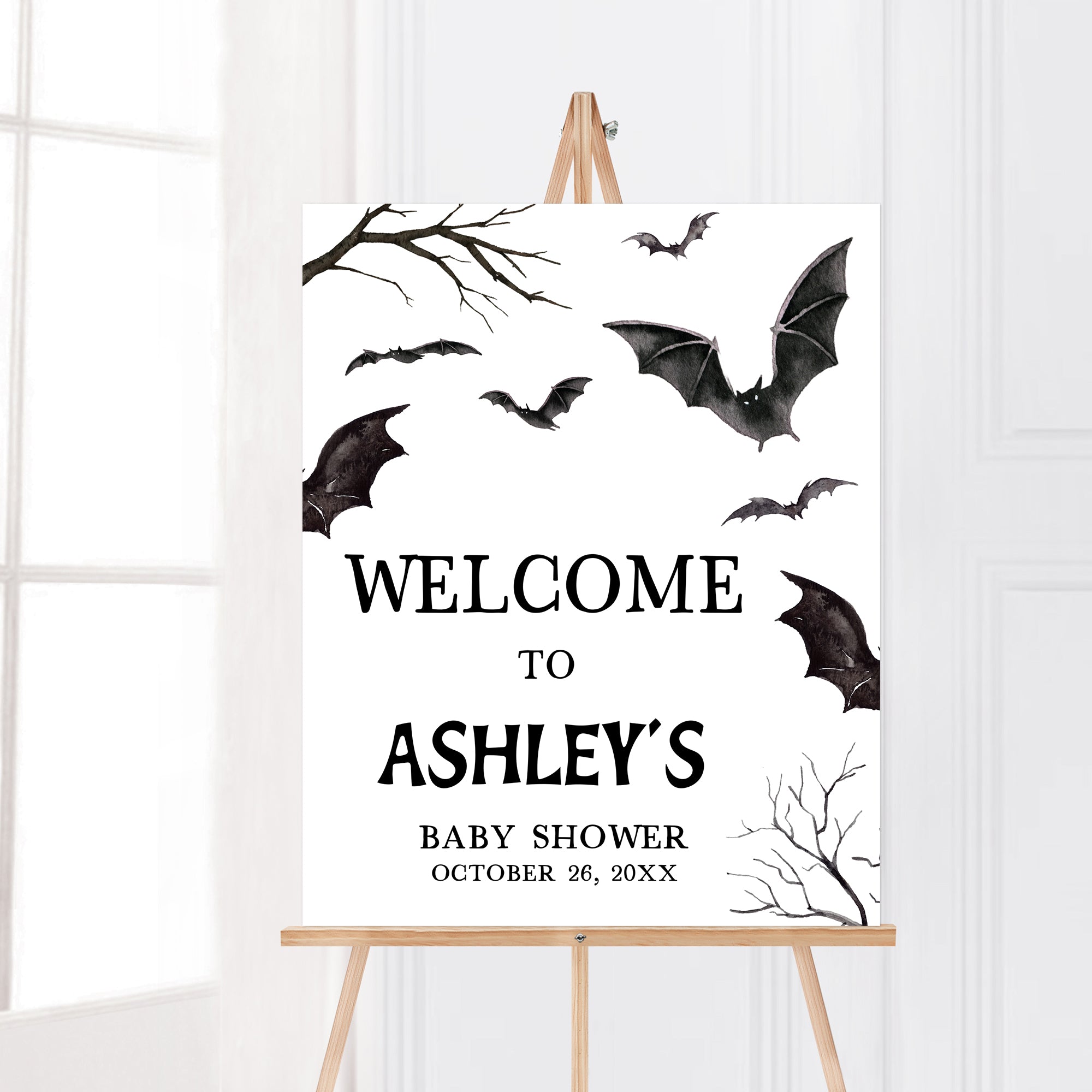 Elevate the charm of your Gender Neutral Baby Shower Party with the Spooky Bat Halloween Welcome Sign Printable. With its spooky design, it effortlessly captivates attention and enhances the overall ambiance, playfully guiding your guests to the heart of the Black and White Baby Shower celebration.