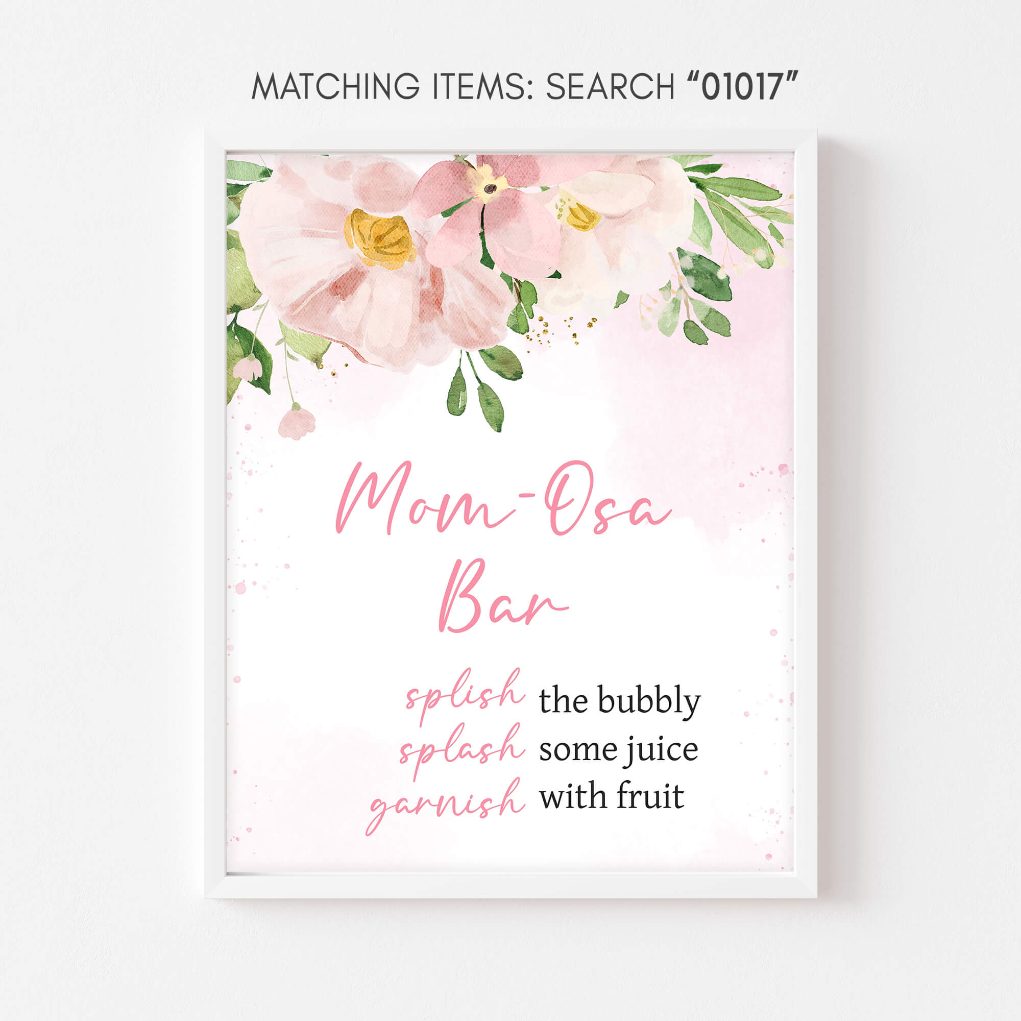 Craft an ideal atmosphere for your Pastel Spring Baby Shower Party using our enchanting Pink Floral Baby Shower Mimosa Sign Printable. These prints not only add a touch of charm but also serve as helpful guides, directing guests to various Watercolor Flowers party sections with their delightful designs.